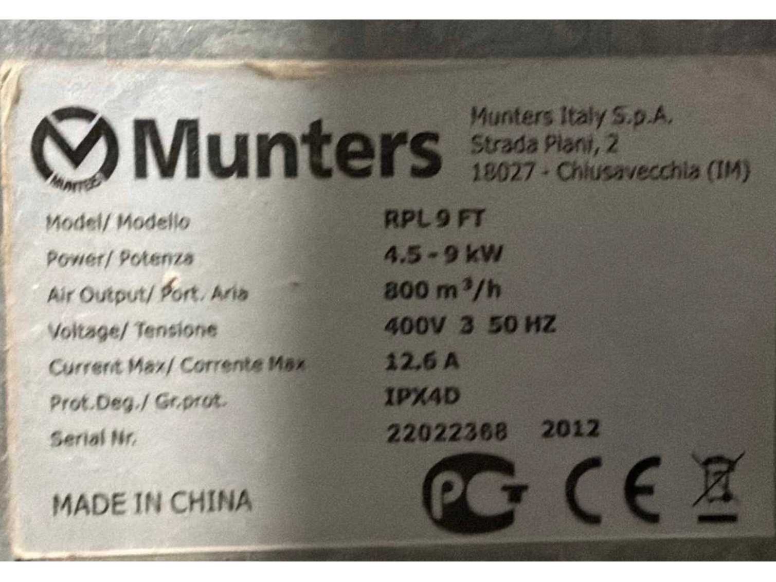 Standenschakelaar; volumestroom 800 m3 / uur; 12,6 Ampère; draagbeugel; working condition. Nee Merk: Munters Type: RPL 9FT Bouwjaar: 2012 Serienummer: 22022368 Vermogen: 9kW Ventilator: true Thermostaat: true Eigen gewicht: 10kg Totale afmeting L: 320mm Totale afmeting Breedte: 350mm Totale afmeting Hoogte: 480mm Aansluiting: 400V