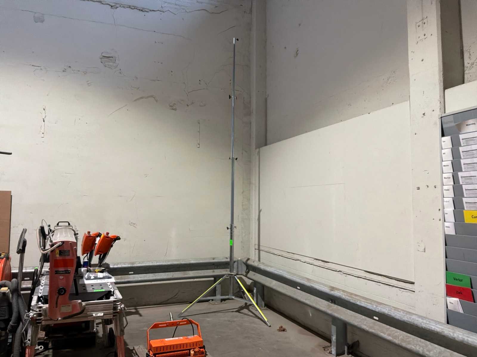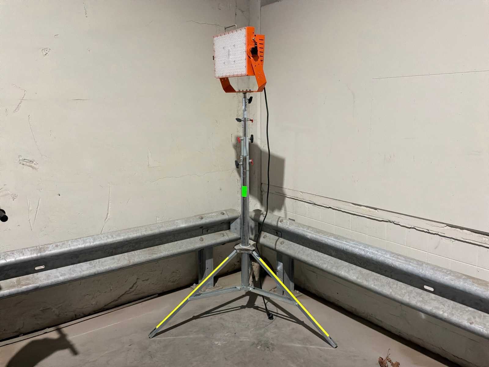 Profielstaal frame; in de hoogte verstelbaar; maximale masthoogte 4000 mm; 230 Volt; 500 Watt lamp; 85000 lm; lichte beschadiging; working condition; Nee Merk: TSR-Elsite Type: TSR ProLED Plus 500 Bouwjaar: 2024 LED: true Vermogen: 500W Statief: true Aansluiting: 230V Totale afmeting L: 800mm Totale afmeting Breedte: 650mm Totale afmeting Hoogte: 1600mm