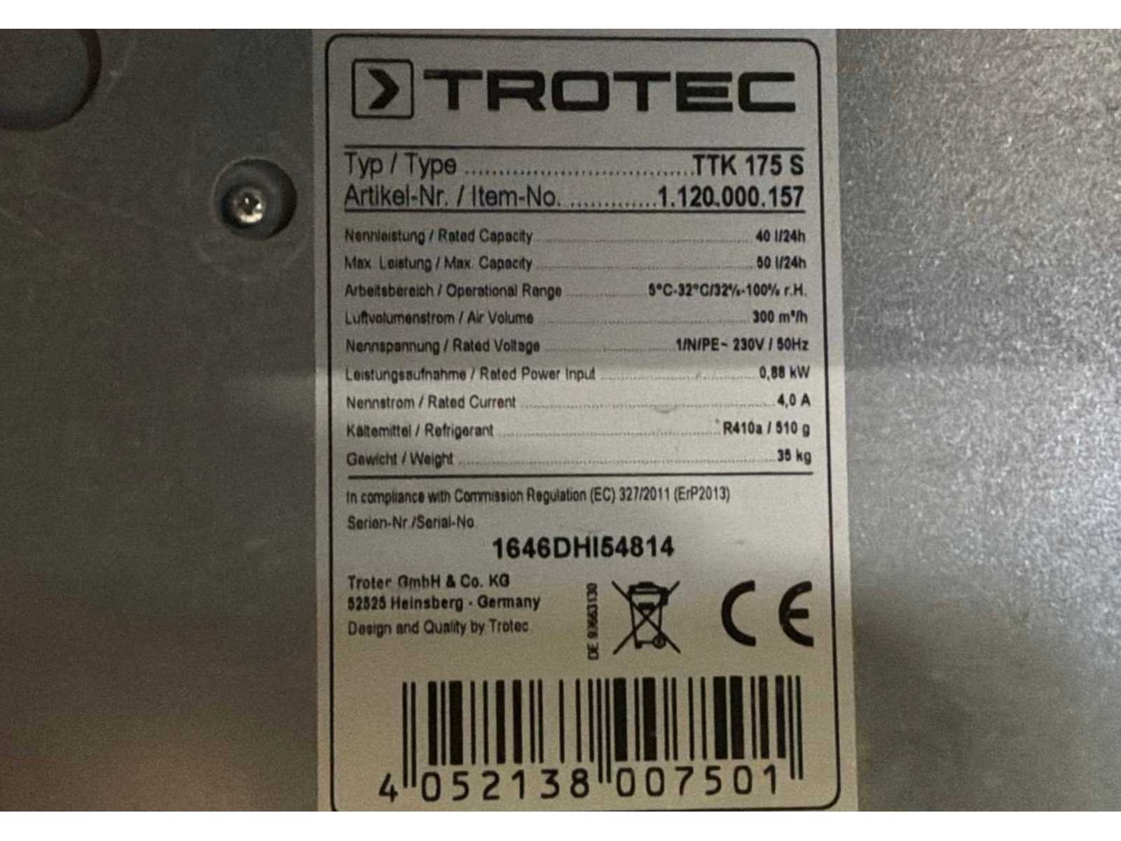 2016 trotec ttk 175 s condensatiedroger / bouwdroger