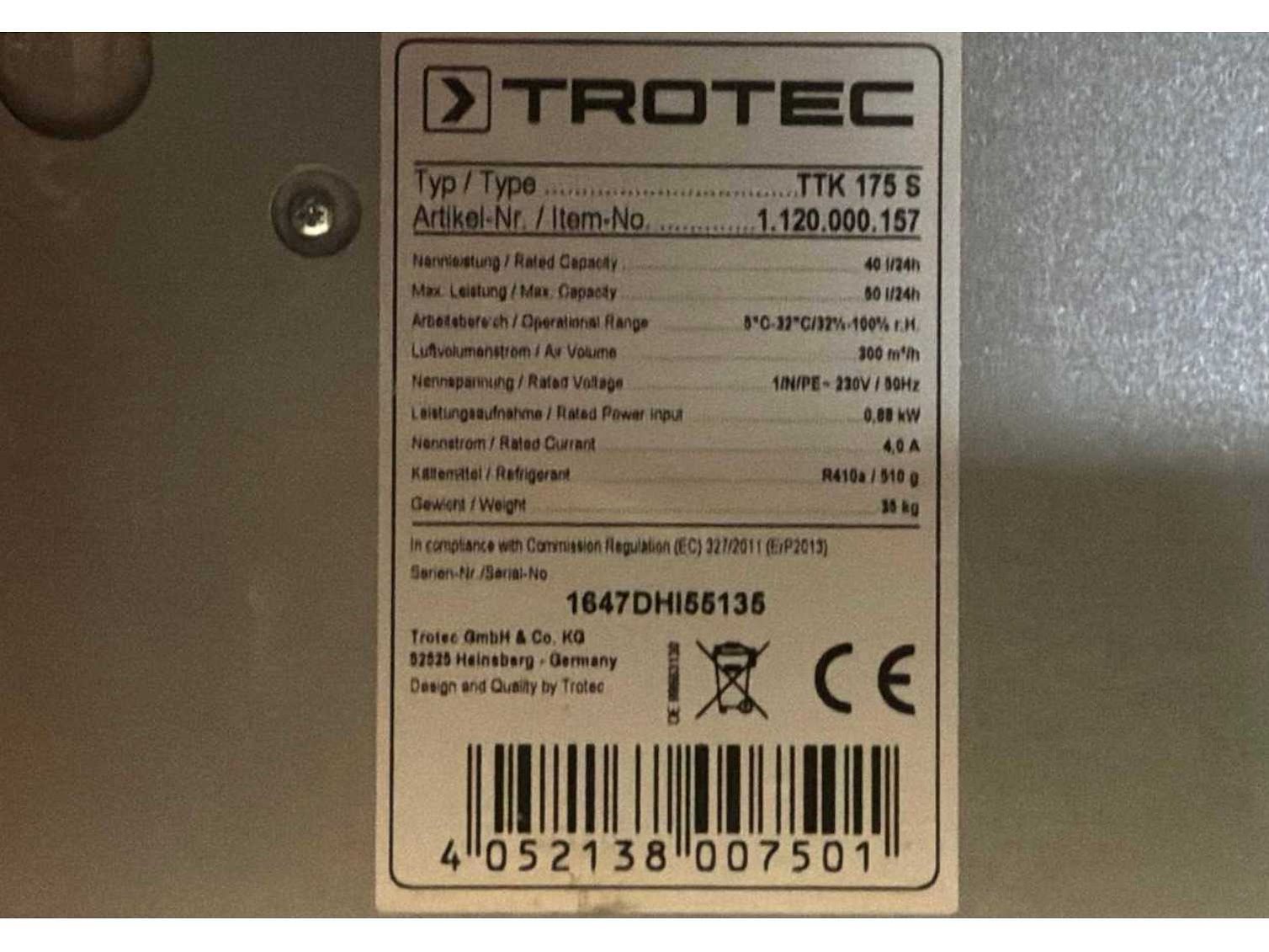 2016 trotec ttk 175 s condensatiedroger / bouwdroger