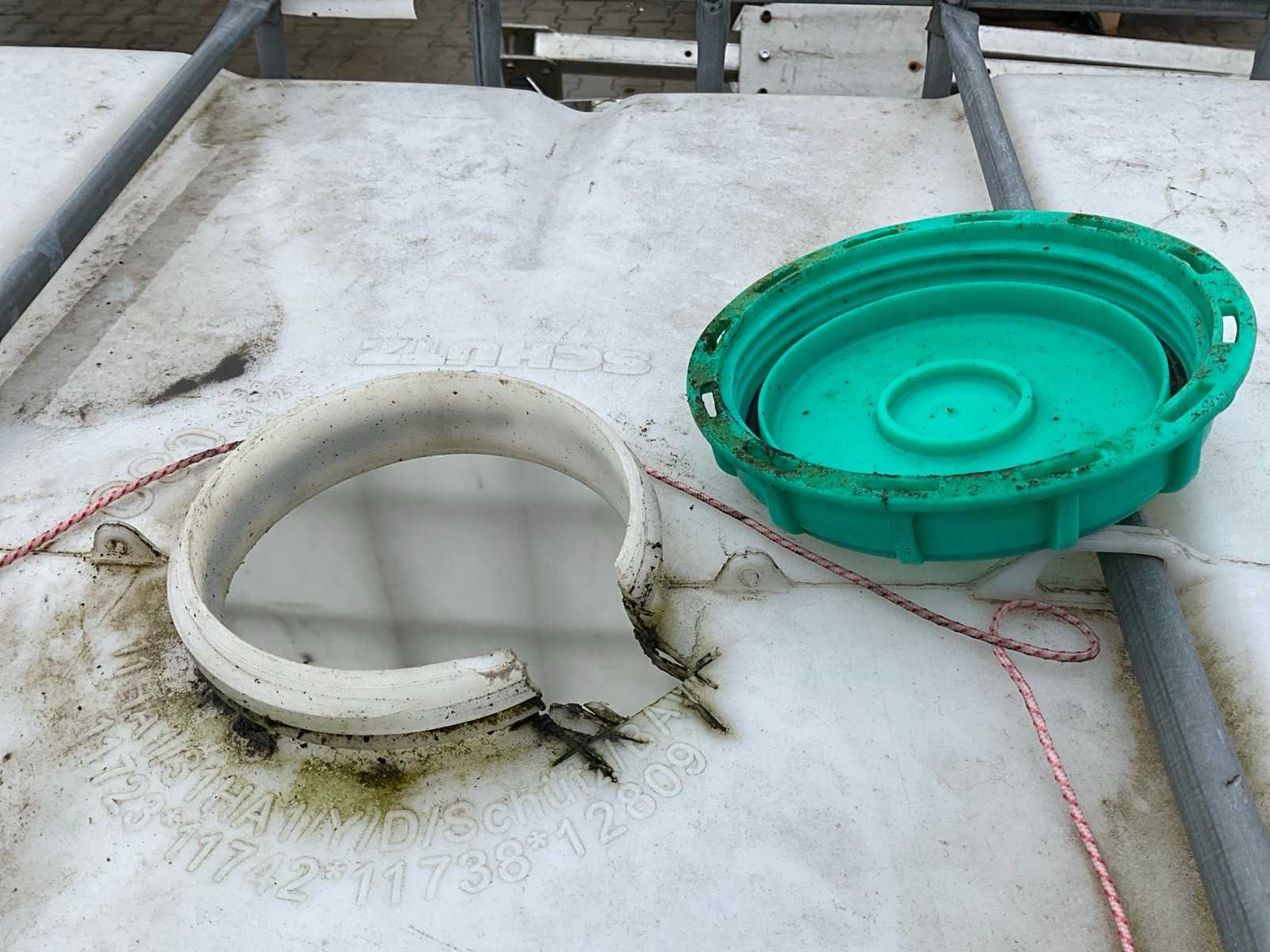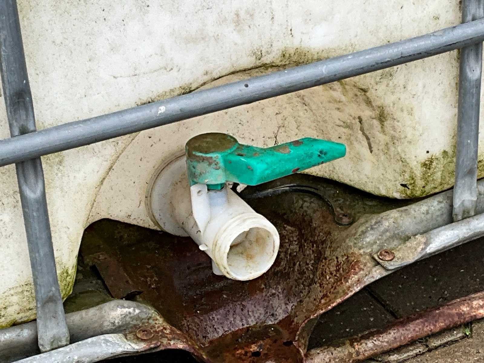 Gegalvaniseerd staal frame; kunststof kuip; capaciteit 1000 liter; gemonteerd op kunststof pallet; tapkraan; dop; beschadiging aan dop; Nee Afmeting l: 1200mm Afmeting b: 1000mm Afmeting h: 1200mm