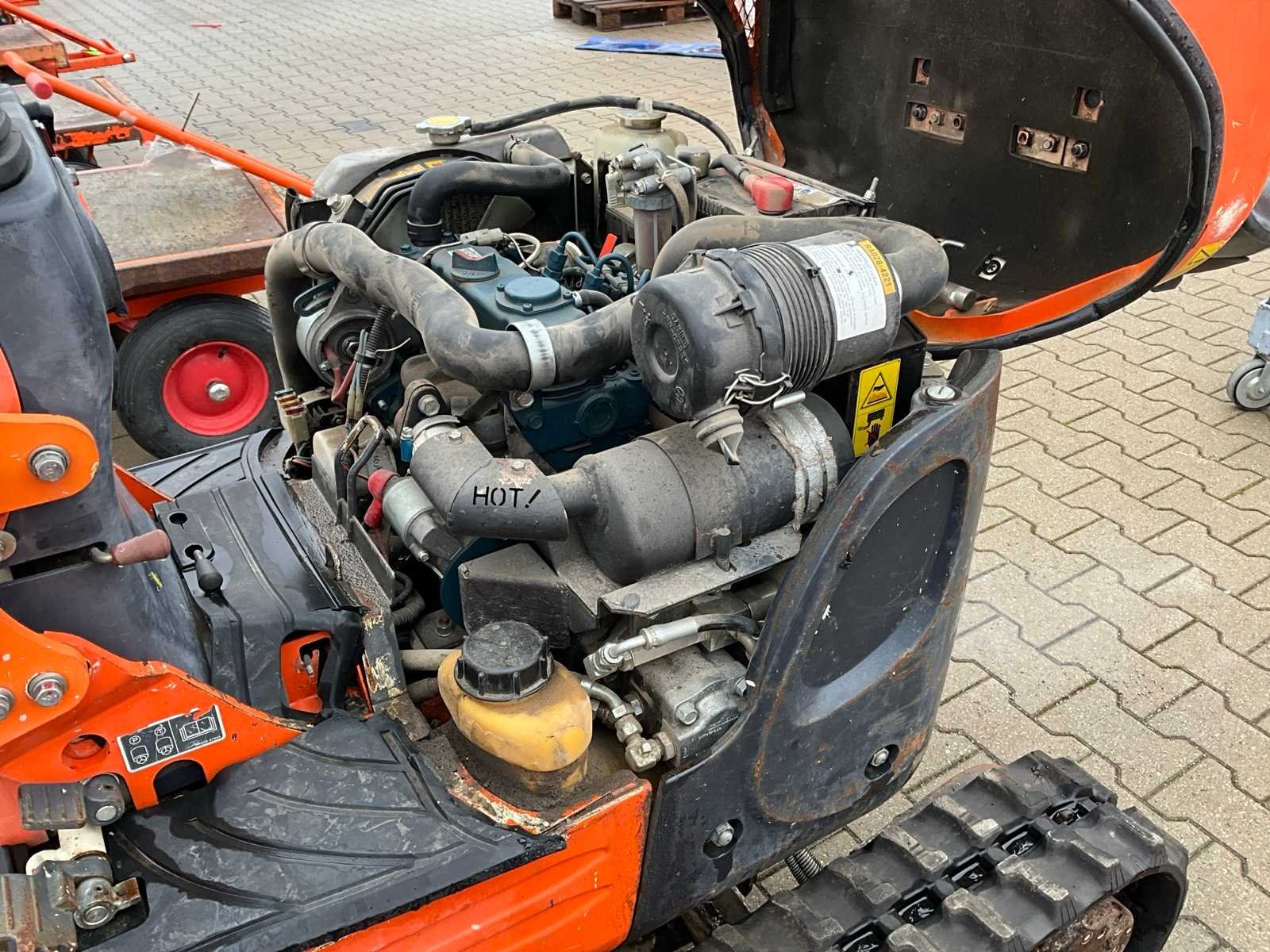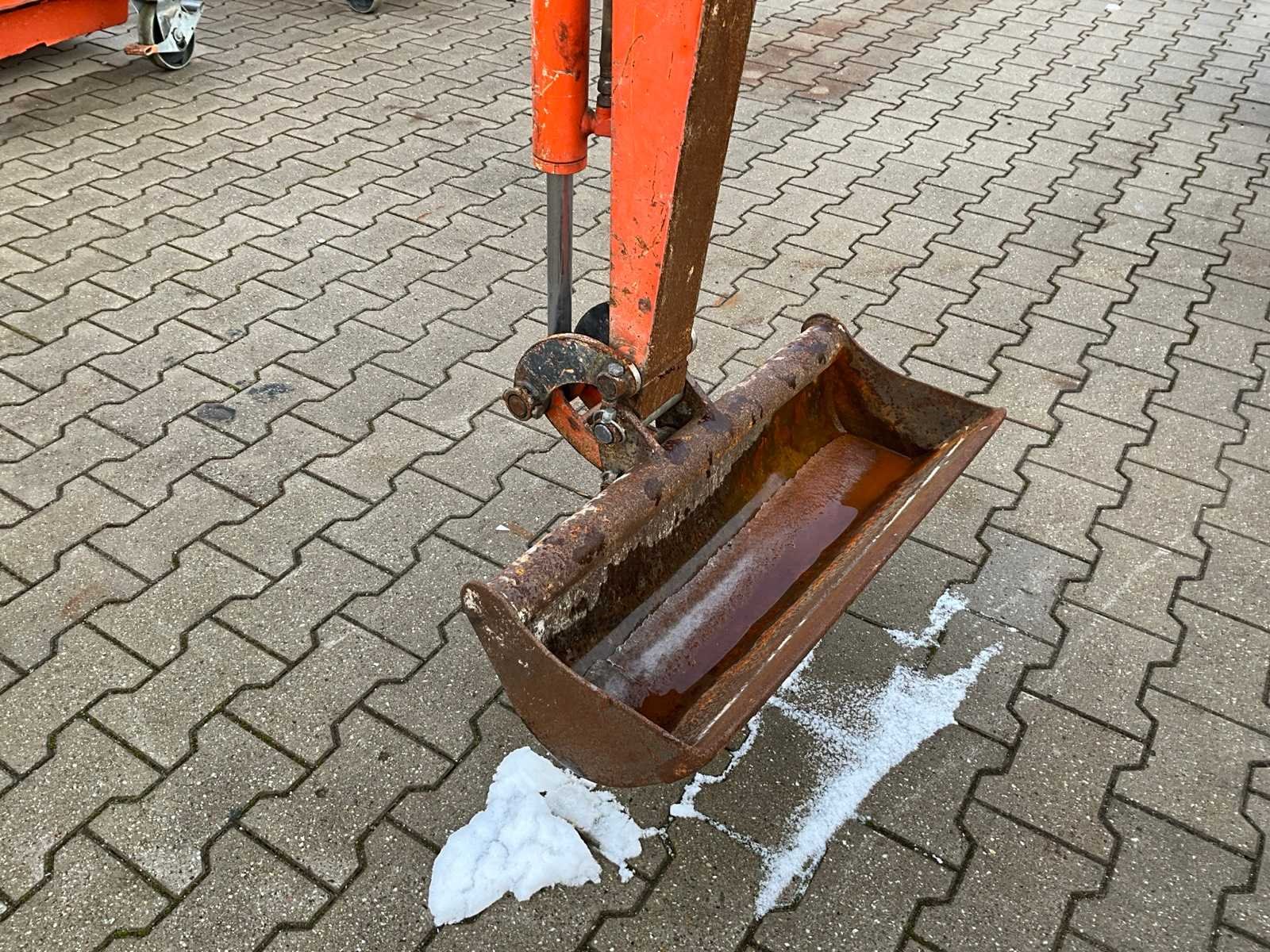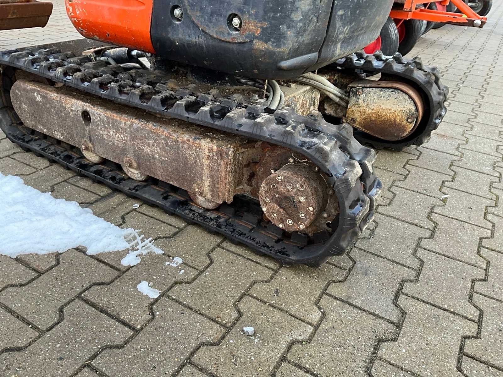 Zonder cabine; neerklapbare rolbeugel; rubber rupsbanden; rupsen hydraulisch in breedte verstelbaar 750 - 990 mm; binnendraaier; maximale uitstorthoogte 2200 mm; extra hydraulische functie; not working; motor slaat af na enkele minuten; Nee Merk: Kubota Type: U10-3 Bouwjaar: 2016 Serienummer: JKUU0103L01H27235 Merk motor: Kubota Motorvermogen (kW): 7.4kW Aantal cilinders: 3 Brandstof: Diesel Max. werkbereik: 3300mm Max. graafdiepte: 1800mm Graafbak afm. l: 700mm Graafbak afm. b: 240mm Graafbak afm. h: 300mm Rups breedte: 180mm Afgelezen urenstand: 2827 Eigen gewicht: 1150kg Totale afmeting L: 3000mm Totale afmeting Breedte: 1000mm Totale afmeting Hoogte: 2250mm