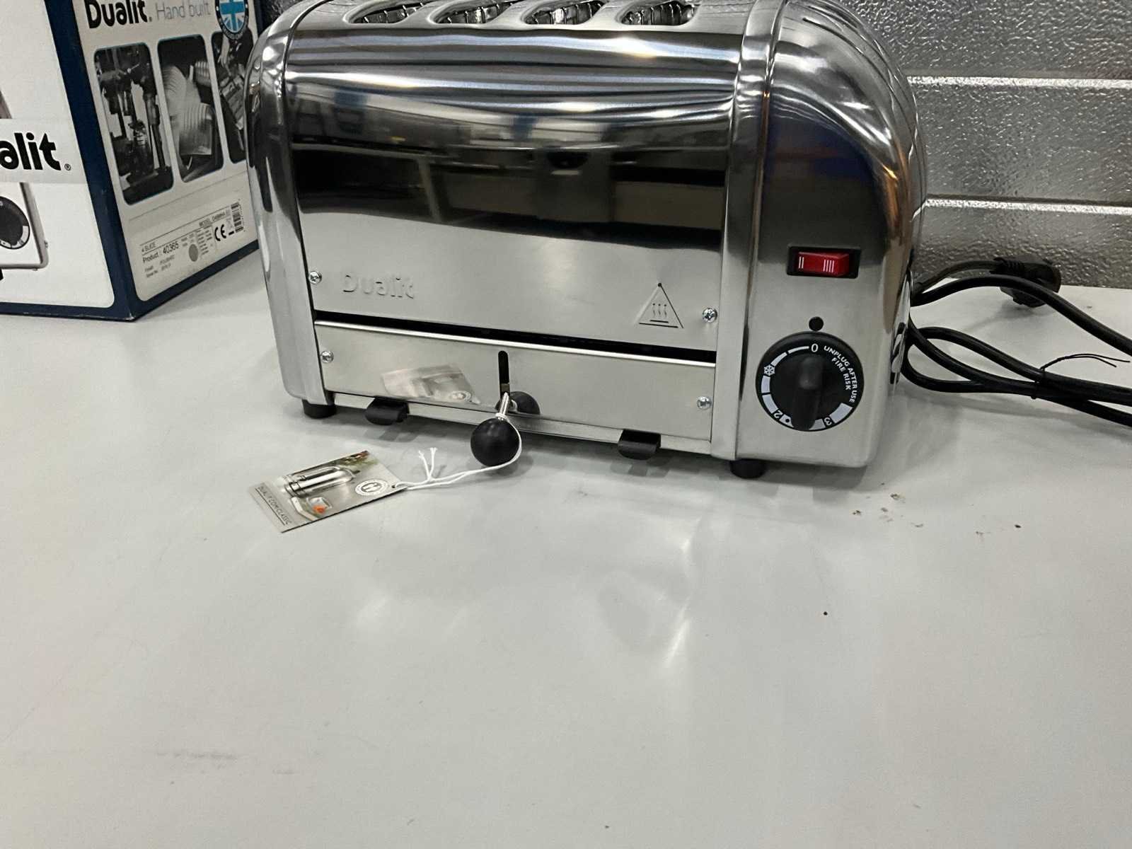 Ongebruikt; 2200 watt. Nee Merk: Dualit Type: D4BMHA Totale afmeting L: 35cm Totale afmeting Breedte: 24cm Totale afmeting Hoogte: 22cm Rvs: true Regelbare thermostaat: true Aansluiting: 230V