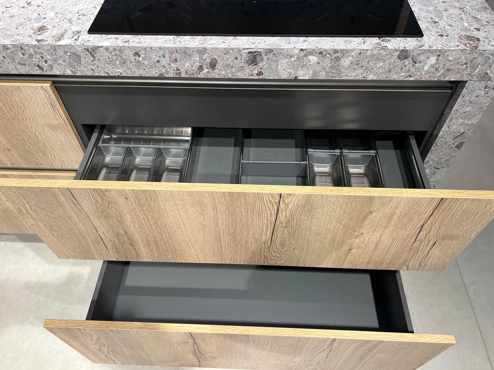 Afmetingen kastenwand circa 257x60x171 cm; reeds gedemonteerd en ingepakt op pallets. (afstapelen, omruilen of statiegeld per pallet); pallets zijn niet inbegrepen; statiegeld betalen bij afhalen, of pallets afstapelen; werkblad niet ingepakt op pallets (26-BAA-03787) Nee Merk: Bruynzeel Lengte: 314,3cm Breedte: 60cm Hoogte: 90cm Kraan: Lanesto Cucina Gun Metal Gootsteen: Lanesto 615 Gun Metal Aanrechtblad: Kunststof Fornuis: Bora PURU Koelkast: Atag KD67122B Softclose: true Oven: Atag CX46121D Vaatwasser: Atag VA7214LQ
