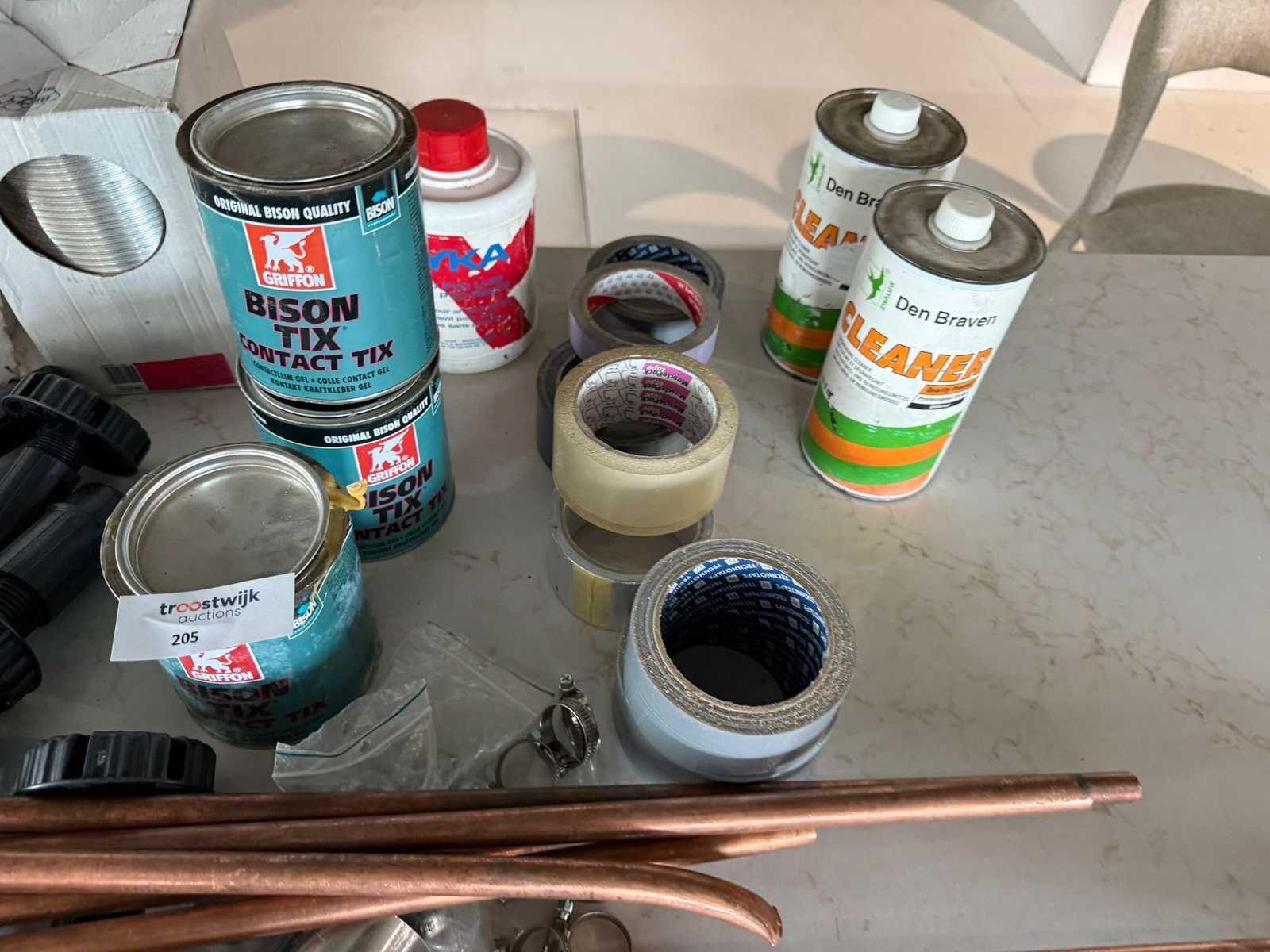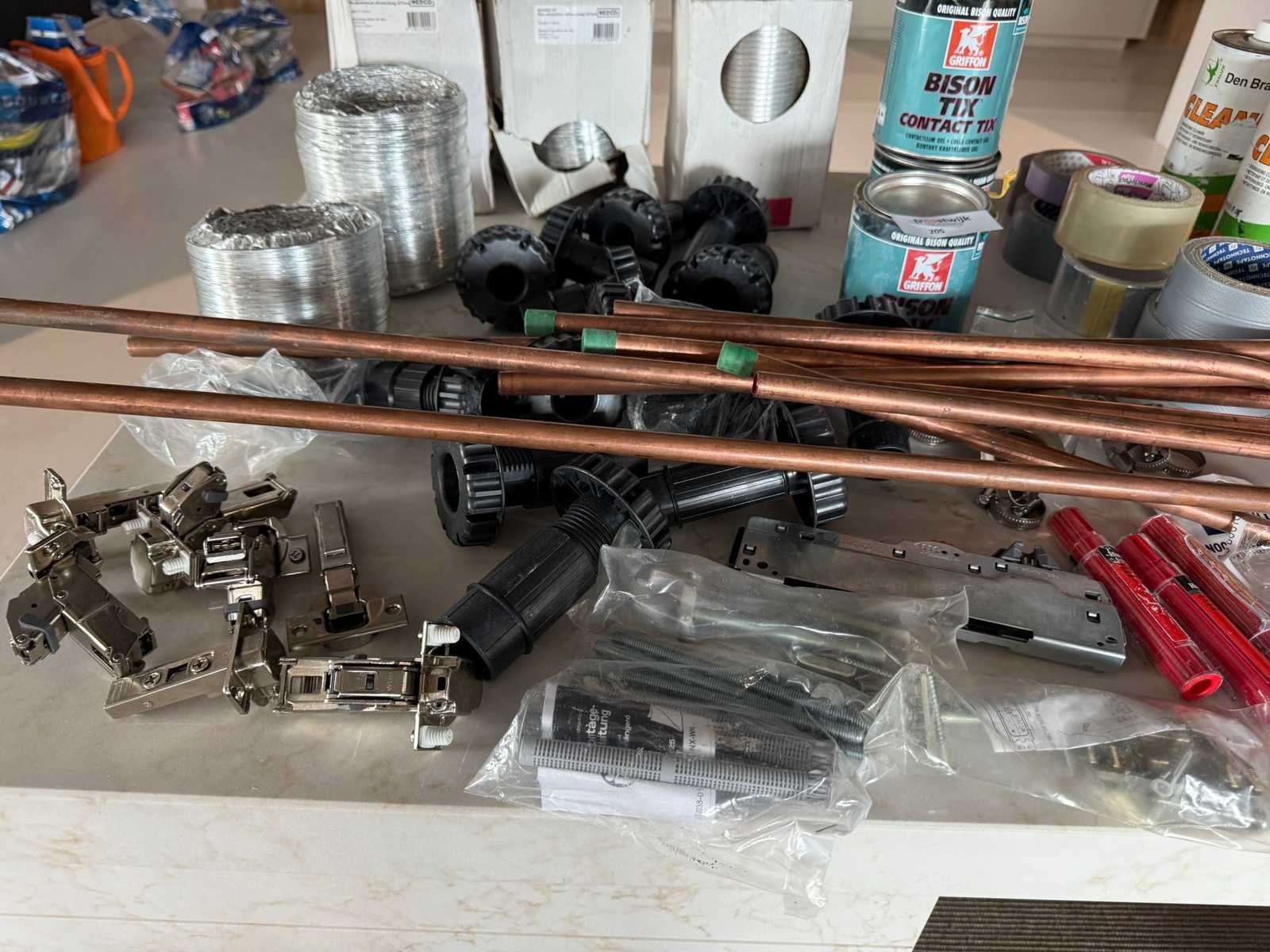 Bevat diverse koperbuizen; metalen koppelingen en fittingen; blikken lijm en reiniger (o.a. Bison Tix, Griffon); rol tape; flexibele metalen slangen; diverse kleine onderdelen en bevestigingsmaterialen Nee