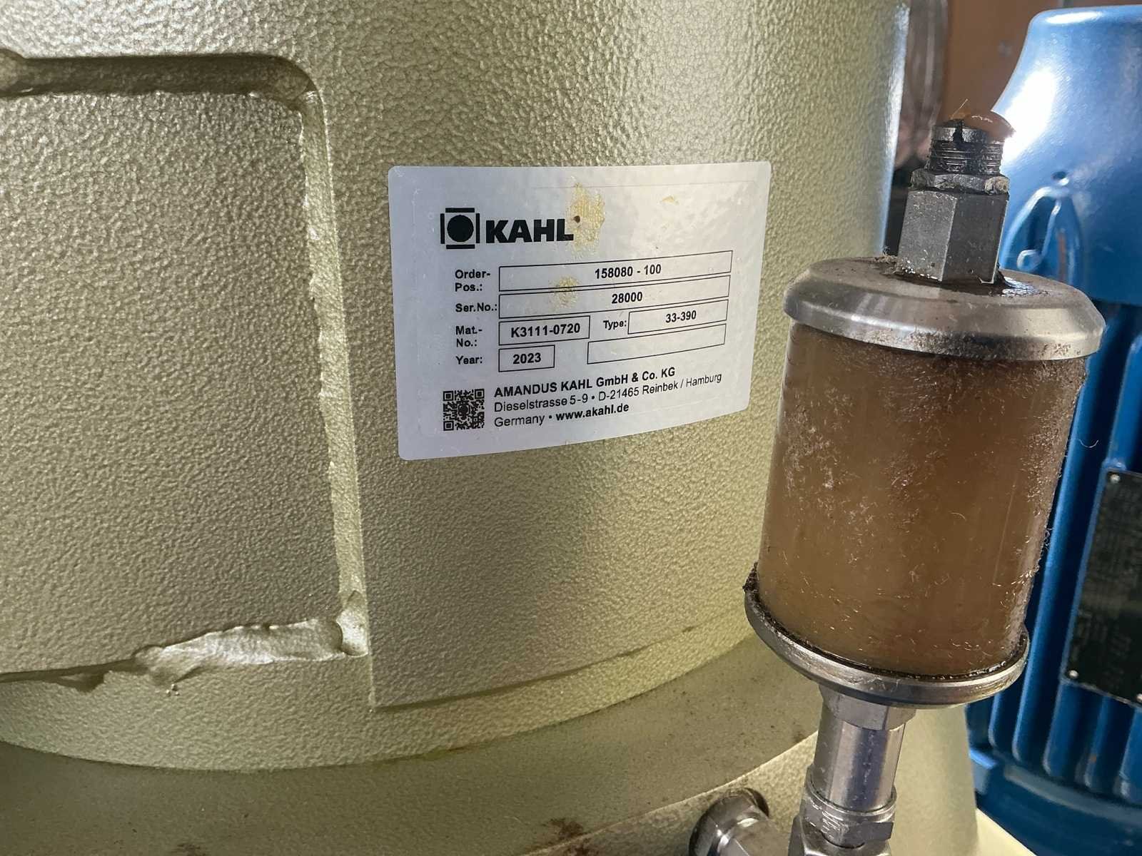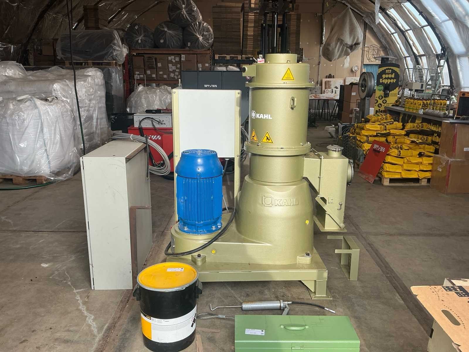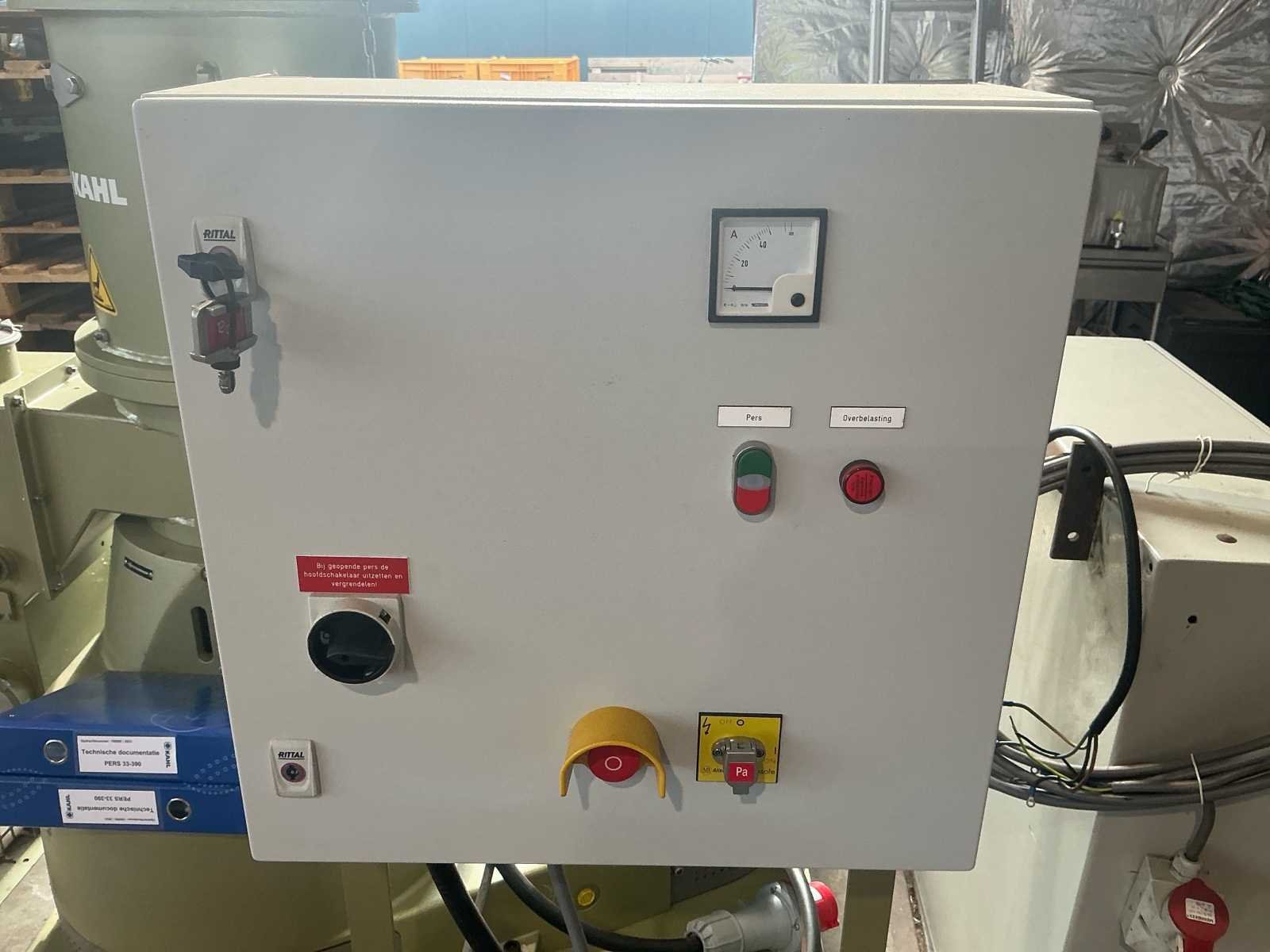 Urenstand: niet bekend Facturen beschikbaar voor inzage koper Gebruikt in combinatie met WEIMA WL4 shredder Shredder heeft 237 uur gedraaid, pers kan derhalve niet significant meer uren hebben gemaakt Toegepast voor het persen van wol Inclusief schakelkast voor het ovangen van eventuele piekbelasting Inclusief Emerson Commander SK snelheidsregelaar Schakelkast is door opdrachtgever niet in gebruik genomen Extra toebehoren inbegrepen (gereedschapkist, vet, bevestigingsdraad, hijsogen 2x) Staat: zeer nette staat No Merk: Kahl Type: 33-390 Bouwjaar: 2023 Serienummer: 28000 Schakelkast: true Aansluiting: 400V Totale afmeting L: 1400mm Totale afmeting Breedte: 1060mm Totale afmeting Hoogte: 1720mm