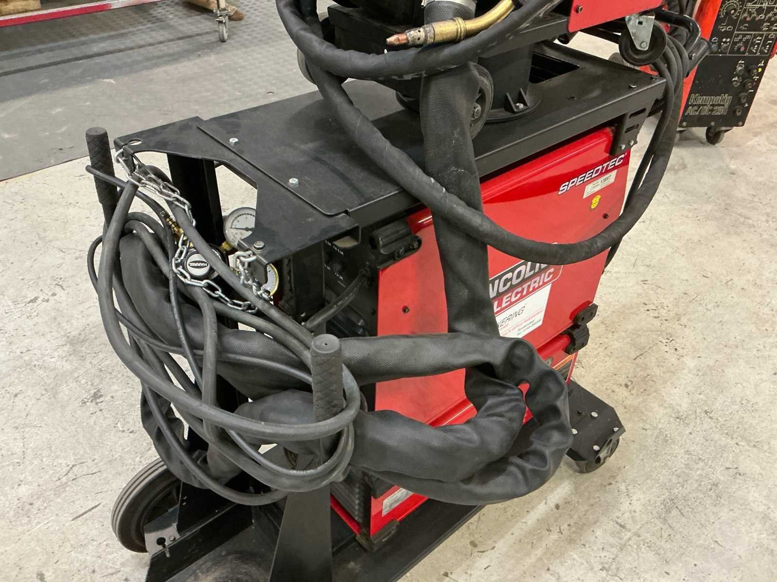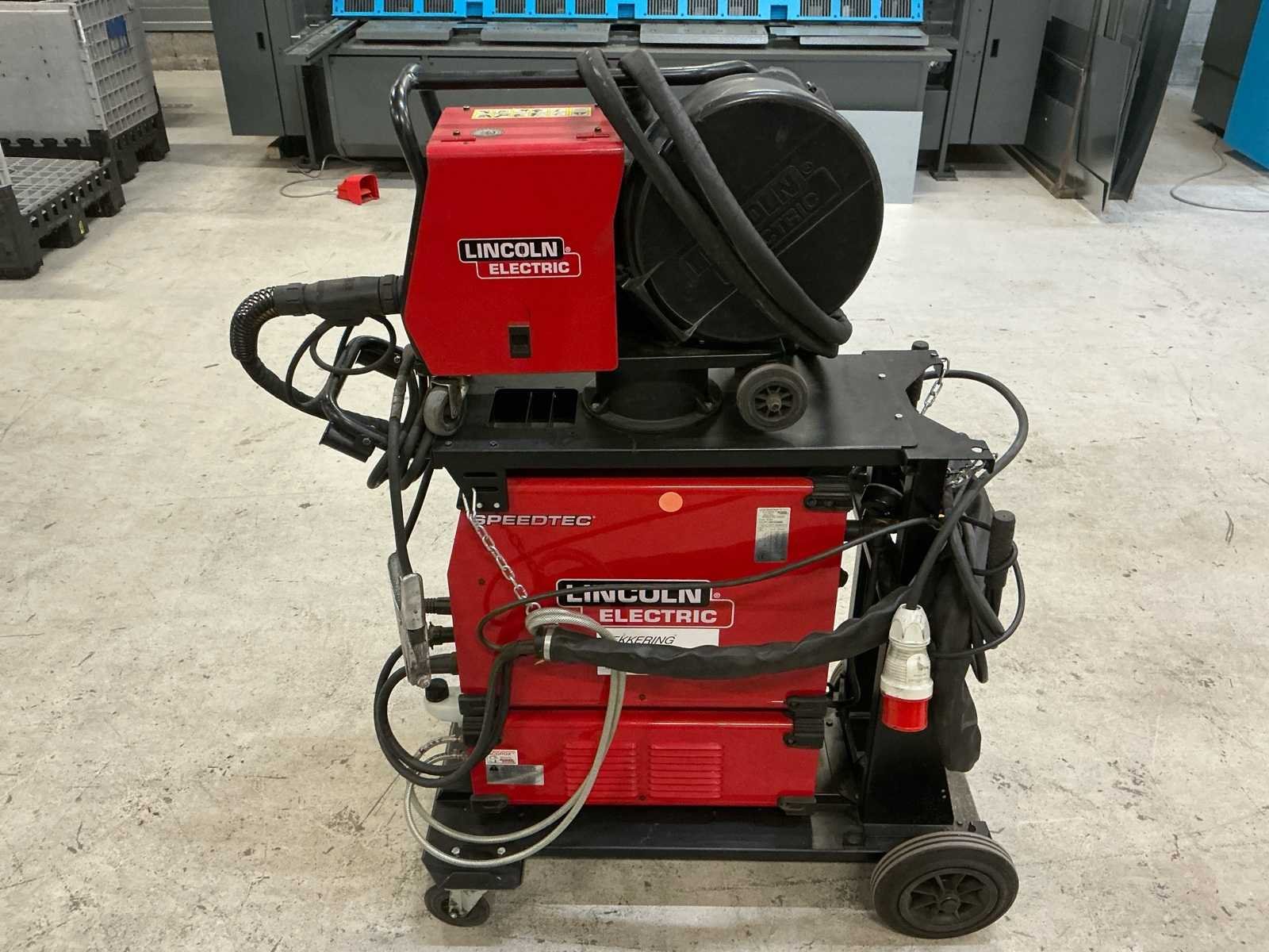 Lincoln MIG lasset. Voorzien van: Lincoln Speedtec 405SP MIG Pulserend Lasapparaat Lincoln PF44 draadaanvoerkoffer Lincoln Coolarc 46 waterkoeler Inclusief verrijdbaar onderstel Voor specificaties, zie laatste foto’s. In werkende staat. Nee Merk: Lincoln Type: Speedtec 405 SP Max. lasvermogen: 400A Aansluiting: 380V Digitale uitlezing: true Draadaanvoerunit: true Afmeting l: 1300mm Afmeting b: 600mm Afmeting h: 1500mm