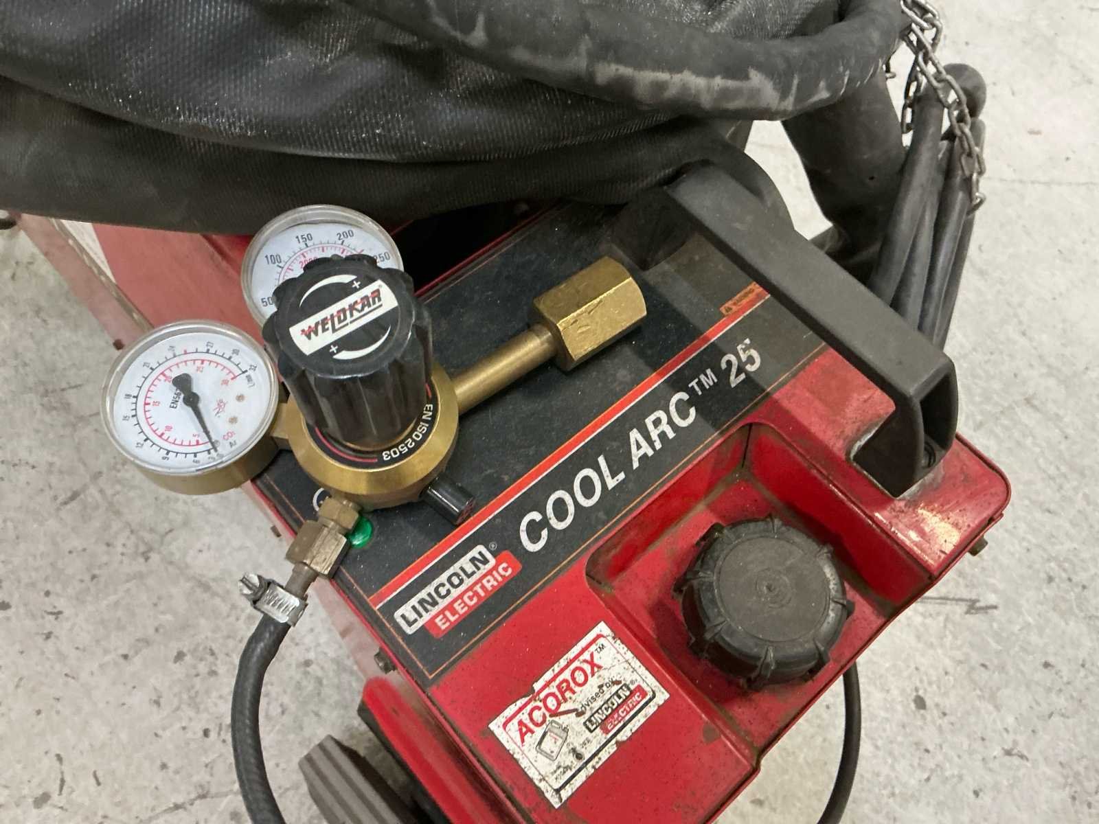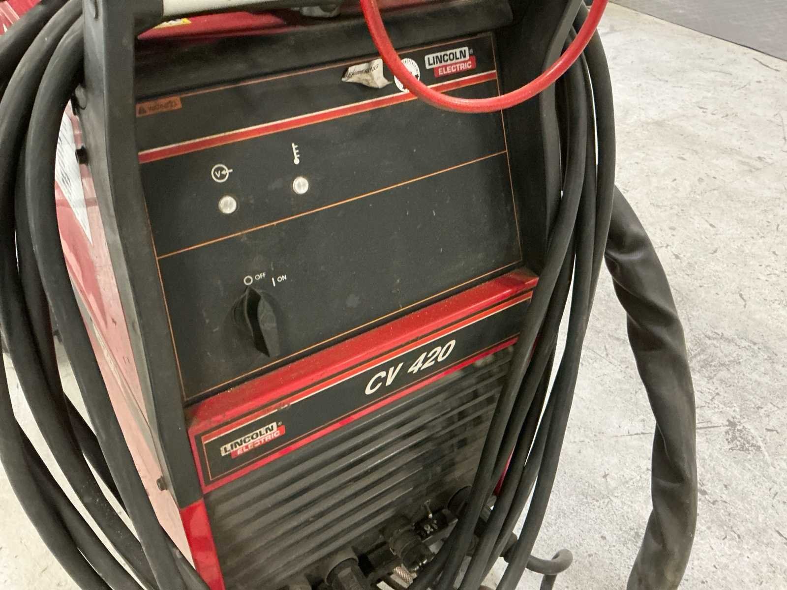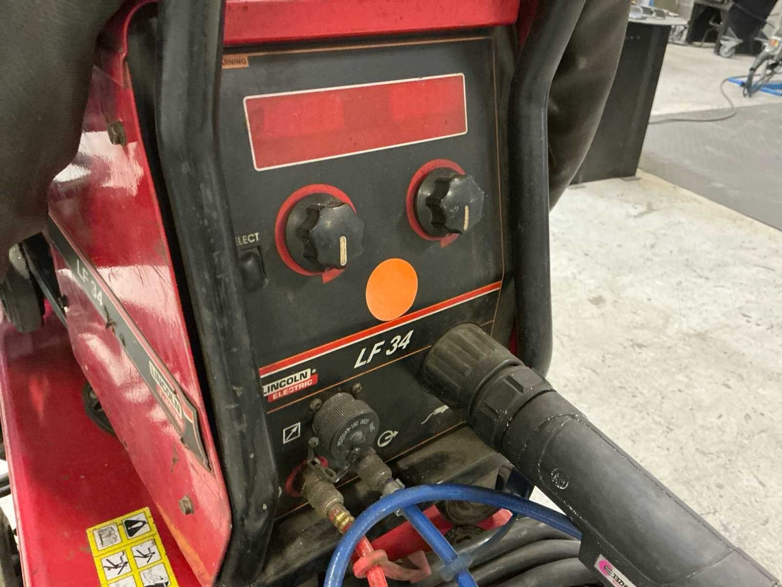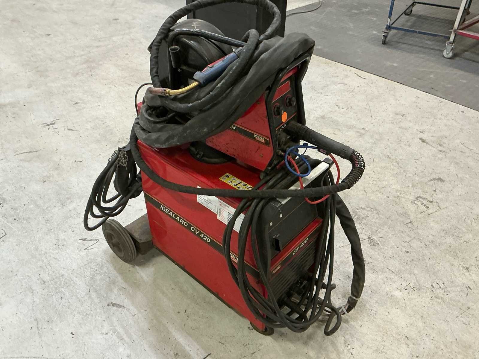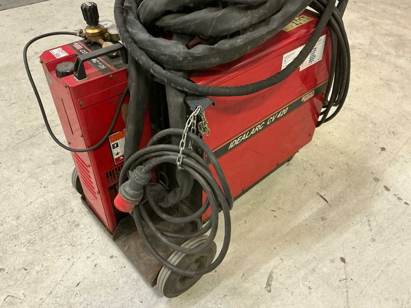 Lincoln MIG lasset Voorzien van: Lincoln Idealarc CV420 MIG Lasapparaat Lincoln LF34 draadaanvoerkoffer Inclusief verrijdbaar onderstel Voor specificaties, zie laatste foto’s. In werkende staat. Nee Merk: Lincoln Type: Idealarc CV420 Aansluiting: 380V Afmeting l: 1200mm Afmeting b: 700mm Afmeting h: 1300mm
