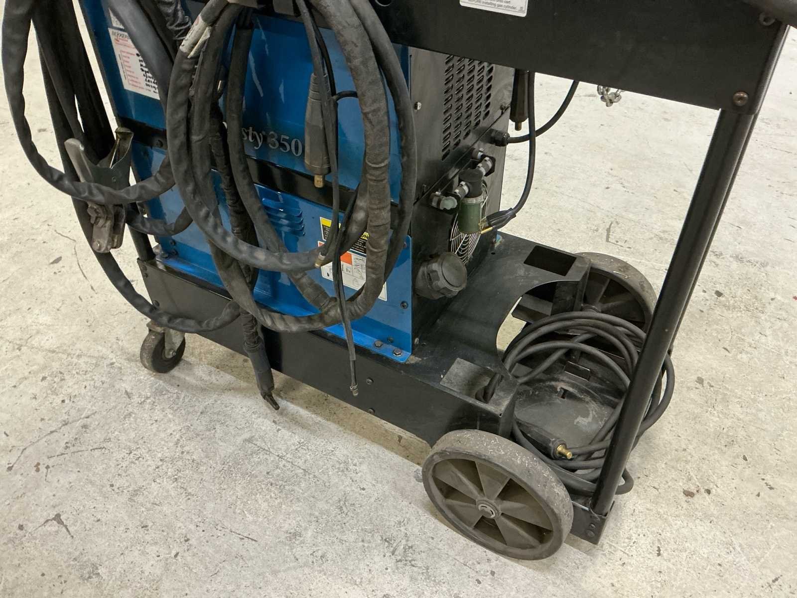 Miller TIG lasset Voorzien van: Miller Dynasty 350 TIG Lasapparaat Miller Coolmate 3.5 waterkoeler Inclusief verrijdbaar onderstel en voetbediening Voor specificaties, zie laatste foto’s. In werkende staat. Nee Merk: Miller Type: Dynasty 350 Max. lasvermogen: 350A Aansluiting: 380V Digitale uitlezing: true Afmeting l: 1300mm Afmeting b: 650mm Afmeting h: 1150mm