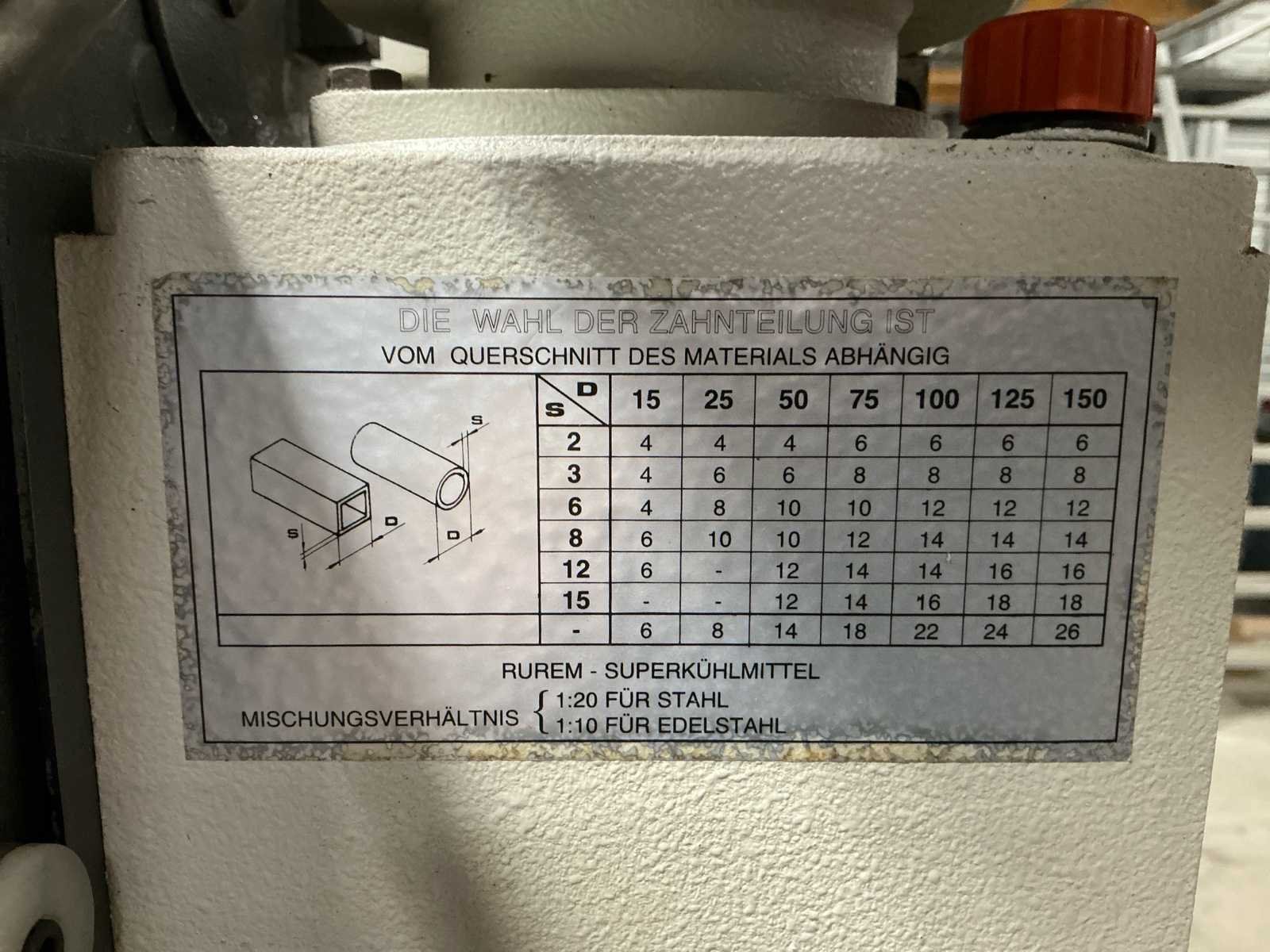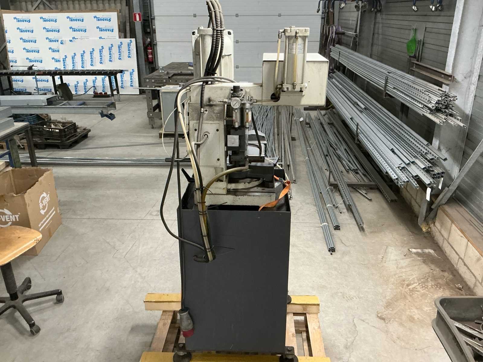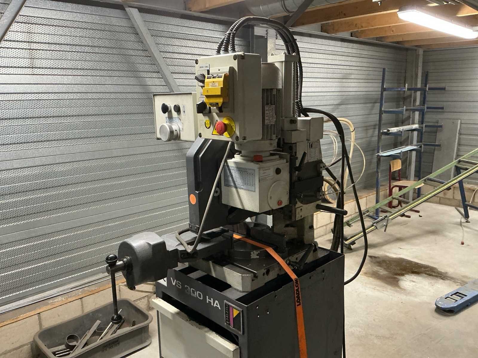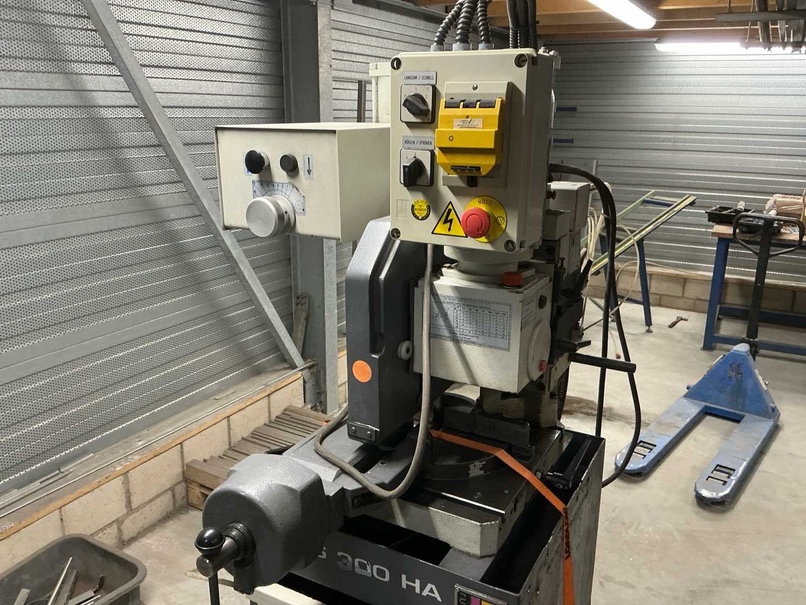 Rurack VS300HA Halfautomatische Cirkelzaagmachine Bereik tot 40mm Max. zaagbladdiameter 300mm 2 zaagsnelheden Voorzien van: Pneumatische materiaalklem Automatische voeding 380V aansluiting Koelmiddelreservoir met pomp Bedieningskast met noodstop Rubberen poten t.b.v. onderstel In werkende staat. Nee Merk: Rurack Type: VS300HA Bouwjaar: 2002 Serienummer: 4540 Zaagblad Ø: 230 Zaagbereik: 40 Koelmiddelpomp: true Aansluiting: 380V Afmeting l: 900mm Afmeting b: 700mm Afmeting h: 1900mm
