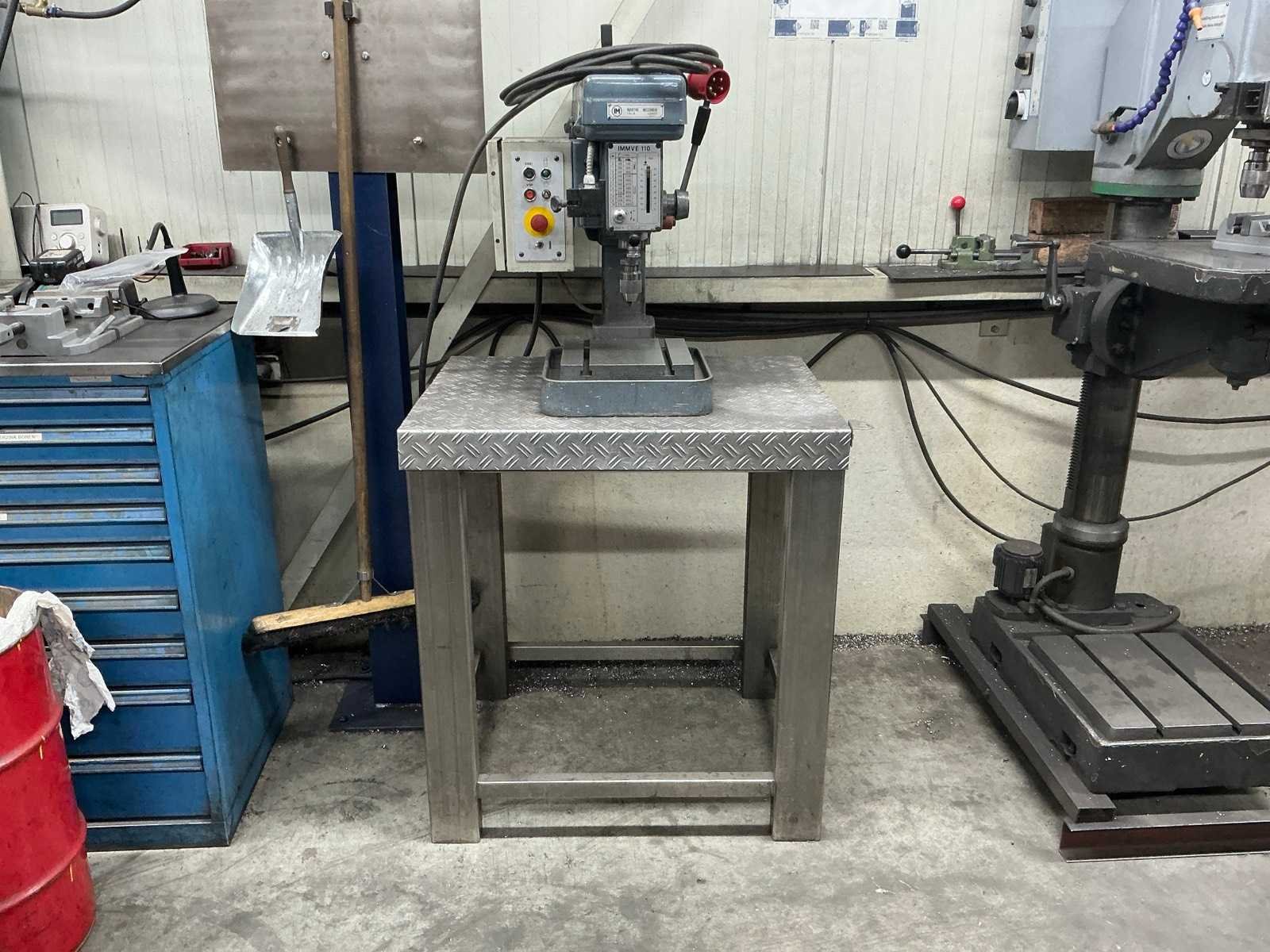 Met tafel Nee Merk: Industrie Meccaniche Type: IMM VF 110 Bouwjaar: 1998 Aansluiting: 380V Machinegewicht: 72kg Afmeting l: 850mm Afmeting b: 650mm Afmeting h: 1600mm