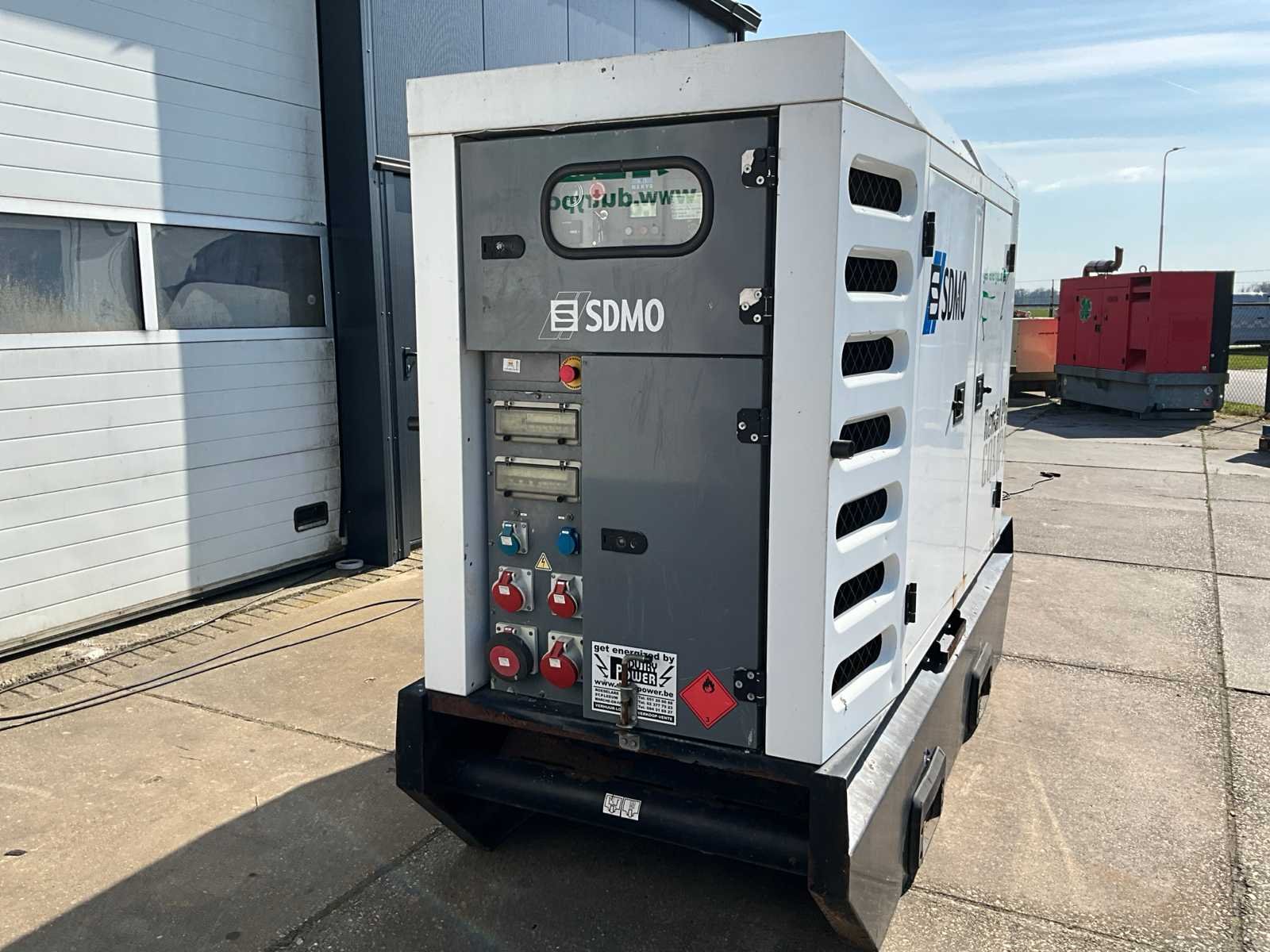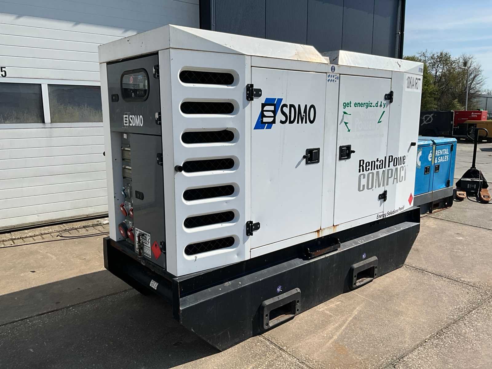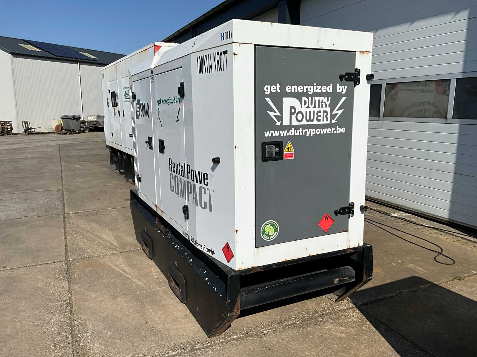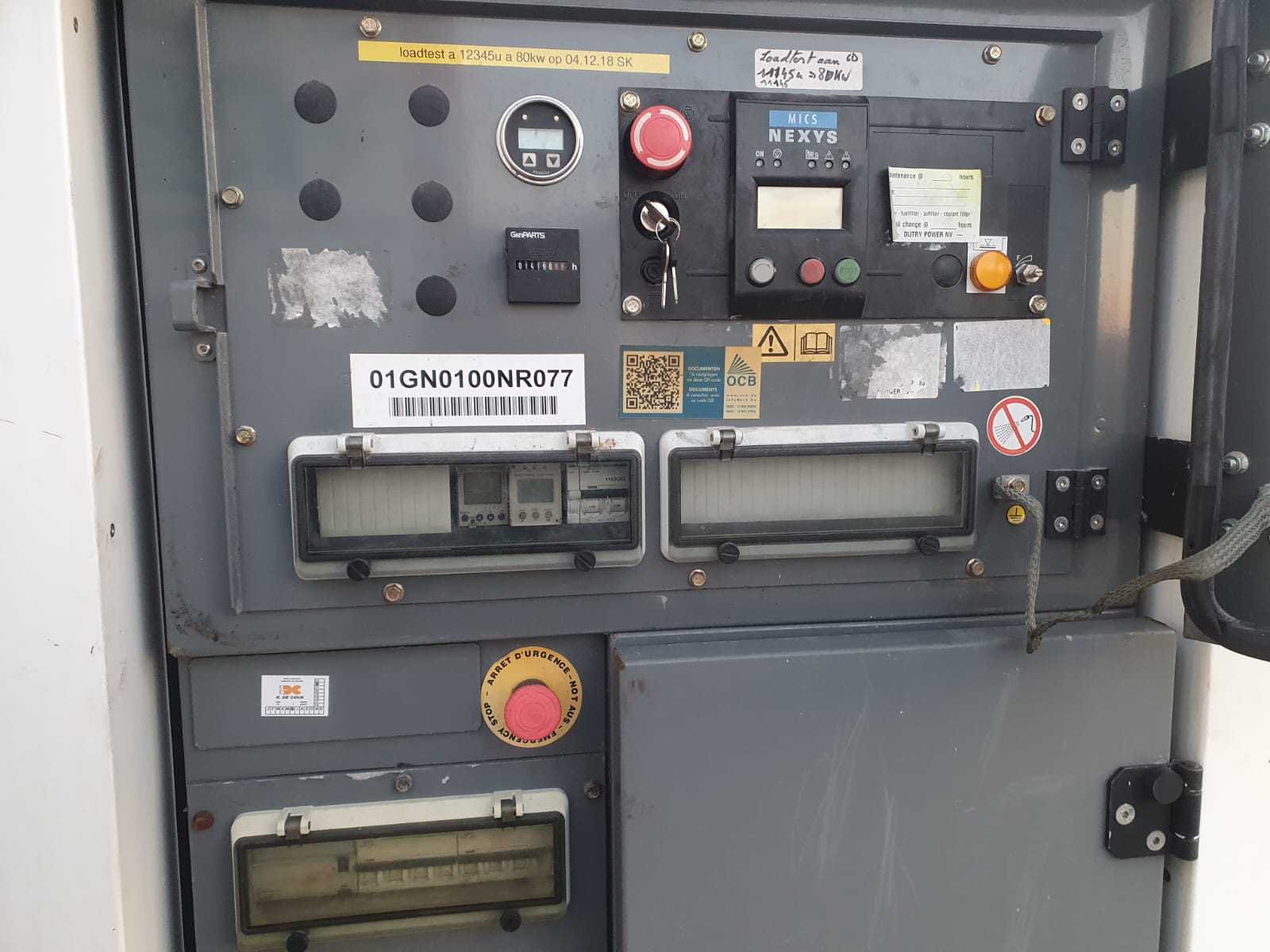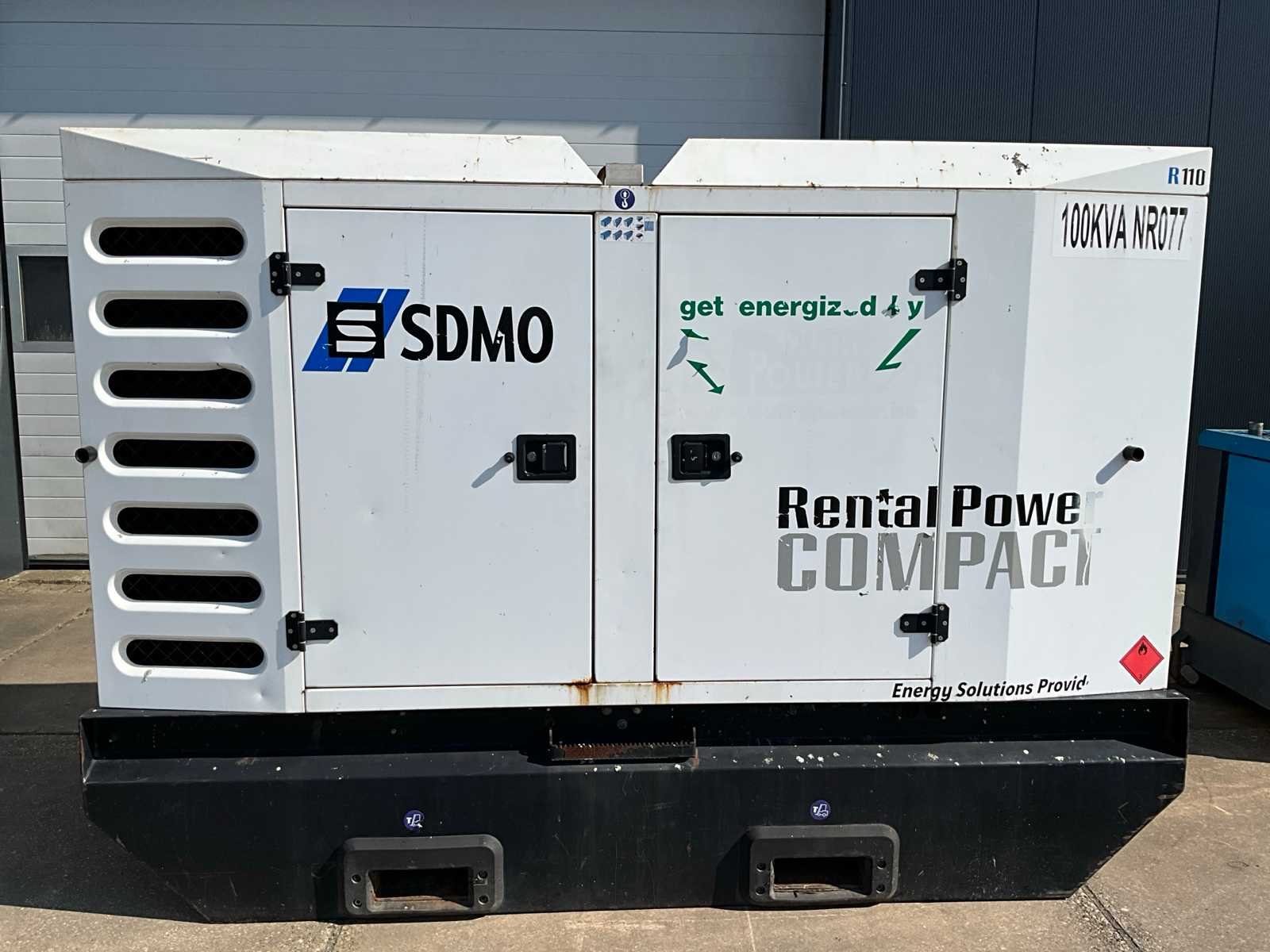 Voorzien van 4-Cil. “John Deere” dieselmotor; sokkenpakket; lepelkokers; Let op, generator defect! Nee Merk: SDMO Type: R110 Capaciteit.: 100kVA Type motor: John Deere Aantal cilinders: 4 Watergekoeld: Ja Totale afmeting L: 2850mm Totale afmeting Breedte: 1100mm Totale afmeting Hoogte: 2100mm