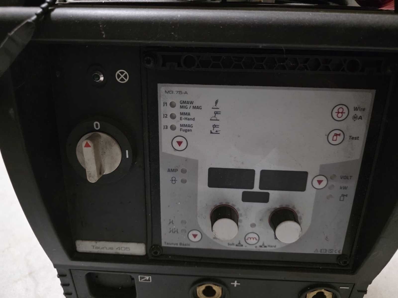 Ingangsspanning: 3-fase 400V, 50/60Hz Stroomverbruik: max. 26.2A Uitgangsstroom: 5A – 400A bij 100% inschakelduur (volcontinu gebruik) Uitgangsspanning: 14.3V – 36.0V Open klemspanning (U₀): 79V Isolatieklasse / beschermingsklasse: IP23 Versie: 6 Aansluitingen & Inte Nee Merk: EWM Type: Taurus 405 Basic TDM Serienummer: 0000596391 Aansluiting: 400V