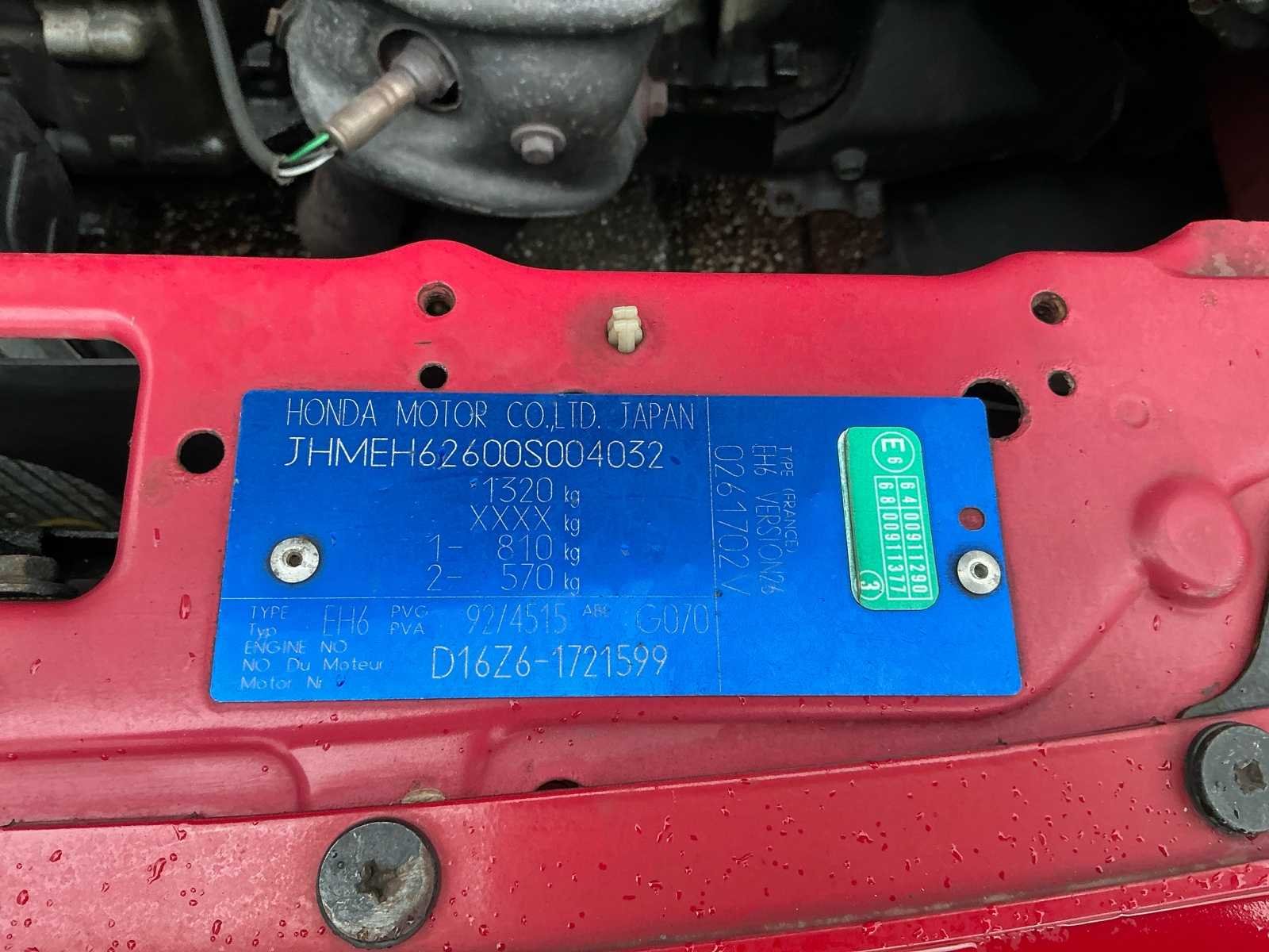 Alle originele accessoires zitten er bij (zodat hij weer helemaal origineel kan worden gemaakt) LET OP! dit voertuig heeft een kenteken registratie, bij afhalen dient u dit ter plaatste bij een derde partij te naam te stellen of te exporteren, hier zijn extra kosten aan verbonden) No Kenteken: FP-NL-78 Merk: Honda Model: CRX Type: 1.6 CRX ESi Bouwjaar: 1992 Afgelezen kilometerstand: 174469km Cilinderinhoud: 1590cc Vermogen (kW): 92kW Brandstof: Benzine Laadvermogen: 0kg Datum eerste toelating: 1992-09-24 Datum eerste toelating (NL): 1992-09-24 APK vervaldatum: 2026-06-04 Aandrijving: Achter Kleur: rood Transmissie: Automaat Emissieklasse: 1 Aantal deuren: 2 Aantal sleutels: 1 Ledig gewicht: 1060kg Bruto BPM (NL): 0€ Aantal cilinders: 4 Carrosserie: Coupe Carfax Link: https://was.carfax.eu/v0/api/ccdid/5100016408/svc/201/vinreg/FPNL78/checksum/eyJhbGciOiJIUzI1NiIsInR5cCI6IkpXVCJ9.eyJleHAiOjE3NzY0Mjg5NDF9.LnERuSzRDSebcHctO8ZdPv9kVdLLvo_U281Y6Tij6RE Start en rijdt: Ja startinformatie : Start en rijdt Self drive export possible : true Airconditioning: true