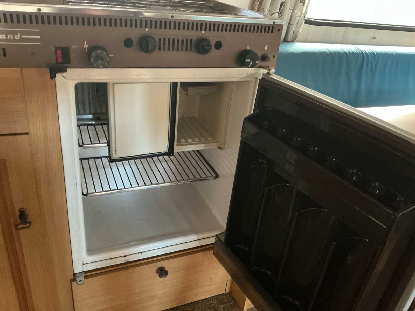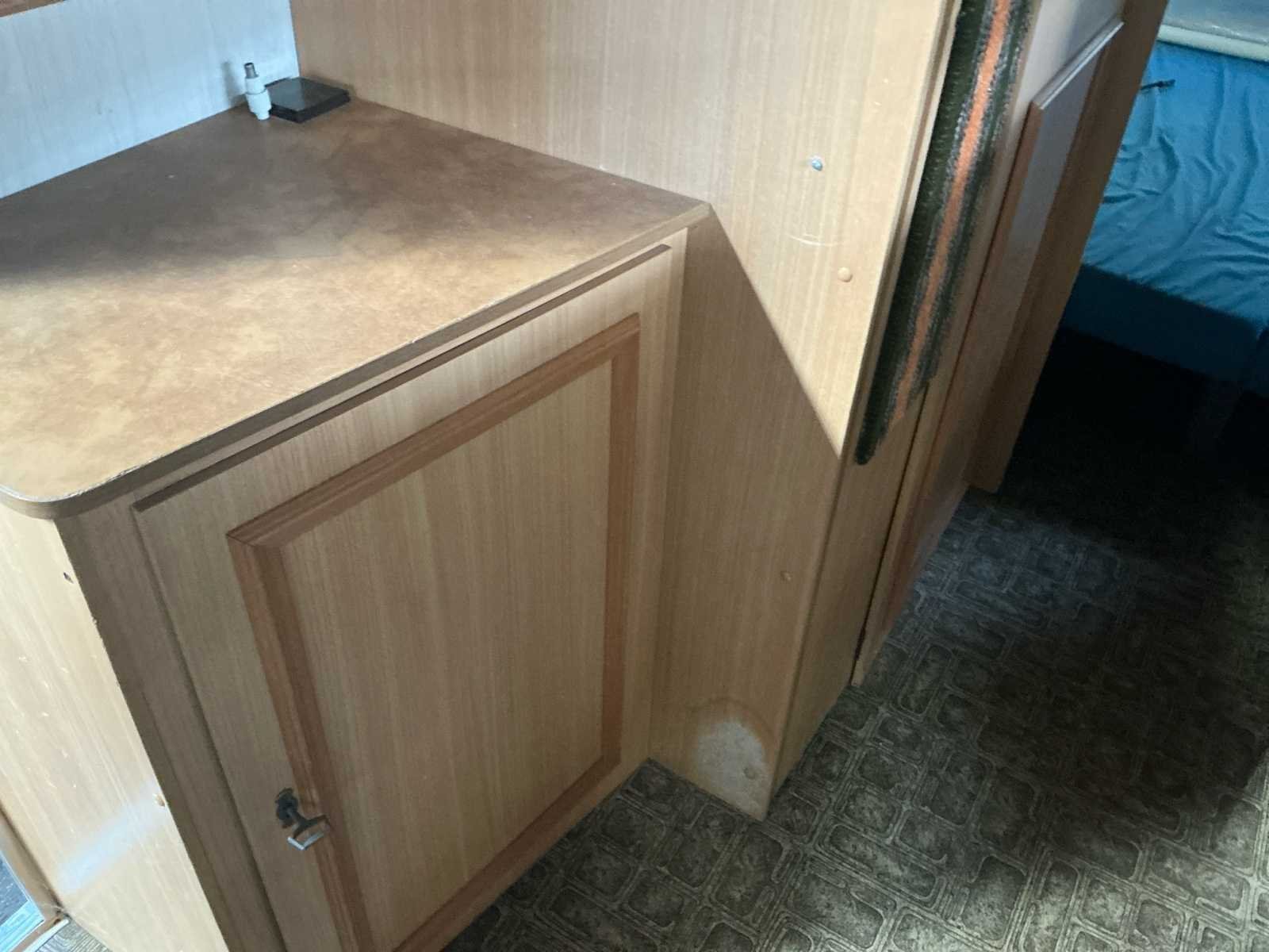 Lengte: 510 cm + 130cm dissel. Voorzien van: rondzit met tafel voorzijde, keukenblok met gasfornuis en koelkast, 2 persoonsbed achterzijde, kastruimte, kachel, extra inloopkast (voorheen sanitaire ruimte), steunpoten, reservewiel. Nee Merk: Munsterland Model: Luxus 510 Lengte: 640cm Breedte: 210cm Hoogte: 240cm
