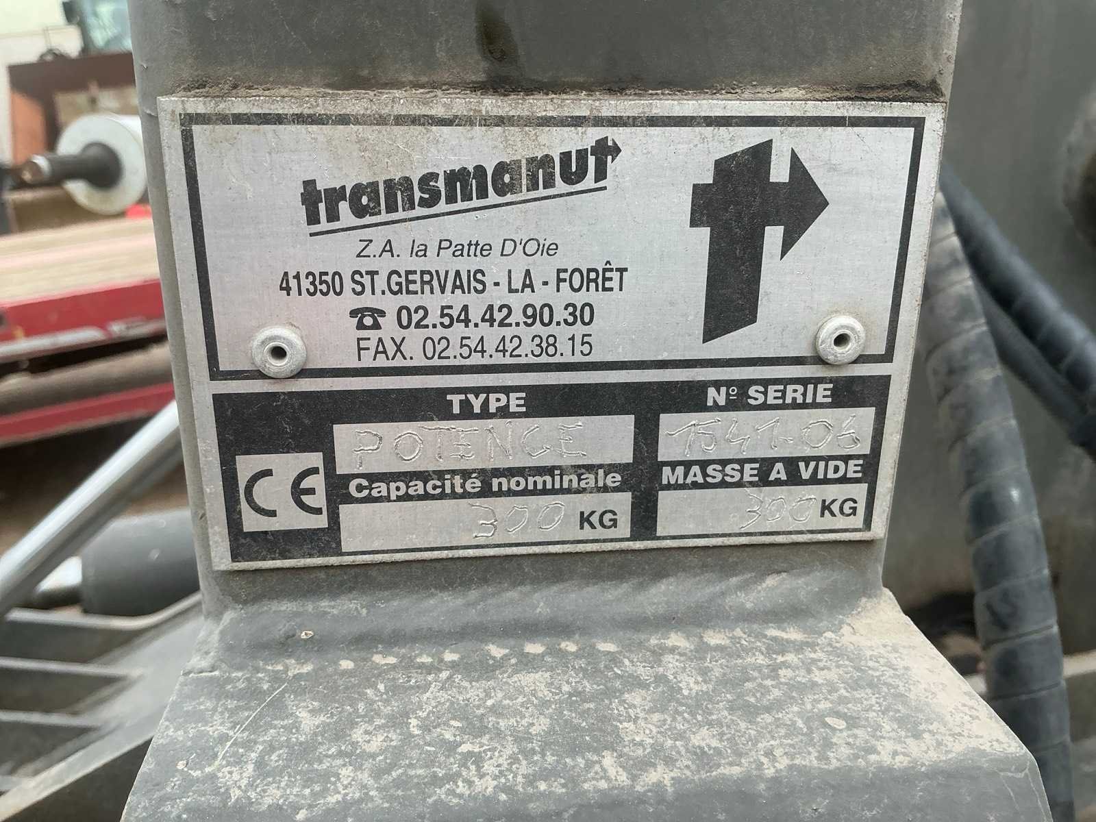 Voorzien van hydraulische uitschuifbare mast. Met Transmanut Potence 300kg en Magsi puinbak, hefvermogen: 1800kg. Nee Merk: Transmanut Type: ETP 2004 Bouwjaar: 2006 Serienummer: 1098-0906 Merk motor: Kubota Motorvermogen (kW): 75kW Aantal cilinders: 4 Brandstof: Diesel Afgelezen urenstand: 1741 Eigen gewicht: 5200kg Totale afmeting L: 6000mm Totale afmeting Breedte: 1450mm Totale afmeting Hoogte: 2700mm