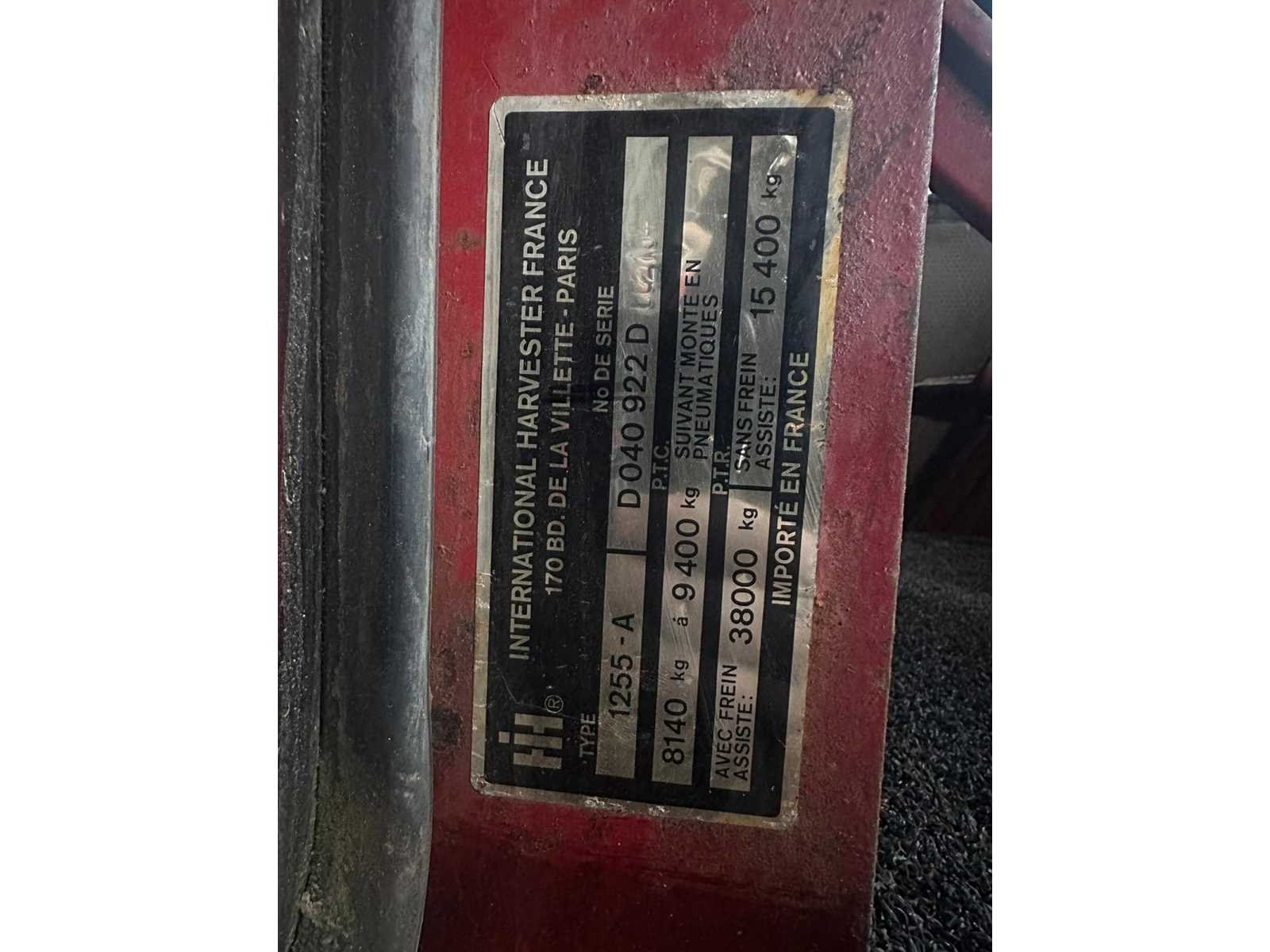 Voorzien van: Franse documentatie, 9700uur, recent onderhoud uitgevoerd, fronthef niet compleet, 5,9-liter 6-cilinder, 4WD (4x4), synchrone versnellingsbak, PTO-toerental: 540/1000 tpm, 30 km/u, drie dubbelwerkende regelventielen met zweefstand, 7 polige stekker., is goede staat Nee Merk: International Type: 1255-A Bouwjaar: 1981 Serienummer: D040922D Motorvermogen (kW): 93.2kW Afgelezen urenstand: 9700 Aftakastoerental: 540rpm Aantal hydraulische ventielen achter: 3 Bandenmaat voor: 16.9R24 Bandenmaat achter: 18.4R38 Fronthefinrichting: true Eigen gewicht: 8140kg Totale afmeting L: 4800mm Totale afmeting Breedte: 2500mm Totale afmeting Hoogte: 3000mm Kentekenpapieren compleet?: true