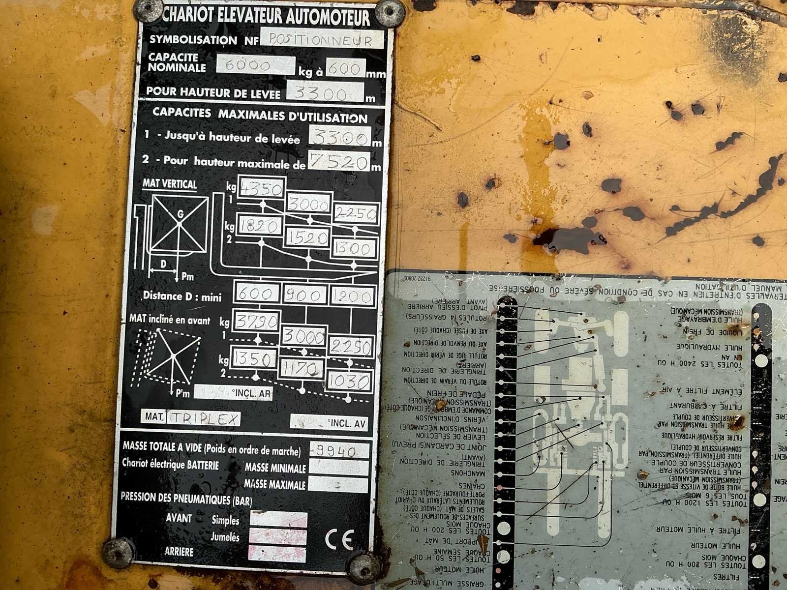 Voorzien van: triplex mast, zware vorken 2000mm, volrubber banden, gastank, verstelbare stuurkolom, motortype PSI 4X, motorvermogen 78 kW, meters motortemperatuur, urenteller, storingsindicator, transmissieolietemperatuur, laag remvloeistofpeil, motoroliedruk, dynamolading en luchtfilteronderhoud, accumulator in het remsysteem. Nee Merk: Caterpillar Type: GC60 K Bouwjaar: 1999 Serienummer: AT8900530 Brandstof: Gas Mast: Triplex Soort band: Volrubber Aantal wielen: 4 Afgelezen urenstand: 8092 Side-shift: true Triple mast: true Eigen gewicht: 9647kg Hefvermogen: 6000kg Lepellengte: 2000mm Vol rubber banden: true Minimale doorrijhoogte: 3600mm Totale afmeting L: 5100mm Totale afmeting Breedte: 1400mm Totale afmeting Hoogte: 3600mm LPG: true