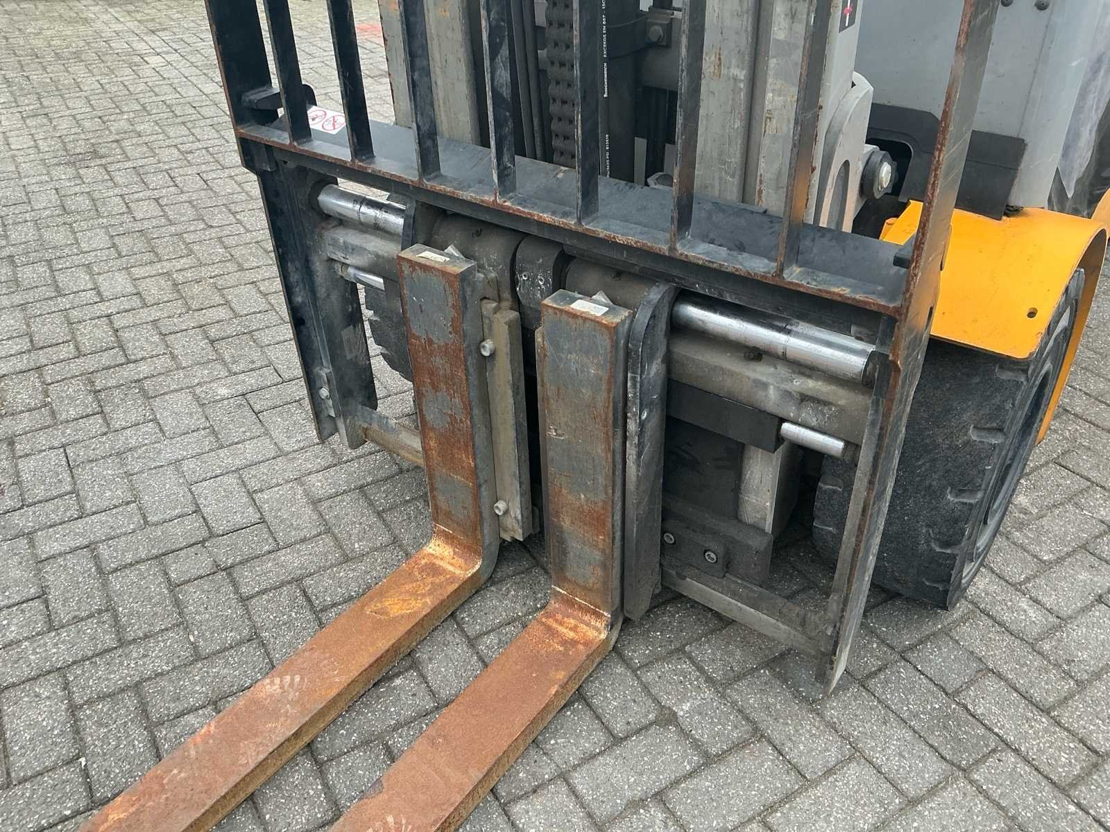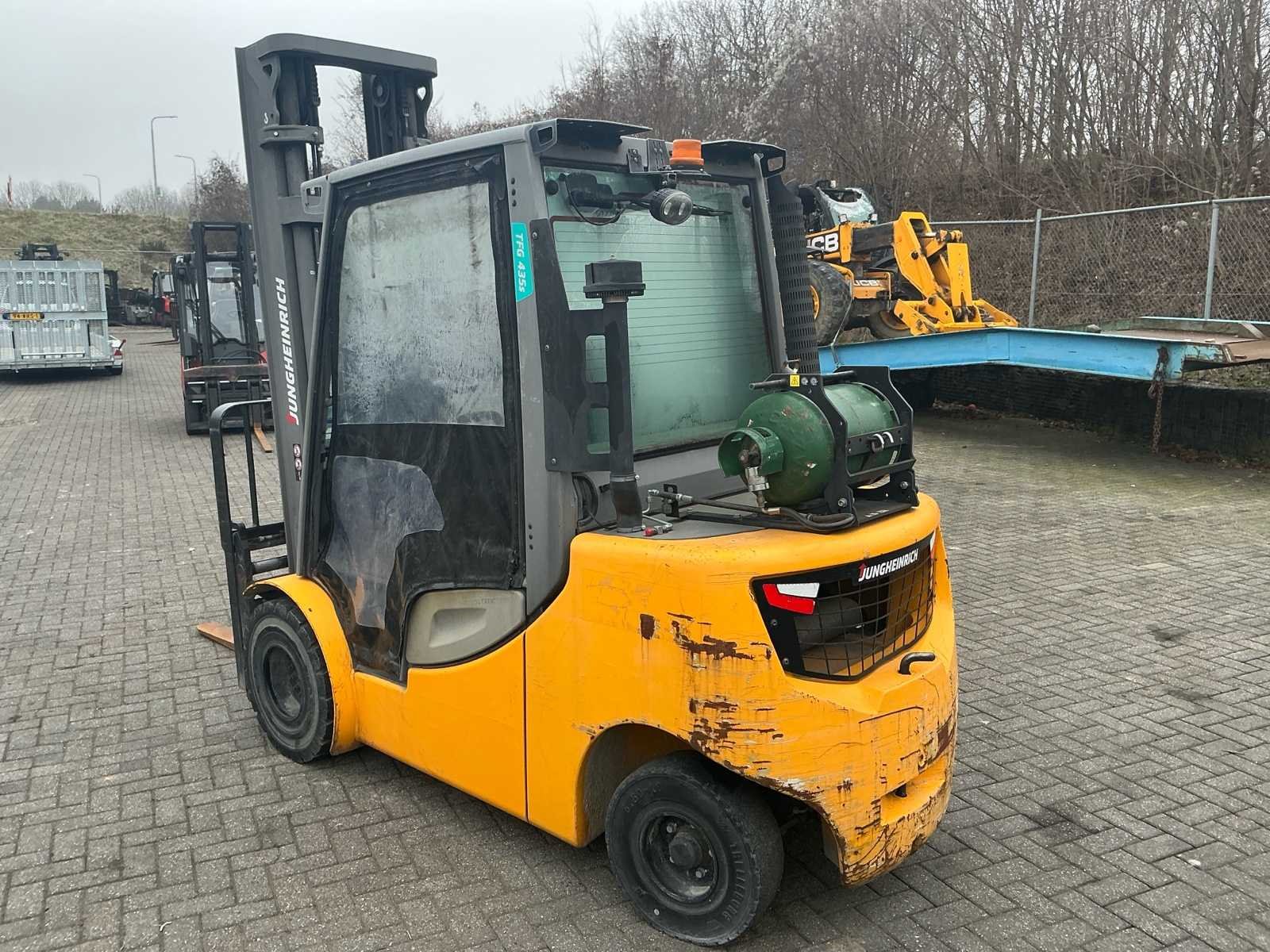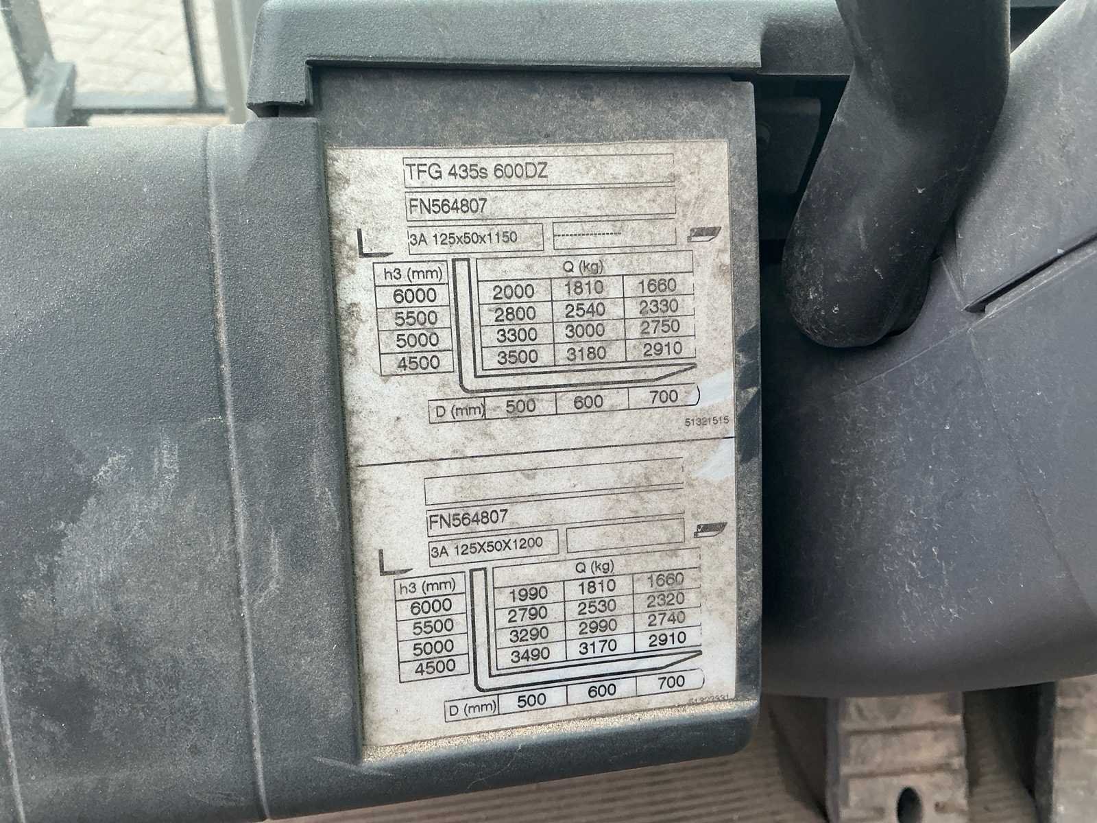Voorzien van: hydraulisch verstelbare lepels, side-shift, volrubber banden, trekhaak, verwarmde achterruit, ruitenwissers, cycloon filter, accumulator, hydrostaat, Grammer mechanisch geveerde stoel, mini-lever bediening op armleuning, verstelbare stuurkolom, Nee Merk: Jungheinrich Type: TFG 435s Serienummer: FN564807 Brandstof: Log Mast: Triplex Soort band: Volrubber Aantal wielen: 4 Afgelezen urenstand: 5299 Side-shift: true Hydraulisch verstelbare lepels: true Triple mast: true Hefvermogen: 3500kg Lepellengte: 1200mm Vol rubber banden: true Minimale doorrijhoogte: 2800mm Totale afmeting L: 4200mm Totale afmeting Breedte: 1350mm Totale afmeting Hoogte: 2800mm LPG: true