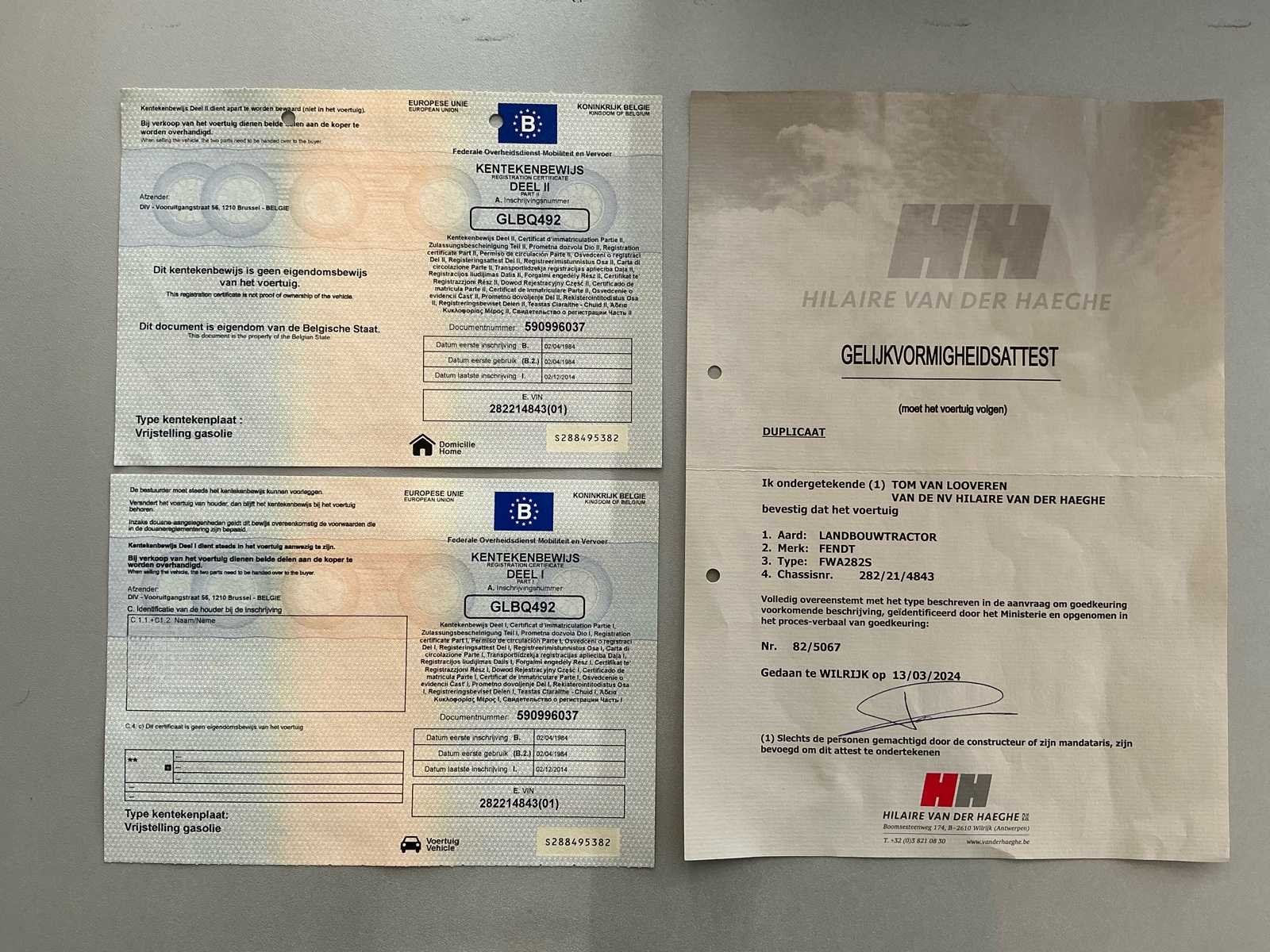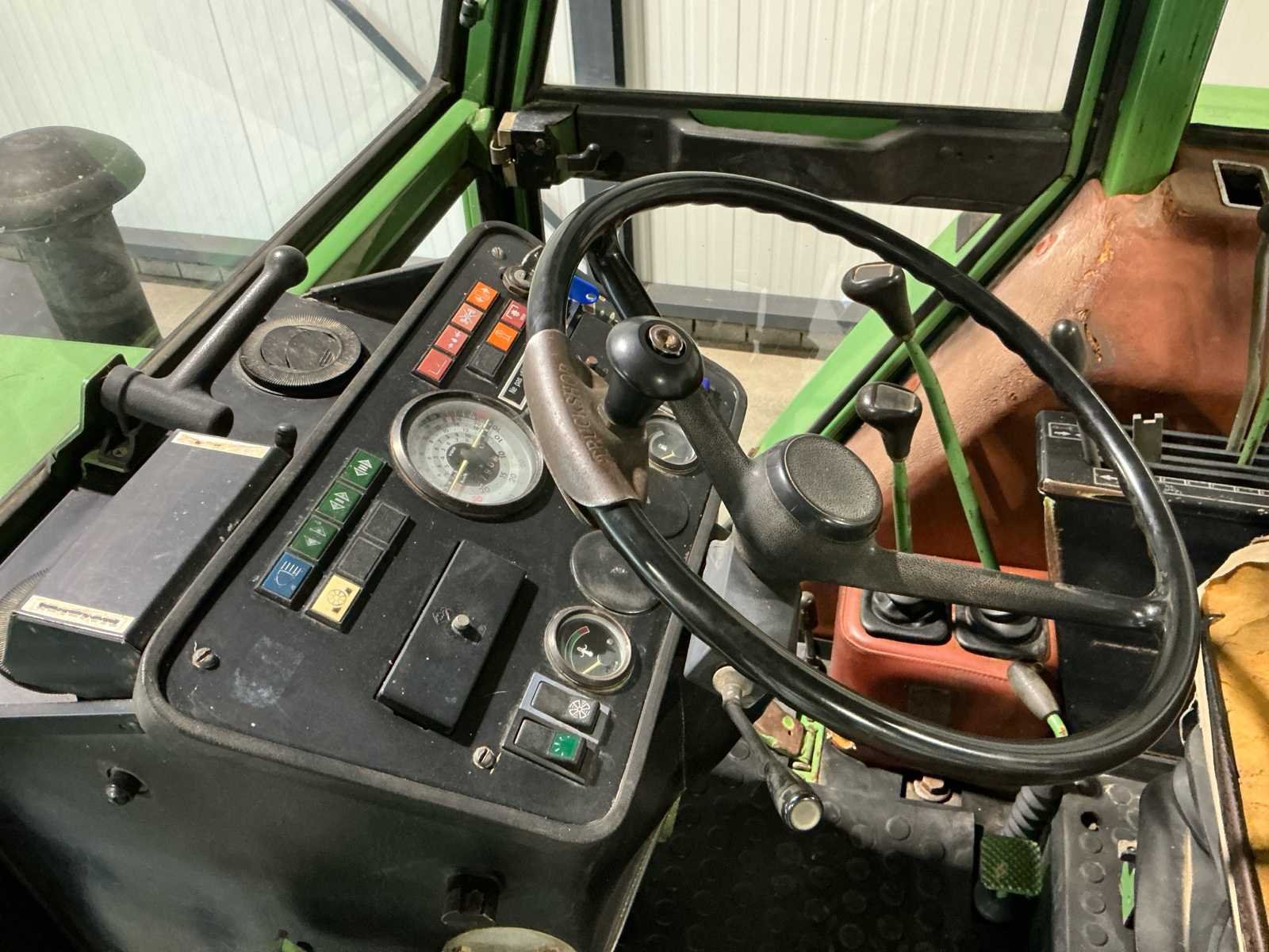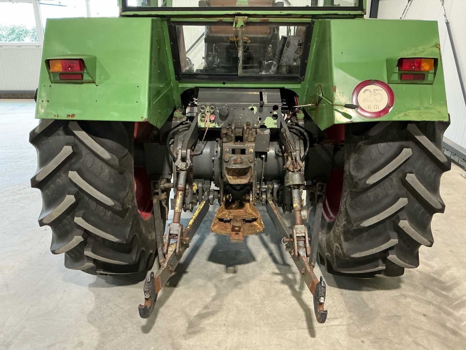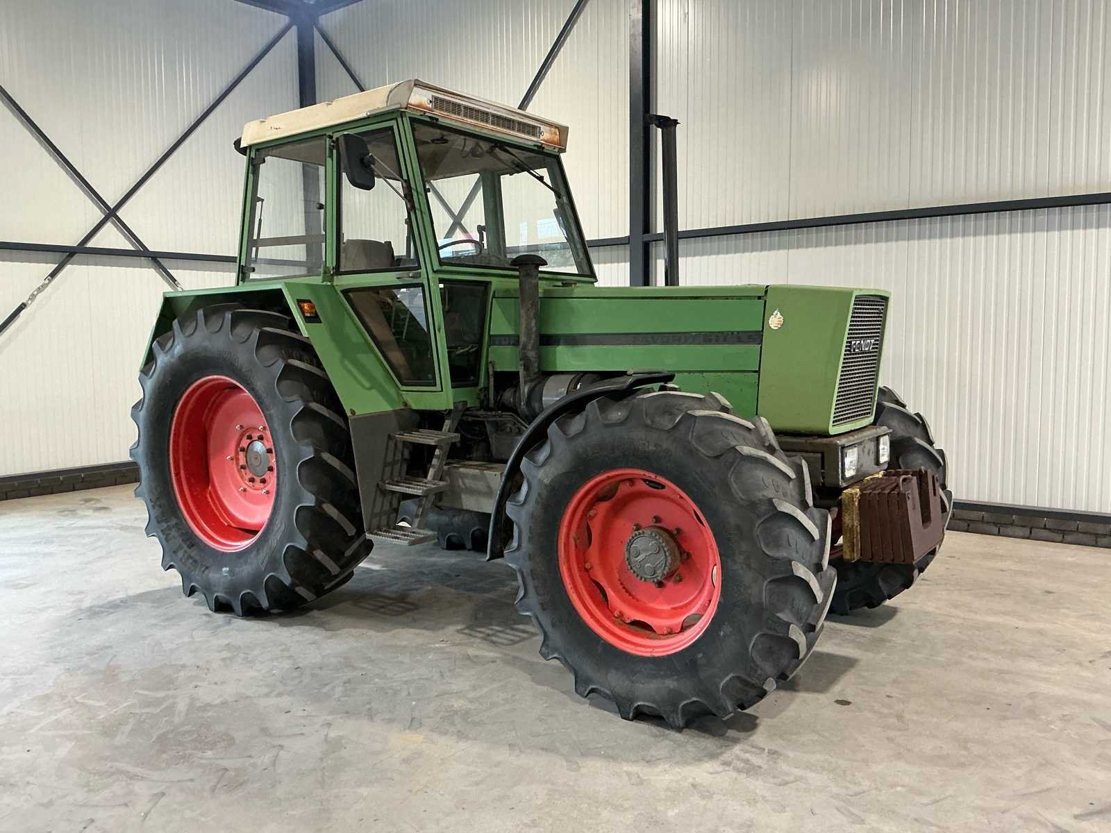 Voorzien van 110pk 6 cilinder dieselmotor, 4wielaandrijving, cabine, AgriMax banden, hefinrichting, aftakas achter, 3 hydraulische ventielen achter, Turbomatic vloeistofkoppeling. Let op: lichte tik in motor bij warme motor. Nee Merk: Fendt Type: Favorit 611 LS Turbomatik Bouwjaar: 1984 Afgelezen urenstand: 9790 Aantal hydraulische ventielen achter: 3 Bandenmaat voor: 420/85/R28 Bandenmaat achter: 520/85R38 Frontgewichtenset: true Cabine: true Totale afmeting L: 4800mm Totale afmeting Breedte: 2400mm Totale afmeting Hoogte: 2950mm Chassisnummer: 282-21-4843 Nationaliteit documenten: Belgie