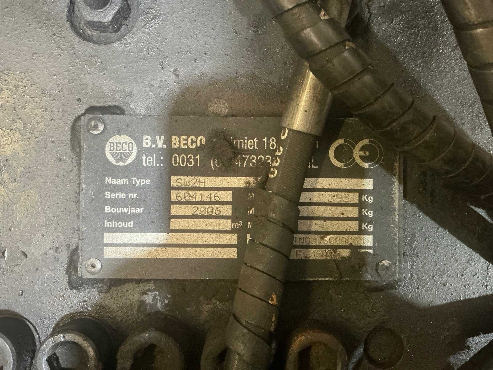 Nee Merk: Beco Type: SW2H Bouwjaar: 2006 Serienummer: 604146 Eigen gewicht: 395kg