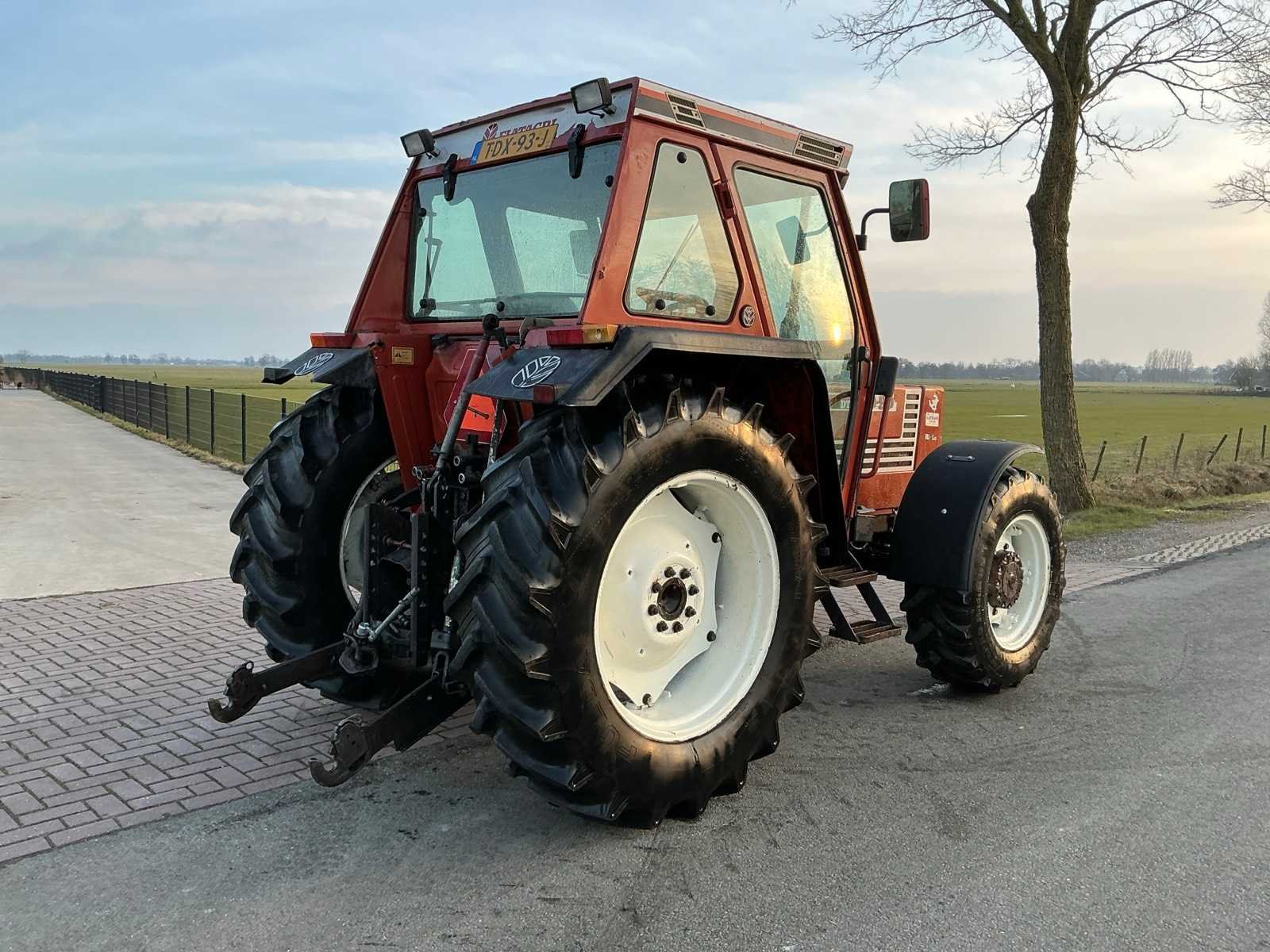 Fiat 70-90dt ;hi/lo; omkeer naast de stoel;40kmh transmissie!!;l Nee Merk: Fiat Type: 70-90 DT Bouwjaar: 1994 Kenteken: TDX-93-J Afgelezen urenstand: 8304 Versnellingsbaktype: Handgeschakeld 40km hi/lo Aantal hydraulische ventielen achter: 4 Bandenmaat voor: 340/85R24 Bandenmaat achter: 16.9R34 Cabine: true Luchtgeveerde stoel: true Kentekenpapieren compleet?: true Datum eerste toelating: 1994-06-30 Nationaliteit documenten: Nederland