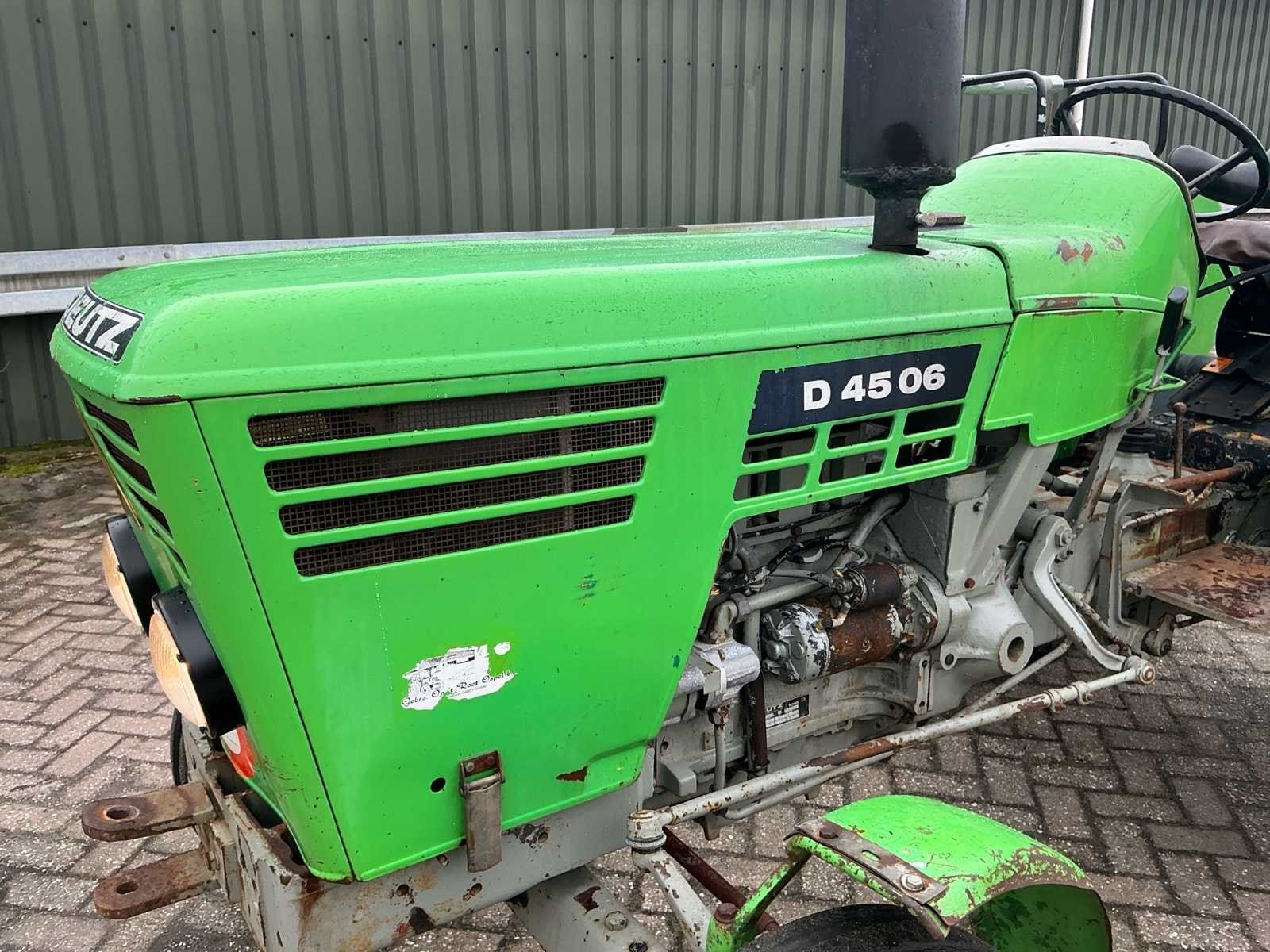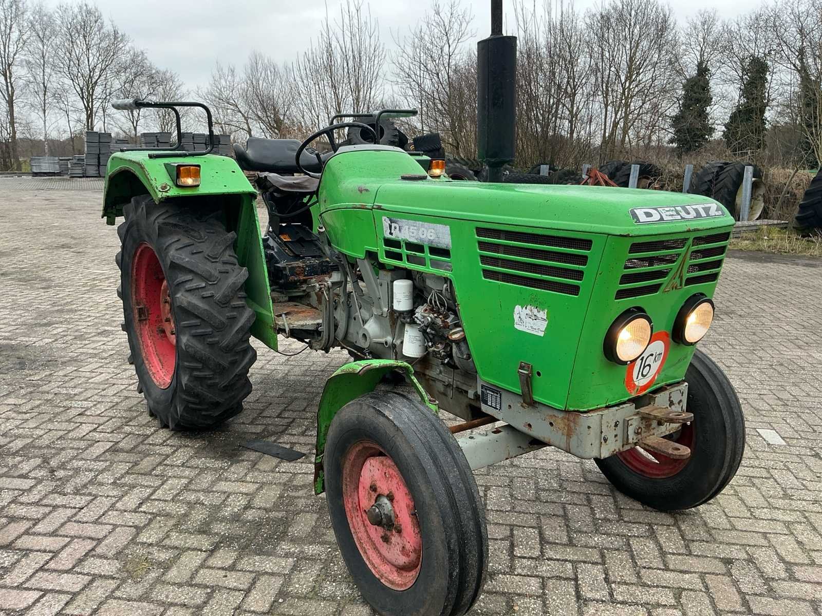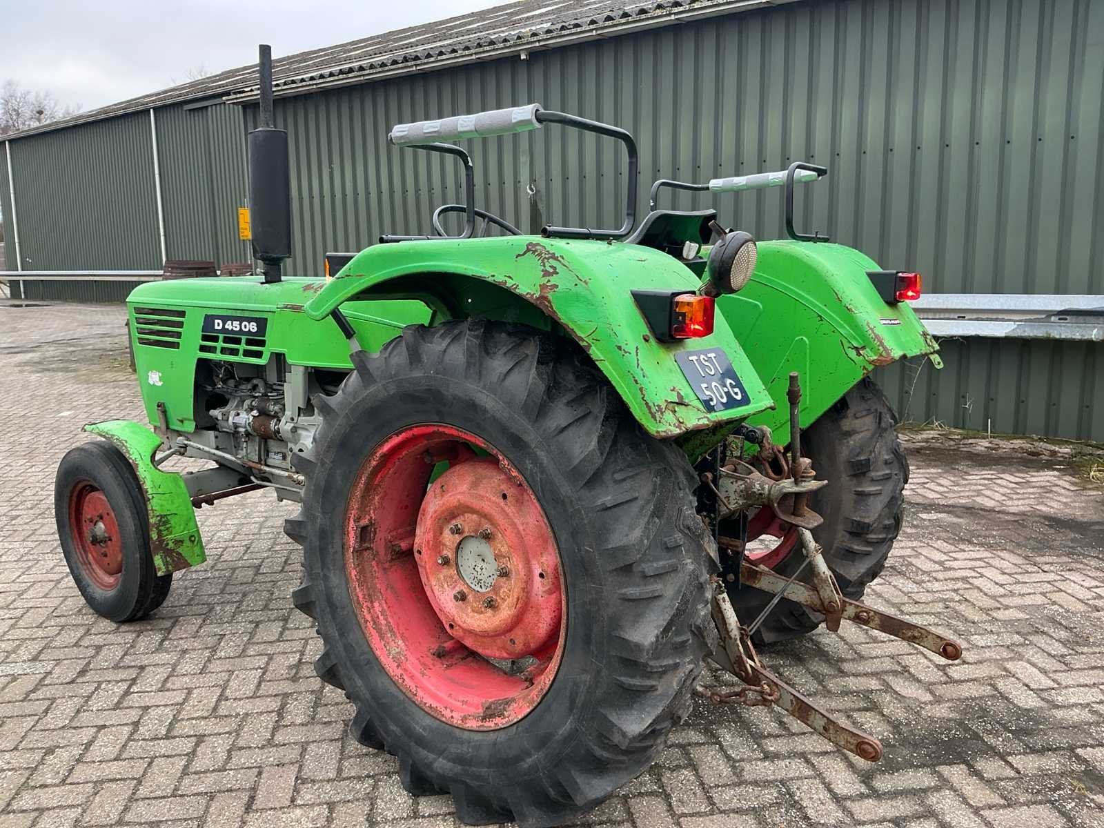 Voorzien van; Verlichting; Aftakas; Hef (LET OP! dit voertuig heeft een kenteken registratie, bij afhalen dient u dit ter plaatste bij een derde partij te naam te stellen of te exporteren, hier zijn extra kosten aan verbonden) Nee Merk: Deutz Type: D4506 Bouwjaar: 1974 Serienummer: 7876506 Kenteken: TST-50-G Afgelezen urenstand: 4936 Versnellingsbaktype: Handgeschakeld Bandenmaat achter: 13.6R28 Datum eerste toelating: 1974-06-30