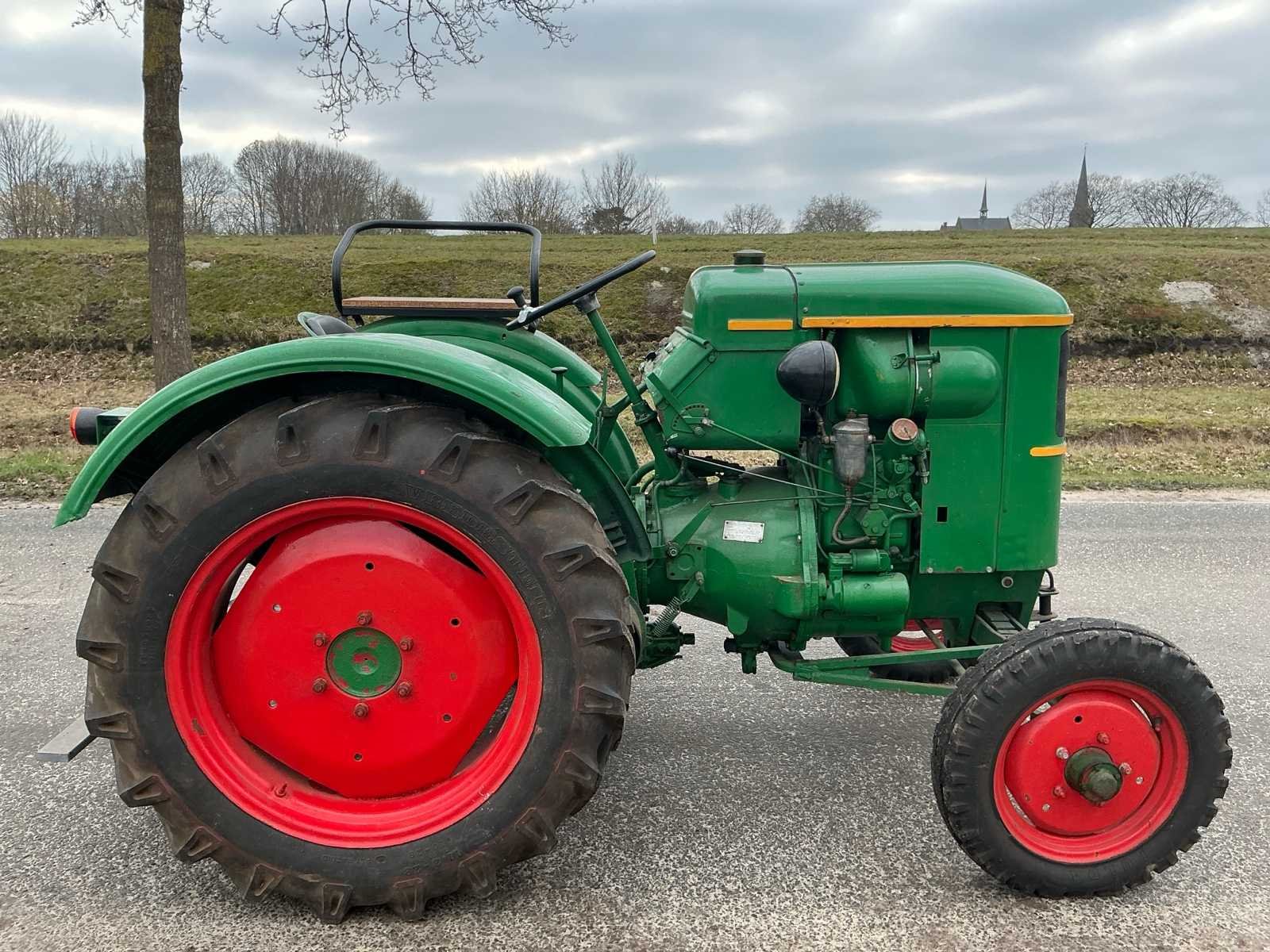 Voorzien van; Trekhaak; Trekbalk; Zitje; Knobbelstuur. Nee Merk: Deutz Type: Stompkop Serienummer: 1386112 Versnellingsbaktype: handgeschakeld