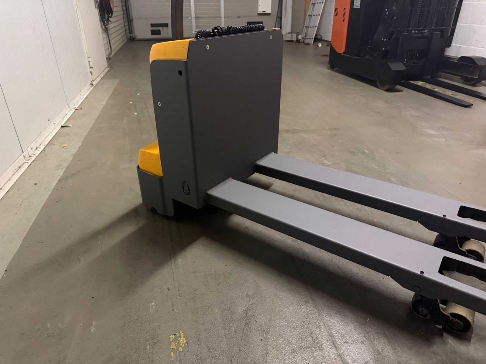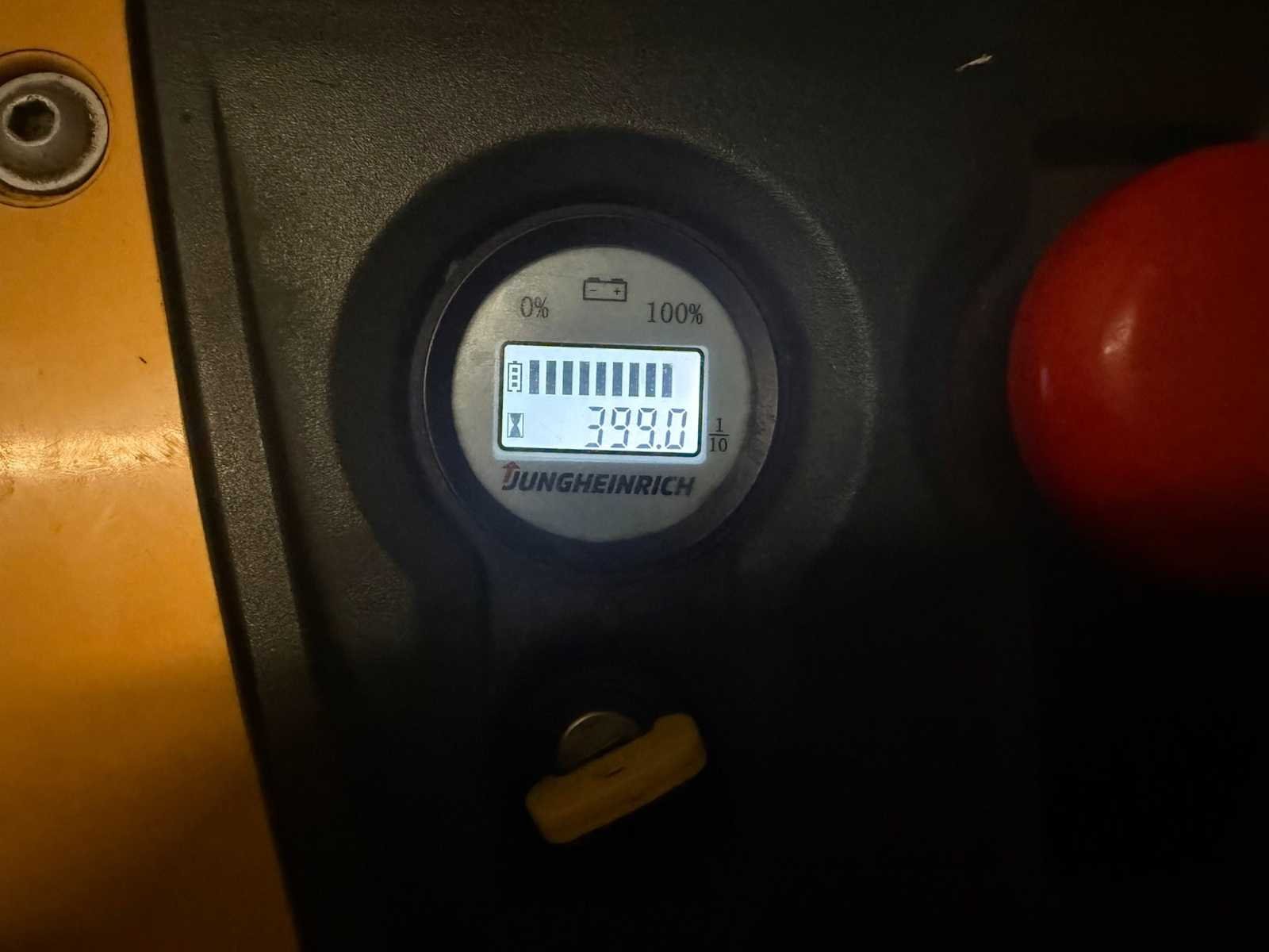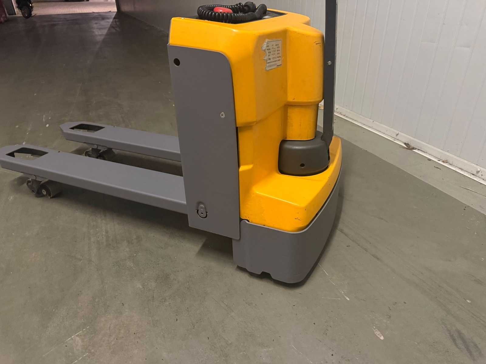 Voorzien van : EJE M13 ( Jungheinrich ), serie nummer : FN921954, hef vermogen : 1300kg, eigen gewicht incl batterij : 225kg, urenstand : 399, bouwjaar : 05-2016, wielbasis 1.212 m, standard banden TPU 1x+2/4, lengte 1.585 m, breedte 0.65 m, hoogte 0.74 m, hefhoogte 0.12 m, ractiemotor 0.6 kW, hijsmotor 1.2 kW, draaicirkel 1.357 m, model serie EJE Nee Merk: Jungheinrich Type: EJE M13 Bouwjaar: 2016 Serienummer: FN921954 Hefvermogen: 1300kg Vol rubber banden: true Afgelezen urenstand: 339 Eigen gewicht: 225kg Totale afmeting L: 1600mm Totale afmeting Breedte: 650mm Totale afmeting Hoogte: 740mm