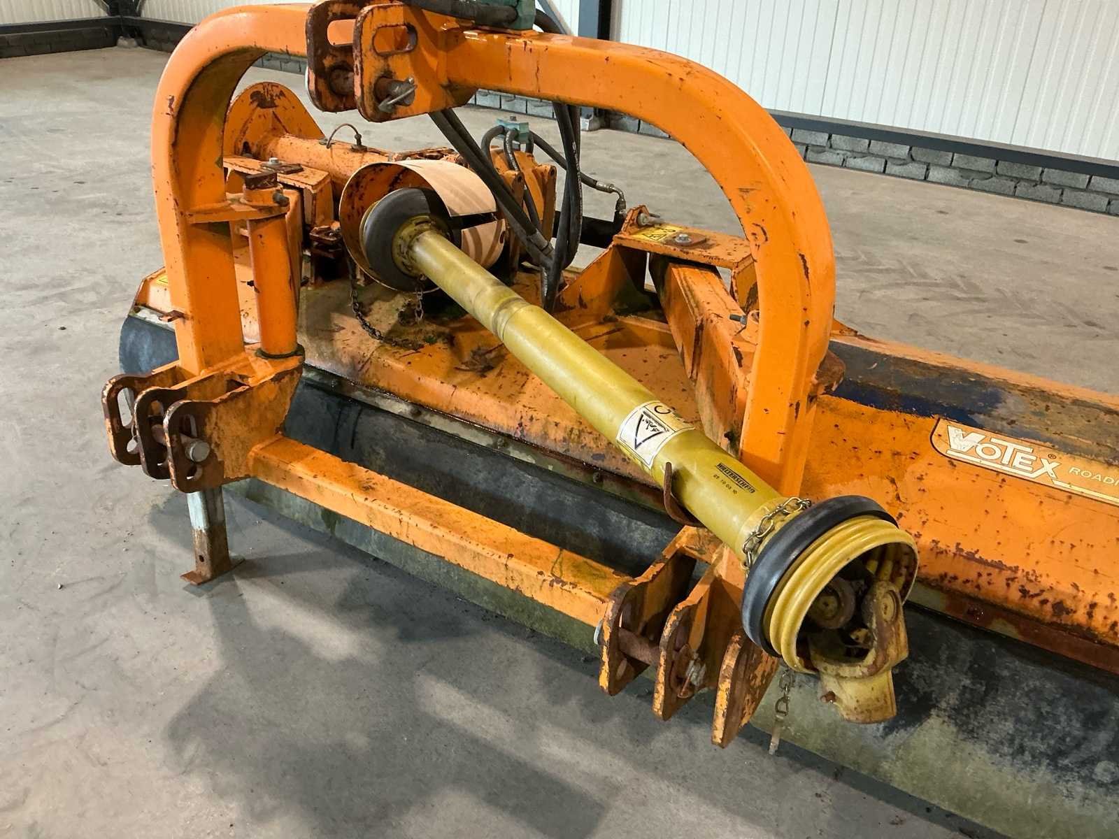 Voorzien van: 3 punts aansluiting, hydrauliekaansluitingen, aftakasaansluiting, aftakas, hydraulische hoekverstelling. !! LET OP: Poulie aan zijkant defect. Nee Merk: Votex Type: Roadmaster 2306 Totale afmeting L: 1200mm Totale afmeting Breedte: 2500mm Totale afmeting Hoogte: 1200mm