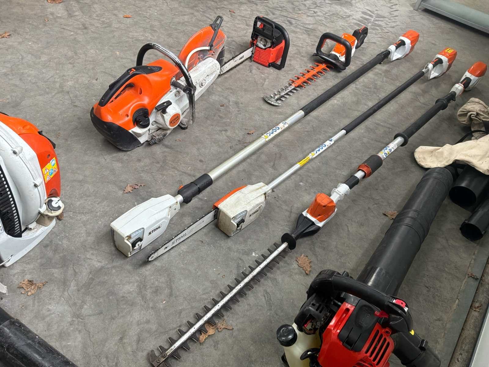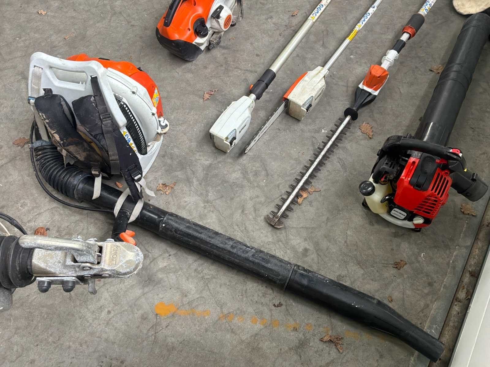 Bestaande uit 1x Stihl HLA telescoop heggenschaar, 1x Dolmar PS-340 kettingzaag, 1x Stihl HSA 94R heggenschaar, 1x Stihl HTA65 telescoop kettingzaag, 1x Stihl HTA 85 telescoop kettingzaag (zonder ketting en blad),1x Dolmar bladblazer / zuiger , 1x Stihl BR 600 bladblazer, 1x Stihl TS 410 doorslijper * let op zonder accu’s en laders No Leveringsvoorwaarden: Geladen op vrachtwagen
