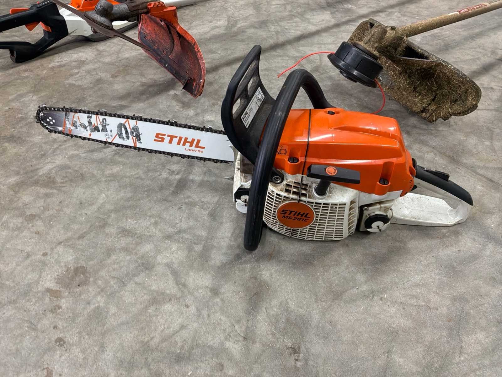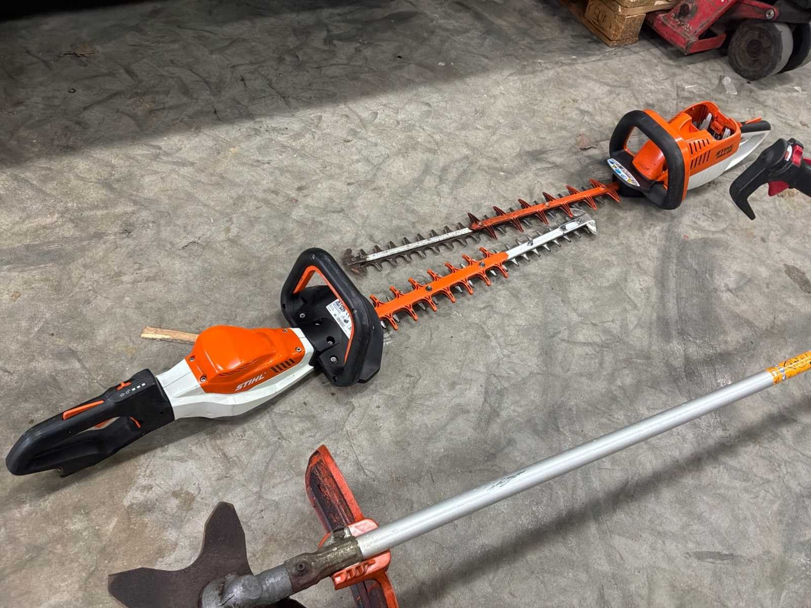 Bestaande uit 1x Stihl HSA 94T heggenschaar, 1x Stihl HSA 86 heggenschaar, 1x Husqvarna 143R-11 kantenmaaier, 1x Honda UMK435E kamtenmaaier, 1x Stihl MS 261C kettingzaag, 1x Hitachi bladblazer No Leveringsvoorwaarden: Geladen op vrachtwagen