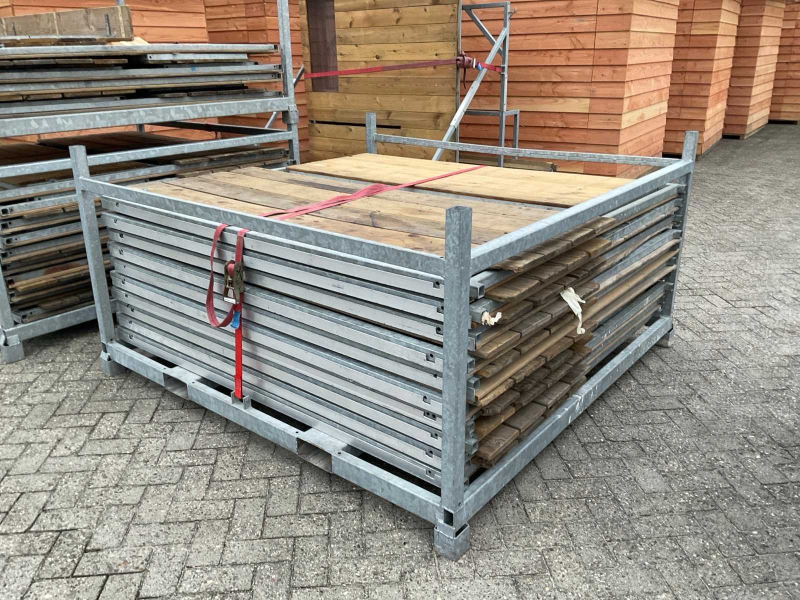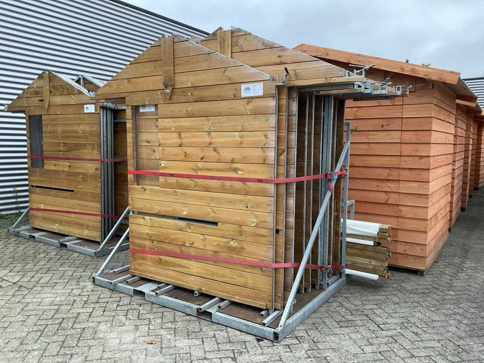 Afmeting per stuk 250x250x250cm. Op en inclusief 3x transportbok, 3x transportafmeting per bok lxbxh 232x200x250cm, 3x stapeljuk transportafmeting per juk lxbxh 200x200x110cm . Let op! Afbeelding 1 ter illustratie, kramen gedeeltelijk incompleet. Nee