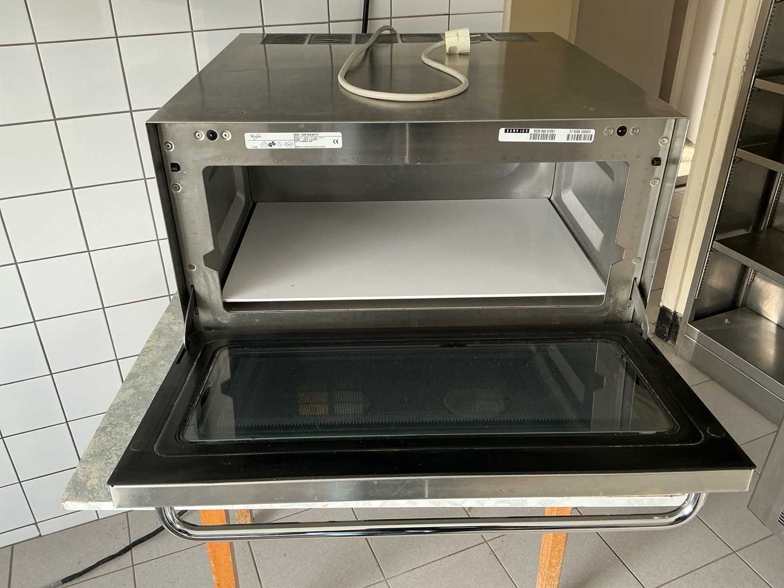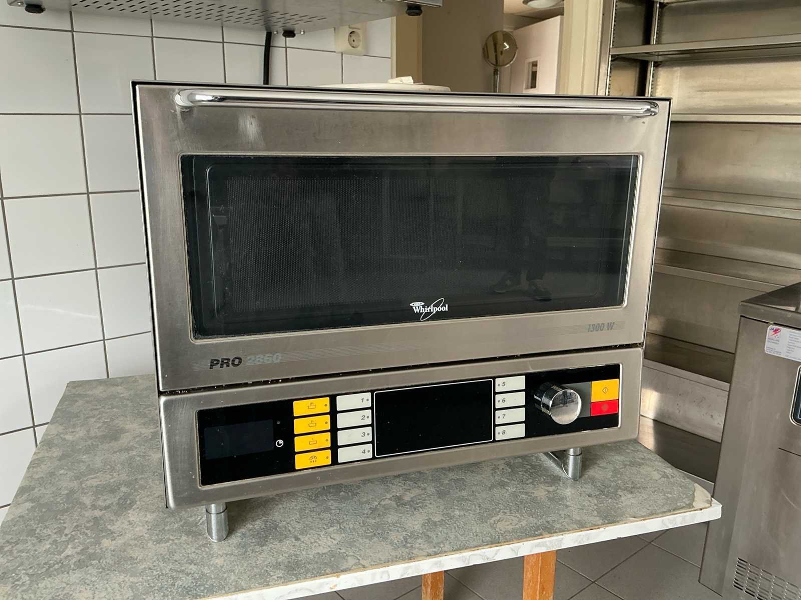 Bestaat uit: professionele magnetron Whirlpool, type Pro 2860, geschikt voor intensief gebruik in horeca, bedrijfskeukens en cateringomgevingen, RVS uitvoering met eenvoudige bediening en programmeerbare toetsen, model: Pro 2860, AVM 860/WP/ST, aansluitspanning: 230V, aansluitvermogen: 2,7 kW, magnetronvermogen: 1800 Watt, beschermingsklasse: IP21, certificering: CE, RVS behuizing, digitale bediening met programmeertoetsen, draaiknopbediening, vrijstaand model op stelpoten, Inhoud ovenruimte: ± 28 liter, werking getest en functionerend bevonden, breedte: ca. 510 mm, diepte: ca. 470 mm, hoogte: ca. 335 mm, gewicht: ca. 30–35 kg. Nee Merk: Whirpool Type: Pro 2860 Totale afmeting L: 620cm Totale afmeting Breedte: 600cm Totale afmeting Hoogte: 520cm Materiaal: RvS Eigen gewicht: 30kg Vermogen: 2700W Rvs: true Aansluiting: 220V Digitale besturing: true