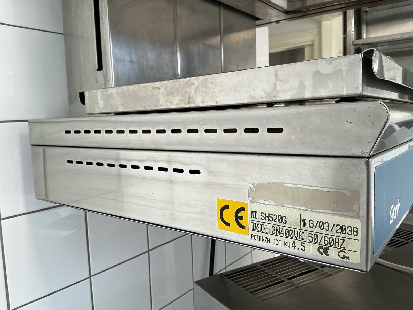 Merk: Merk: Giorik, model: SHS20G, serienummer: G/03/2038, aansluiting: 3N AC 400V, totaal vermogen: 4,5 kW, CE-gecertificeerd, elektrische salamander (bovenwarmte), in hoogte verstelbaar grillrooster, digitale timer met display, handmatige temperatuurregeling, start/stop bediening, RVS behuizing, geschikt voor wandmontage of plaatsing op werkblad, gewicht: ca. 40–60 kg, toepassing -gratineren, afwerken van gerechten, smelten van kaas, warmhouden, grillen van vlees / vis. Nee Merk: Giorik Model: SH520G Gewicht: 50kg Lengte: 520cm Breedte: 570cm Hoogte: 500cm Materiaal: RvS