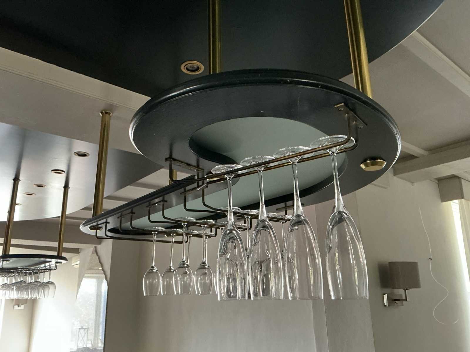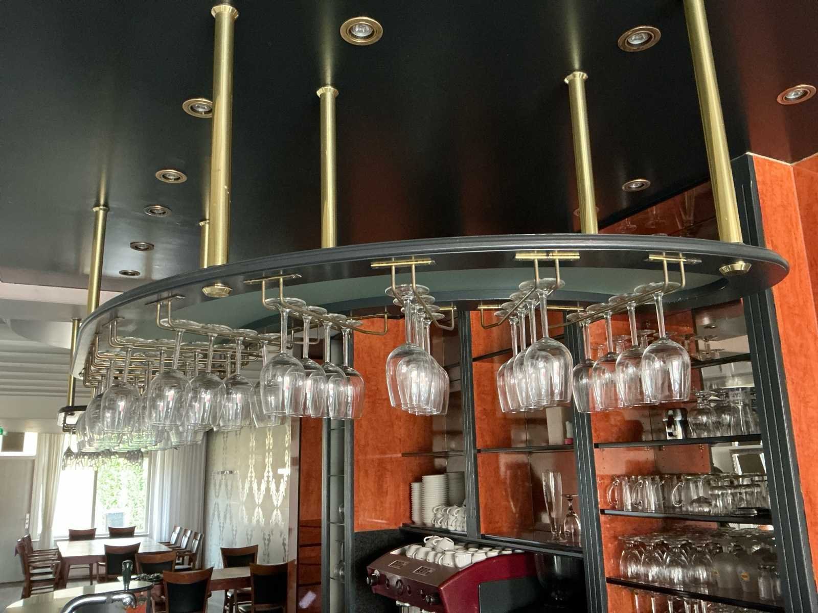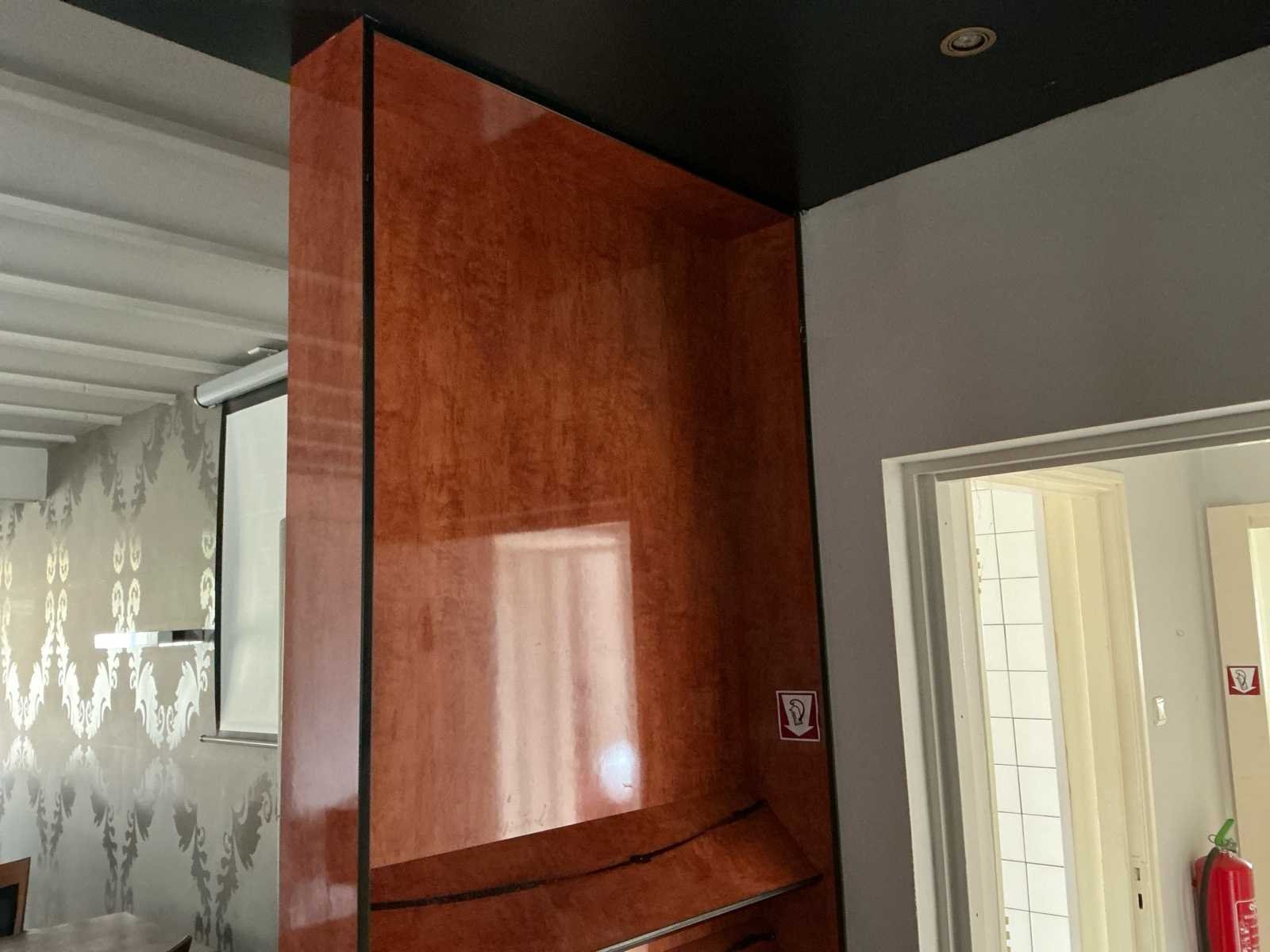 Bestaat uit: complete horecabar met achterwand, koelingen, fustkoeler en spoelunit, representatieve baropstelling geschikt voor gebruik in horeca, café, restaurant of evenementlocatie, bar is uitgevoerd met een gebogen frontpaneel, donker werkblad (steen/composiet uitstraling) en een luxe achterwand met glazen legplanken en geïntegreerde glasophangsystemen, de afwerking bestaat uit houtfineer panelen met zwarte omlijsting en messingkleurige accenten, samenstelling kavel: gebogen barmeubel met werkblad. achterwand met glazen schappen en opberglades,plafondgemonteerde glasophangrekken, dubbele RVS spoelbak met mengkraan, ingebouwde biertap met lekblad, fustkoeler, 2x Gamko barkoelingen (Type HFK20/2, bouwjaar 2004, 220-240V),1x Zanussi onderbouwkoelkast, diverse opberglades en kastruimte (Glaswerk en overige losse inventaris uitsluitend inbegrepen indien aanwezig bij oplevering.), totaal lengte bar 4700mm, 2200mm, 1100mm hoog, Nee Totale afmeting L: 4700mm Totale afmeting Breedte: 2200mm Totale afmeting Hoogte: 1100mm