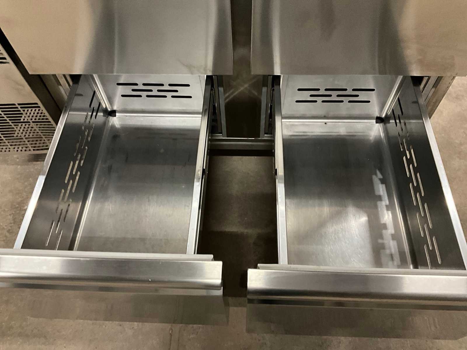 Ieder voorzien van 4 laden; RVS Nee Merk: Electrolux Professional Totale afmeting L: 70cm Totale afmeting Breedte: 124cm Totale afmeting Hoogte: 90cm Materiaal: RVS Digitale uitlezing: true Temperatuurbereik min.: -2°c Rvs: true Aansluiting: 230V Aantal laden: 4pcs Lengte: 70cm Breedte: 124cm Hoogte: 90cm