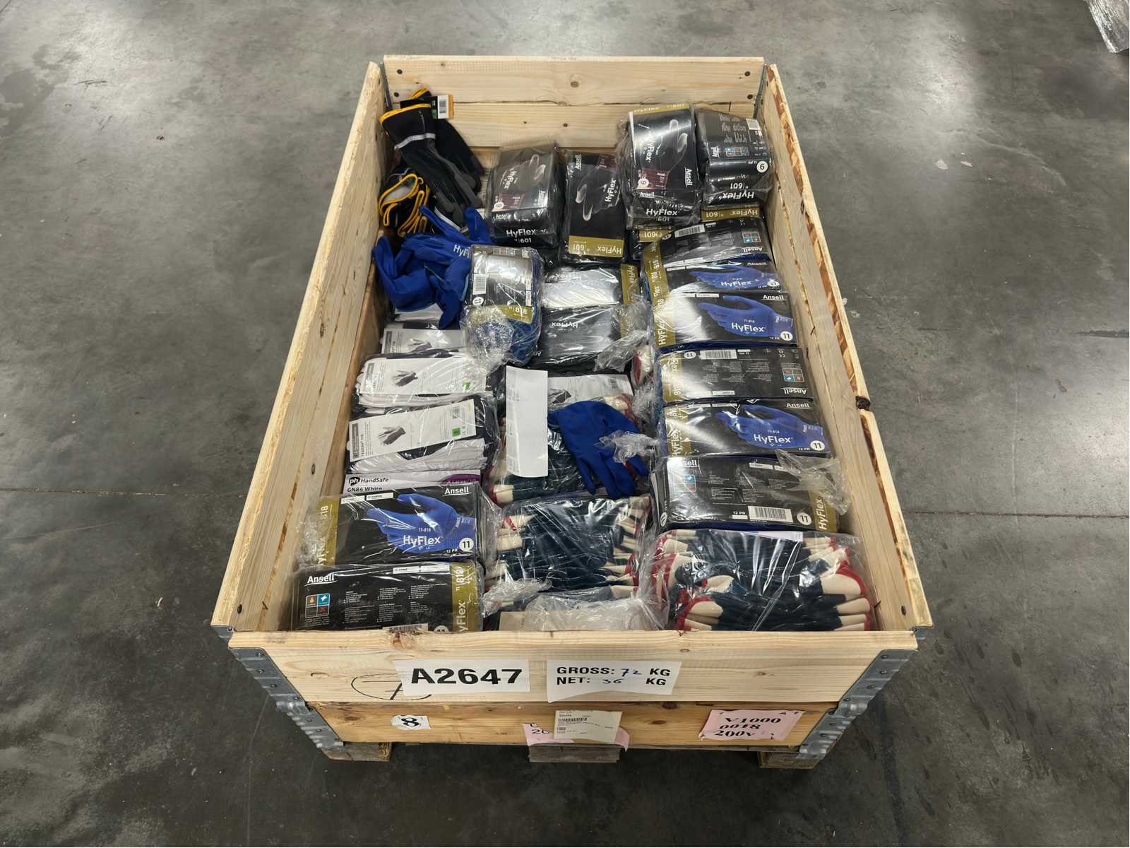 <li>Partij ongebruikte werkhandschoenen</li> <li>Staat: ongebruikt</li> <li>Gewicht: 36KG net </li> <li>Opsomming hieronder bevat slechts voorbeelden van items die in deze partij aanwezig zijn.</li> <li>Ansell HyFlex 11-818 - 8x </li> <li>Ansell HyFlex 11-601 (maat 9) - 6x</li> <li>Tegera 119 leren handschoenen - 6x</li> No