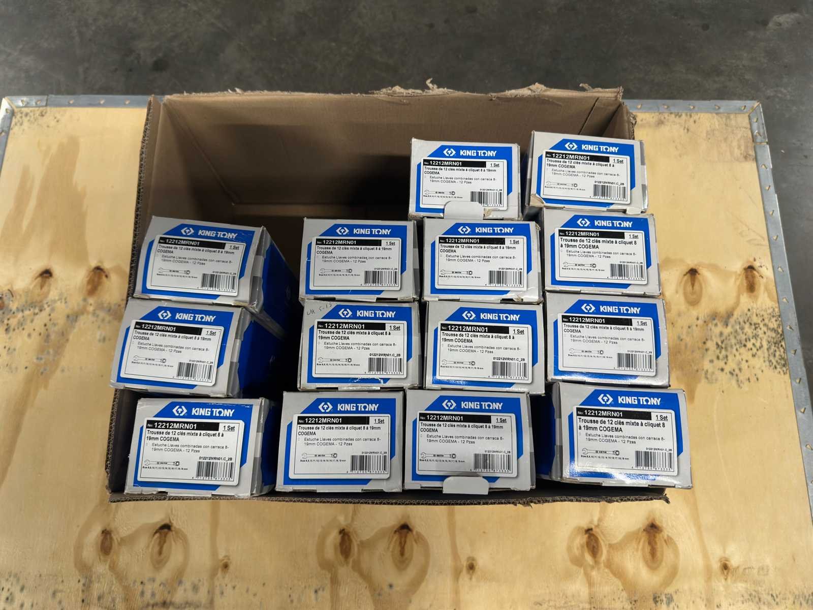 <li>Partij 14x ongebruikte KING TONY ratel-steeksleutelset</li> <li>Staat: ongebruikt</li> <li>Gewicht: 22KG net </li> No Merk: KING-TONY Type: ratel-steeksleutelset