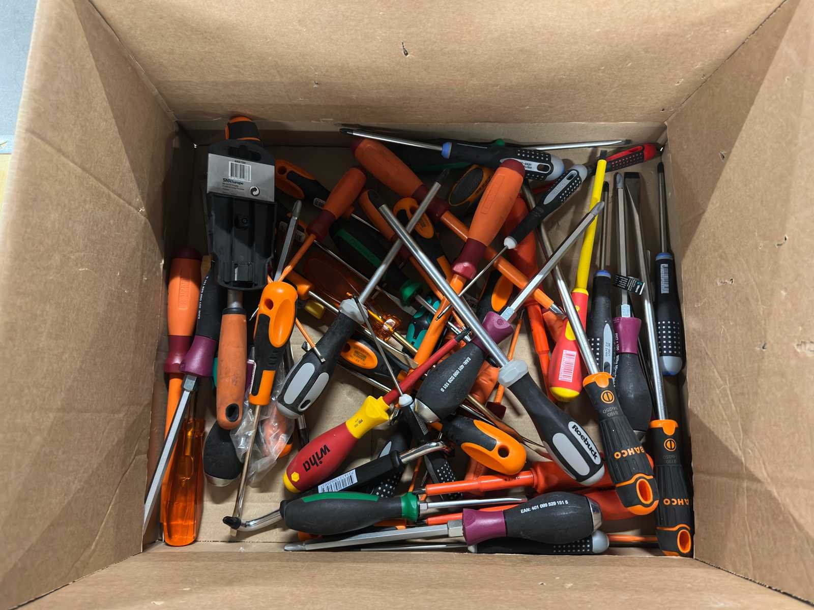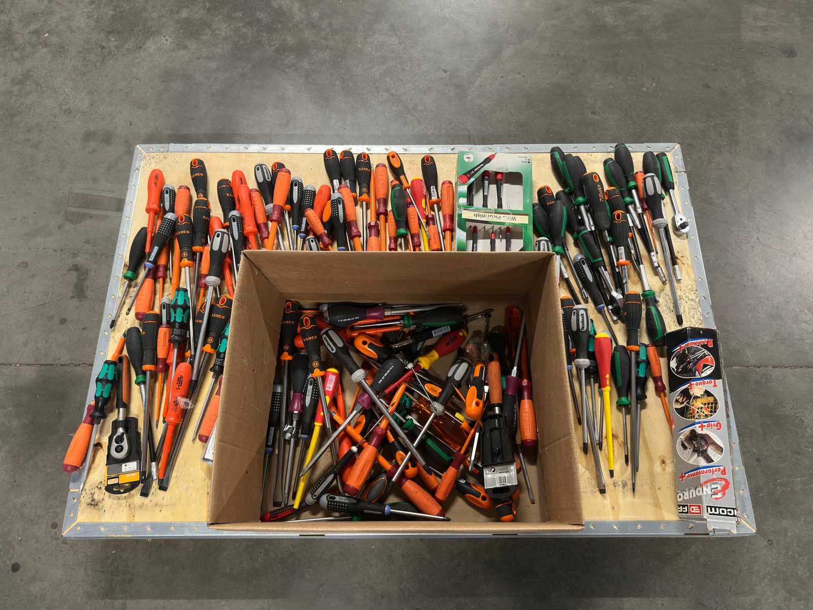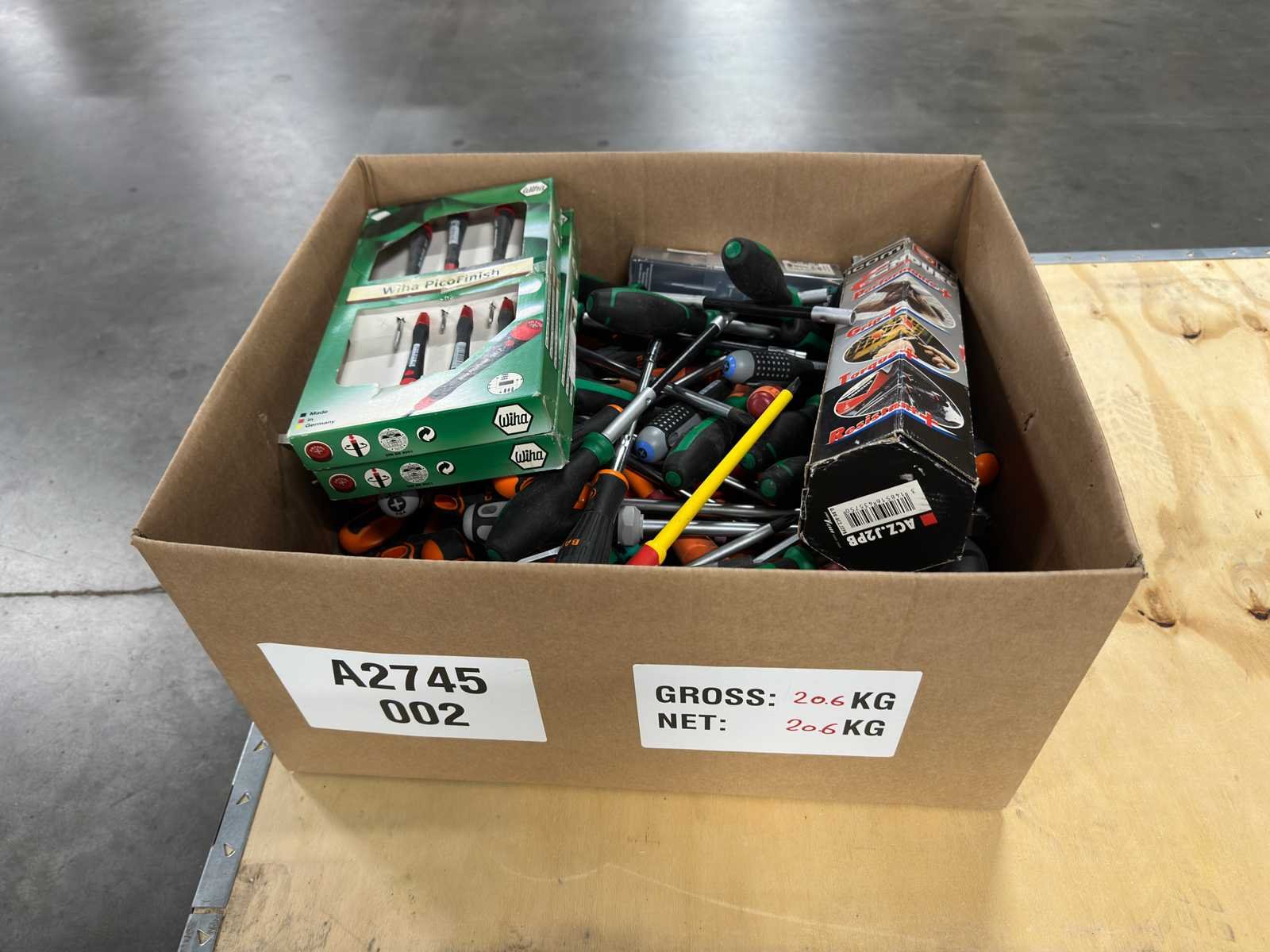 <li>Partij ongebruikte schroevendraaiers 120+ stuks (Wera, Wiha, Beta en meer)</li> <li>Staat: ongebruikt</li> <li>Gewicht: 20KG net </li> No Merk: Wera, Wiha, Beta en meer