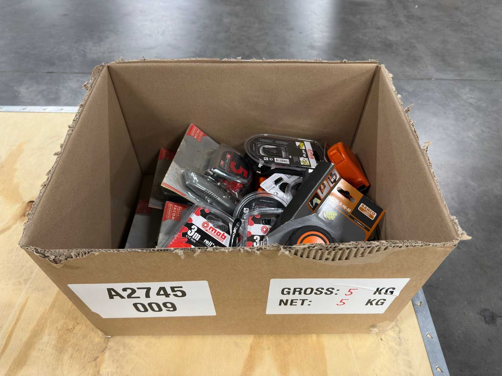 <li>Partij ongebruikte meetgereedschap: rolbandmaten & meetlint/cutter sets</li> <li>Staat: ongebruikt</li> <li>Gewicht: 5KG net </li> No