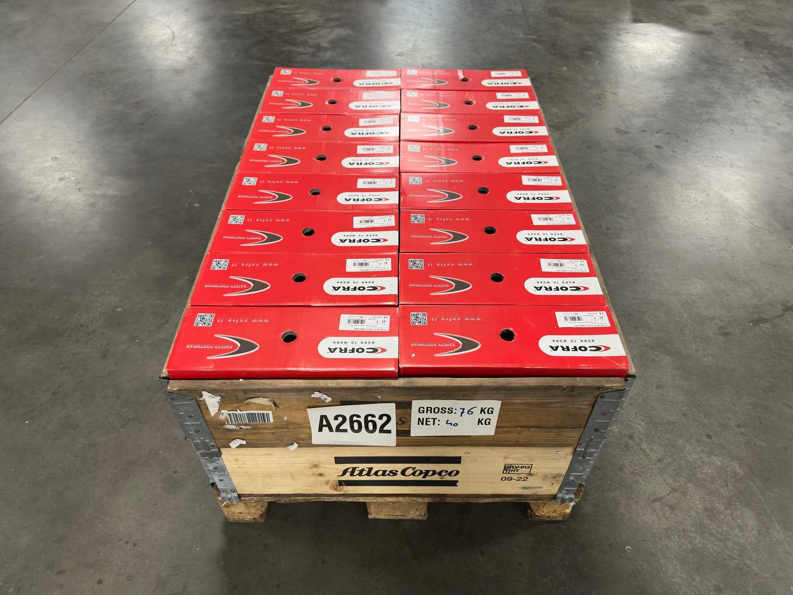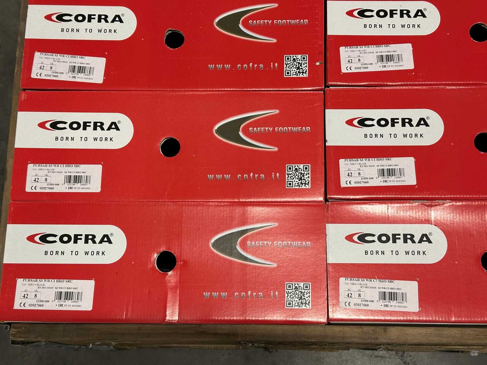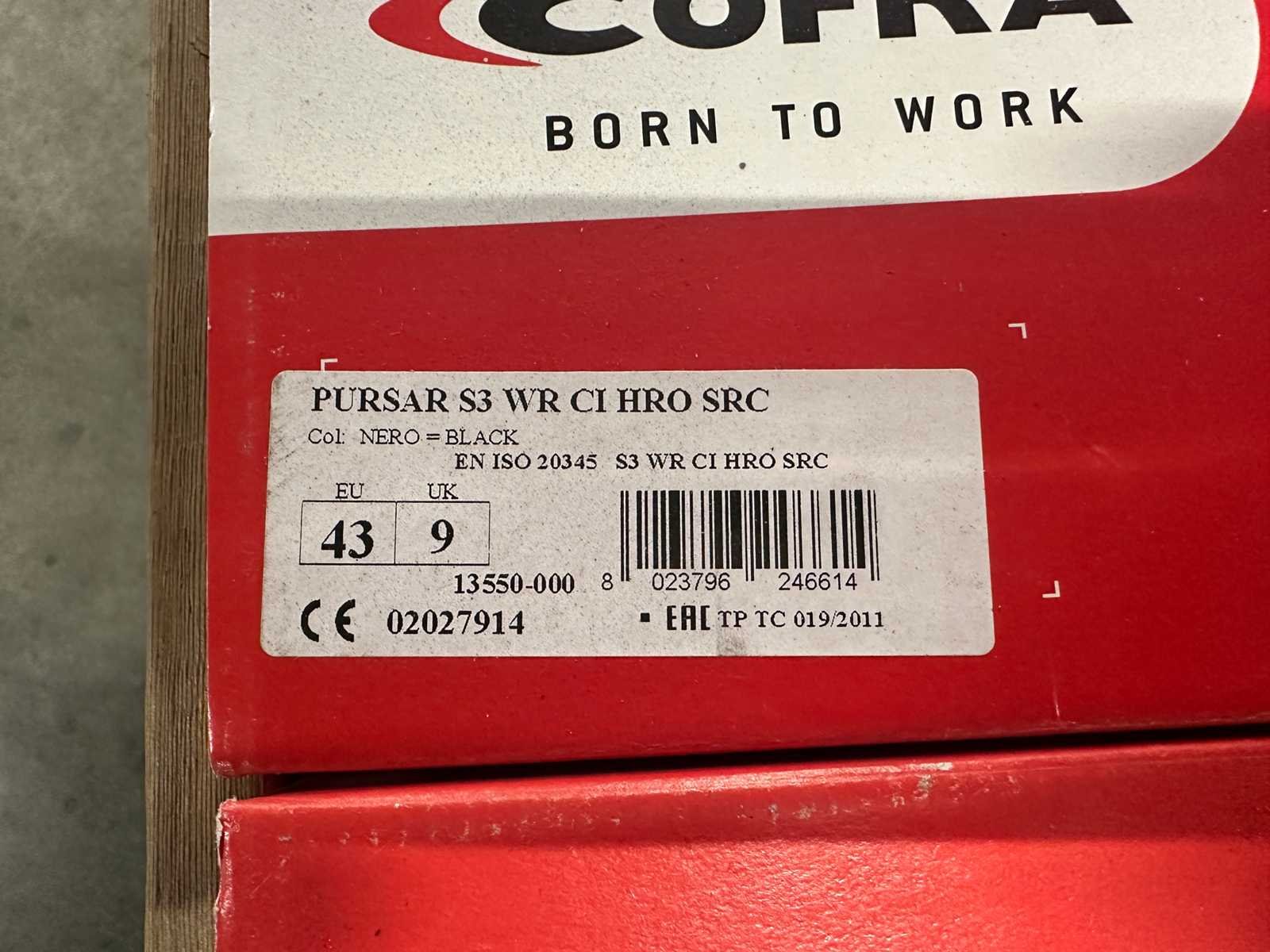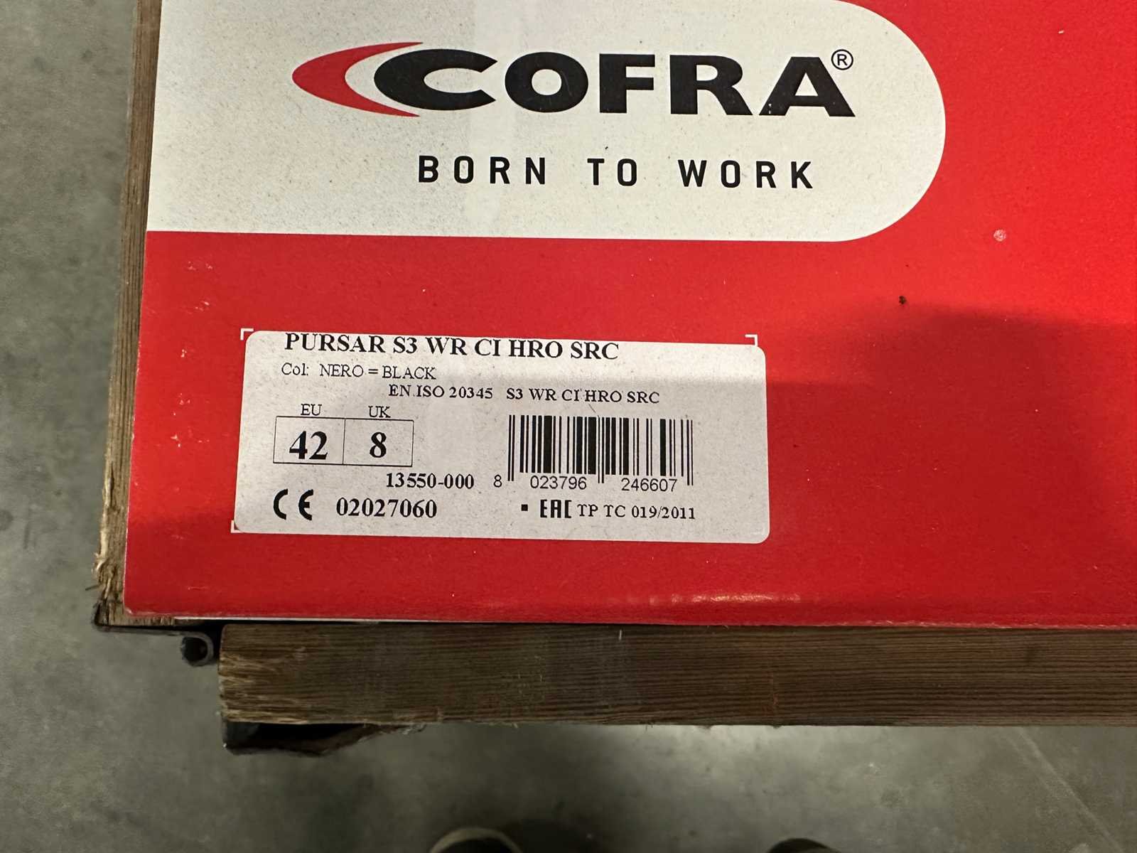 <li>Partij ongebruikte werkschoenen/laarzen</li> <li>Staat: ongebruikt</li> <li>Gewicht: 40KG net </li> <li>Opsomming hieronder bevat slechts voorbeelden van items die in deze partij aanwezig zijn.</li> <li>Cofra PURSAR S3 maat 42 - 8x</li> <li>Cofra PURSAR S3 maat 43 - 8x</li> No Merk: Cofra