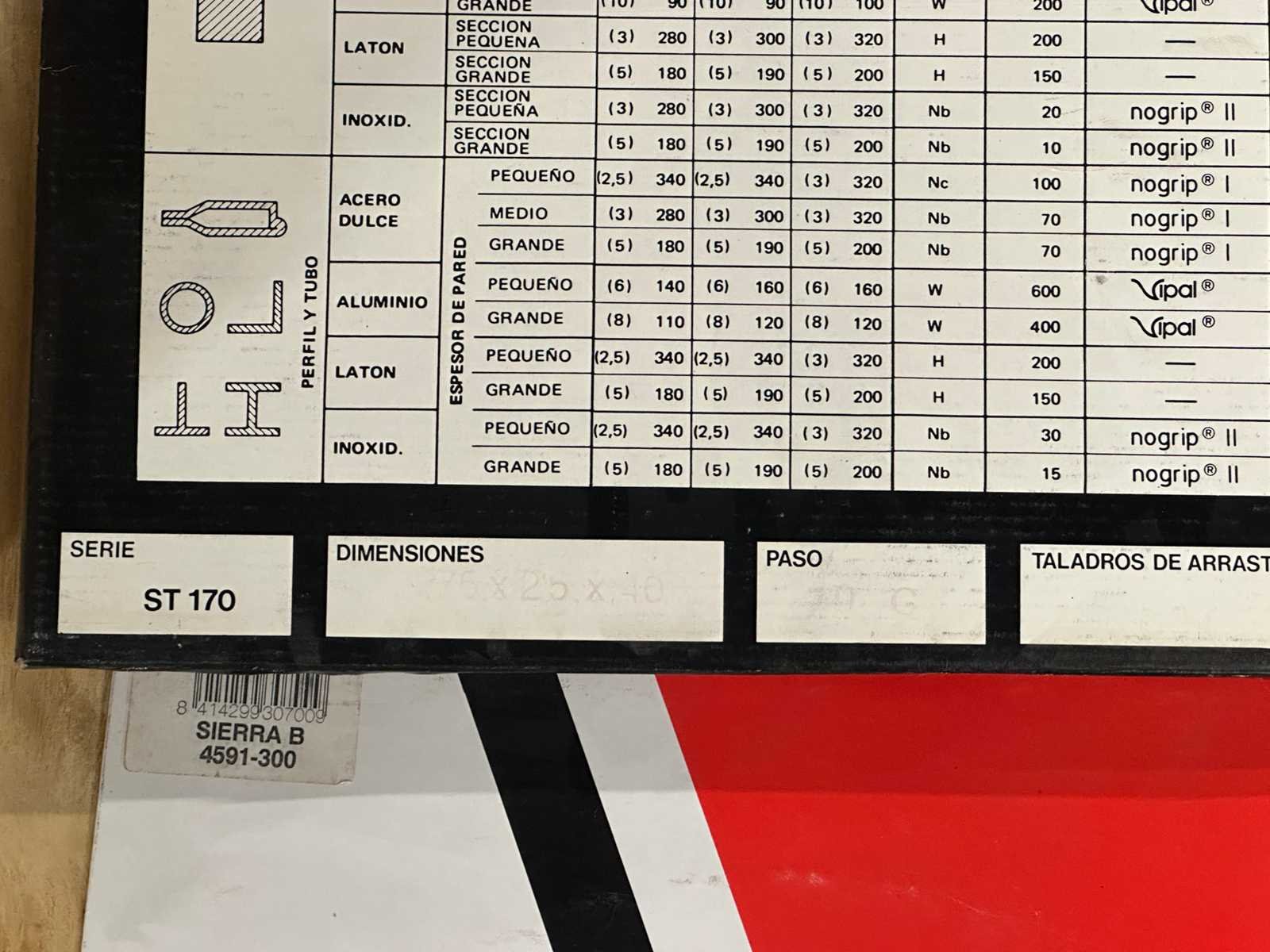 <li>Partij ongebruikte zaagbladen (10+)</li> <li>Staat: ongebruikt</li> <li>Gewicht: 22,6KG net </li> No Merk: Bellota / Tyrolit