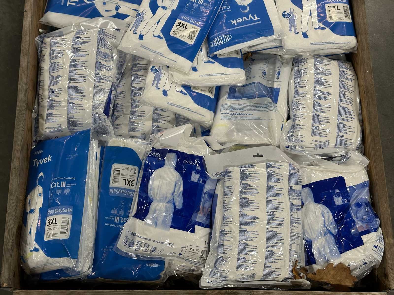 <li>Partij ongebruikte wegwerp overalls</li> <li>Staat: ongebruikt</li> <li>Gewicht: 21KG net </li> <li>Opsomming hieronder bevat slechts voorbeelden van items die in deze partij aanwezig zijn.</li> <li>Tyvek 400 Dual – maat 3XL</li> <li>Tyvek 200 EasySafe – maat 3XL</li> No