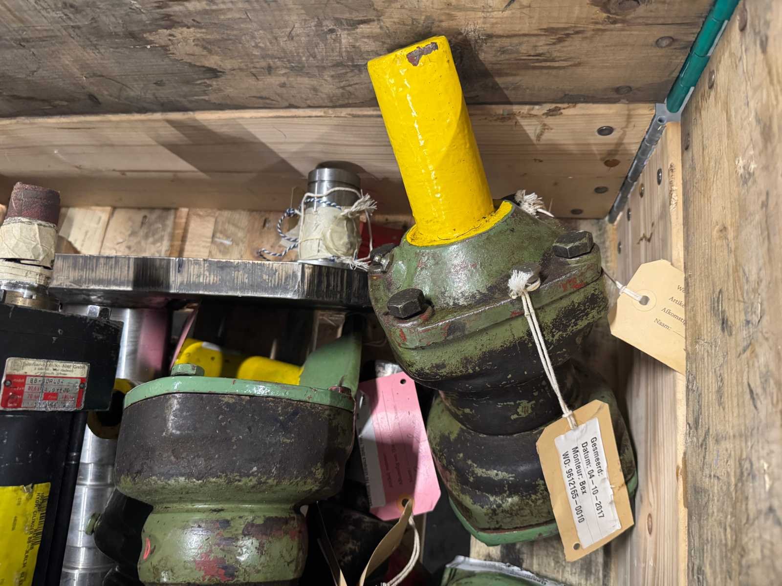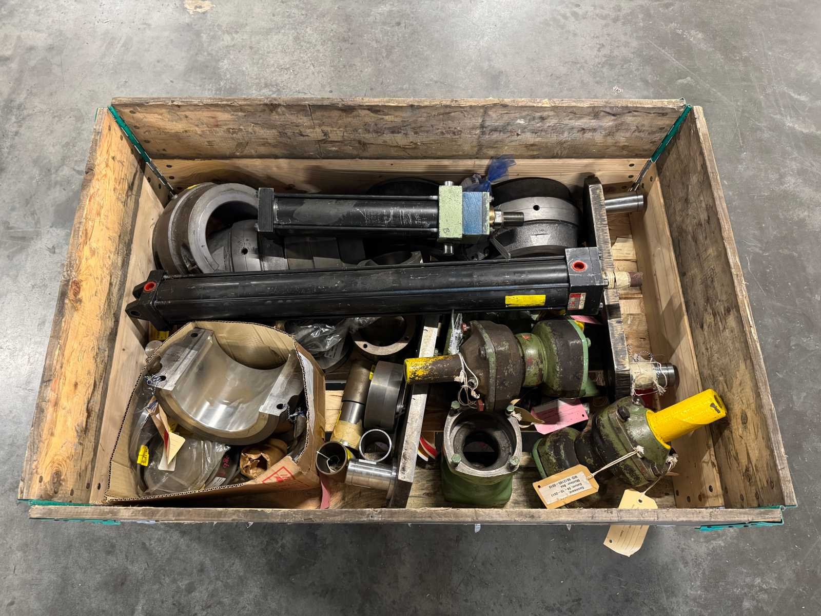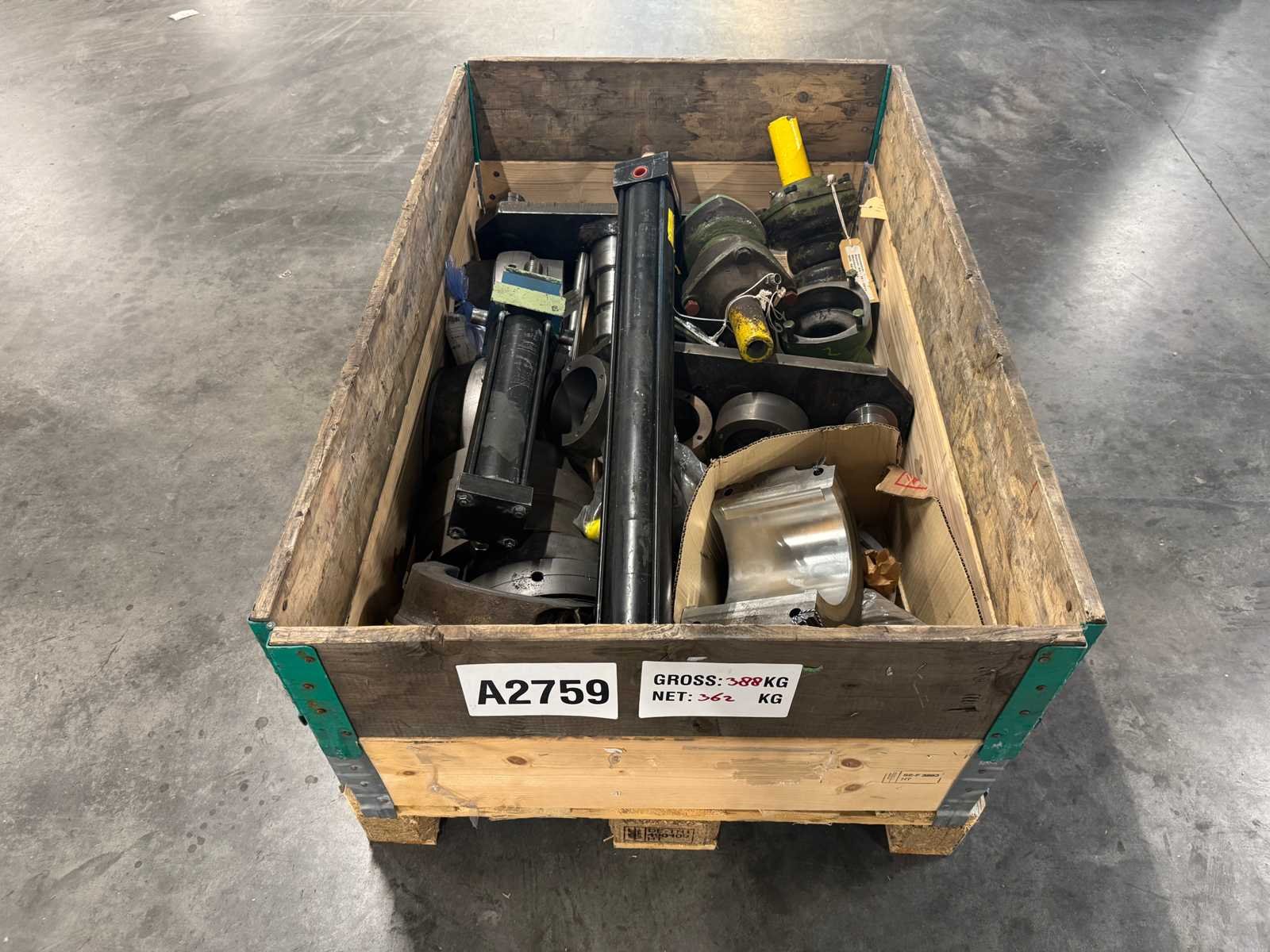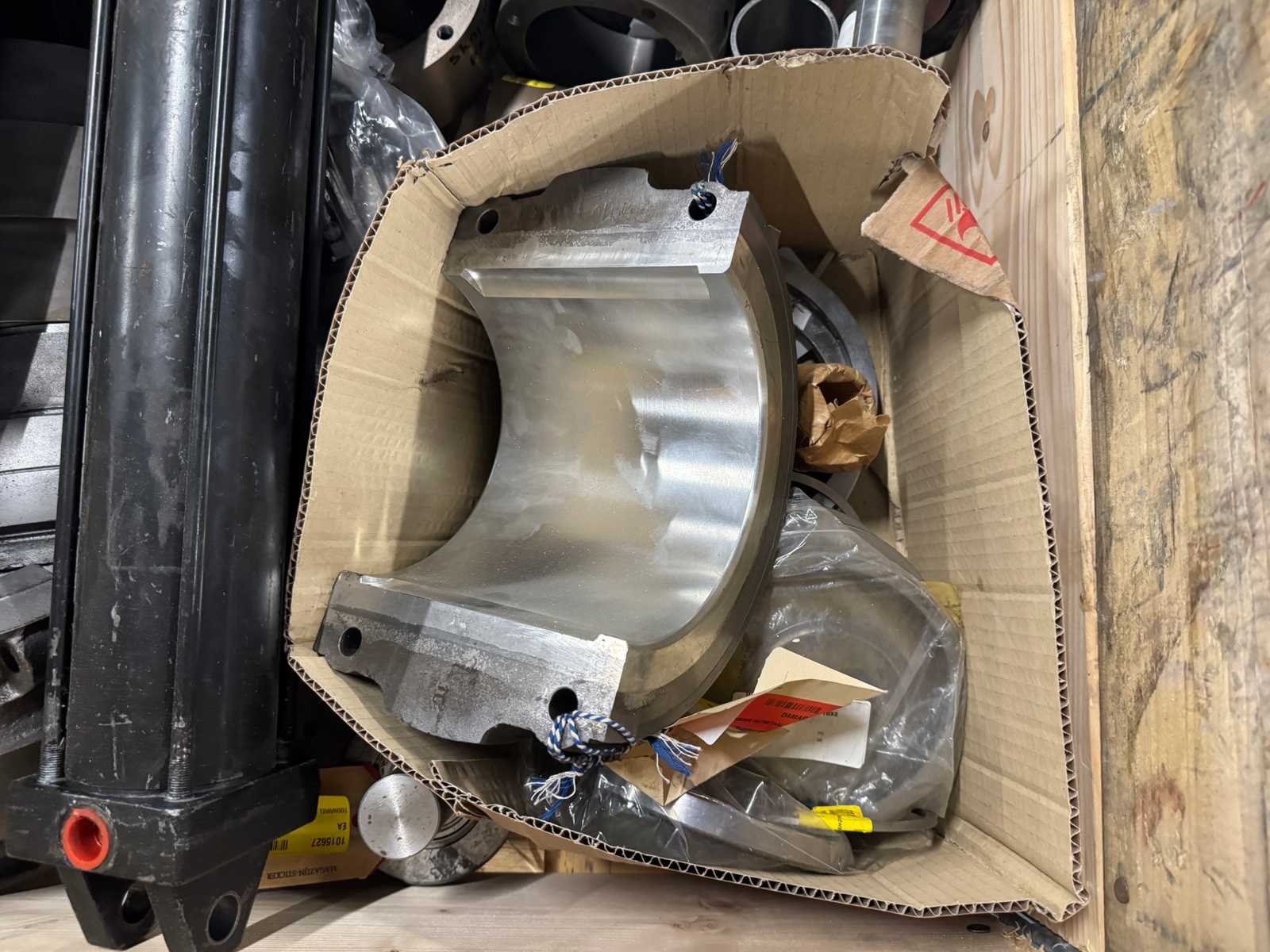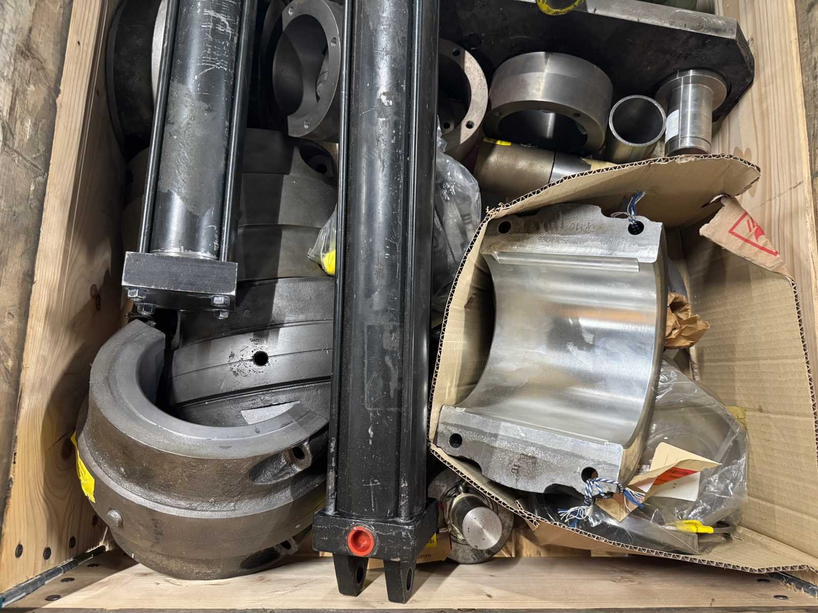 <li>Partij zware machine-onderdelen o.a. hydraulische cilinders/actuators, flenzen en bussen</li> <li> Gewicht: 362KG net </li> No Type: Partij zware machine-onderdelen (362KG)