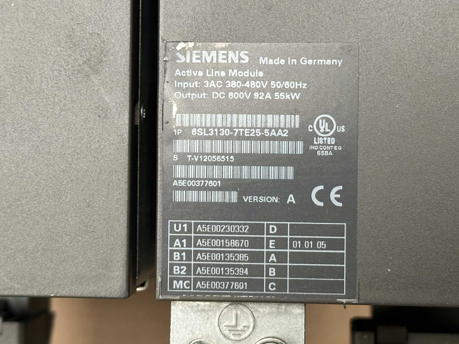 <li>Siemens SINAMICS Active Line Modules 55kW (7x)</li> No Merk: Siemens Model: 6SL3130-7TE25-5AA2
