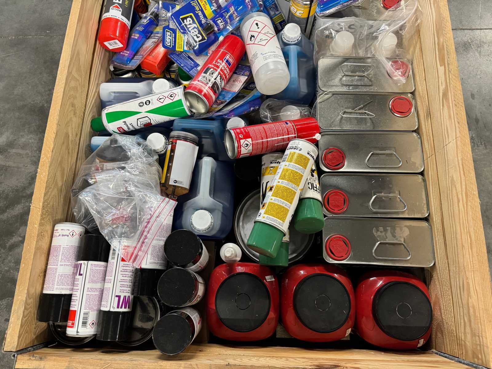 <li>Partij smeermiddelen & werkplaatschemicaliën - lijm/kit, sprays, smeermiddelen & reinigers</li> <li> Staat: ongebruikt</li> <li> Gewicht: 150KG net </li> No