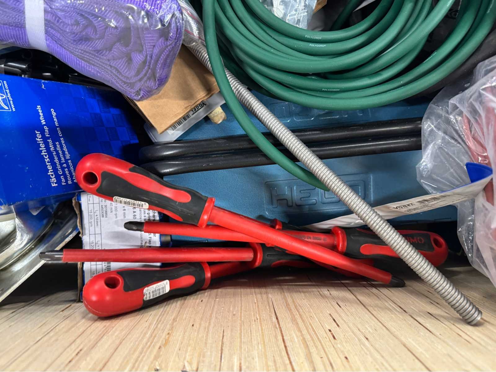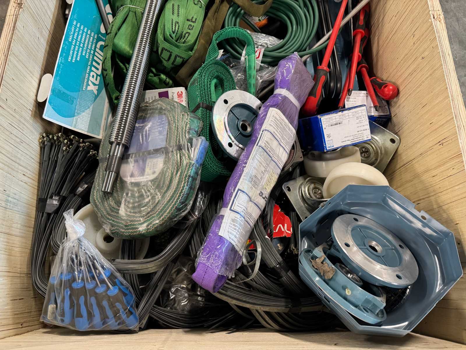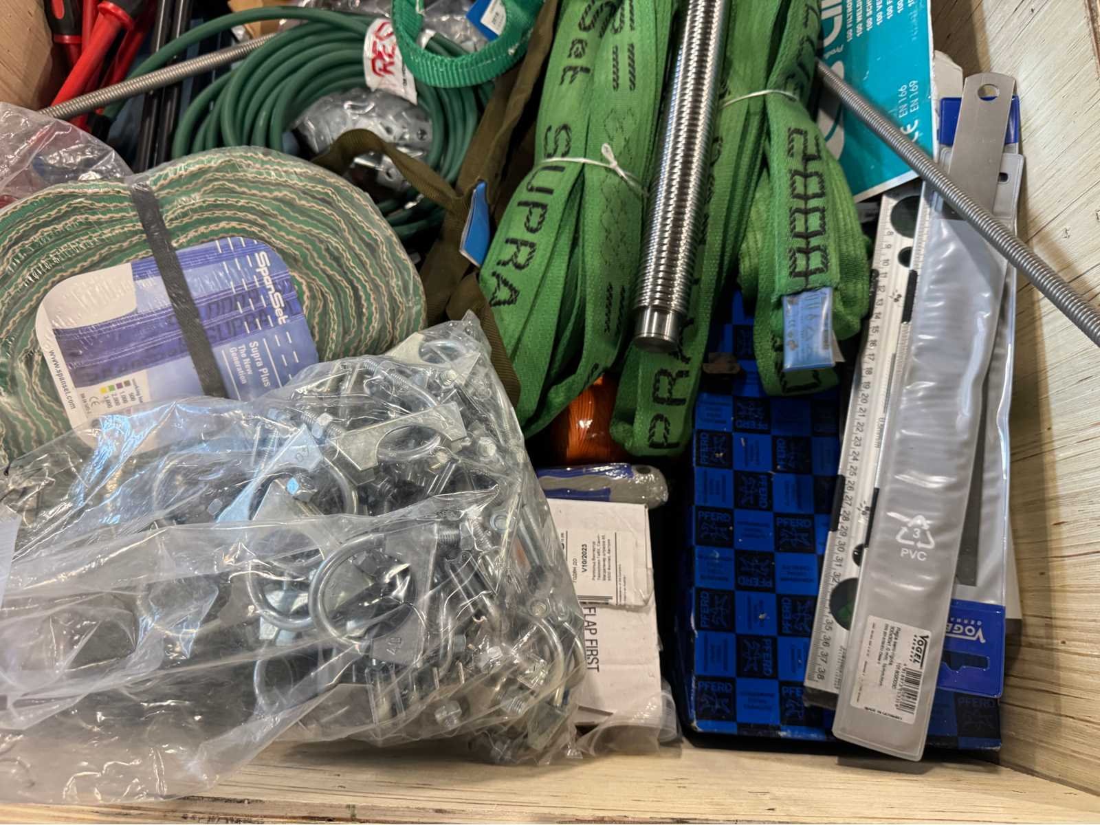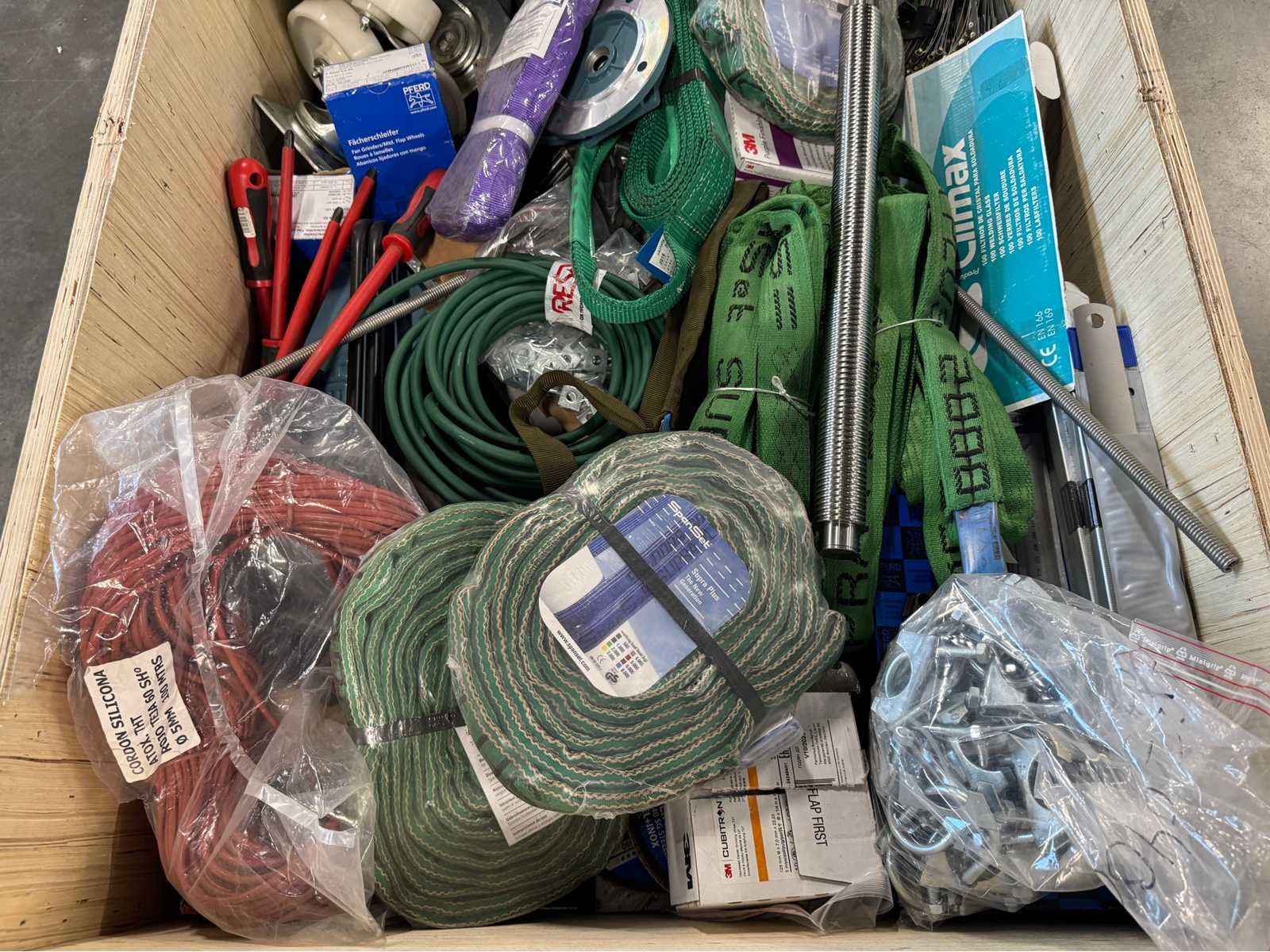 <li>Partij gemengde hijs-/spanmiddelen & werkplaatsmateriaal</li> <li> Gewicht: 149KG net </li> No