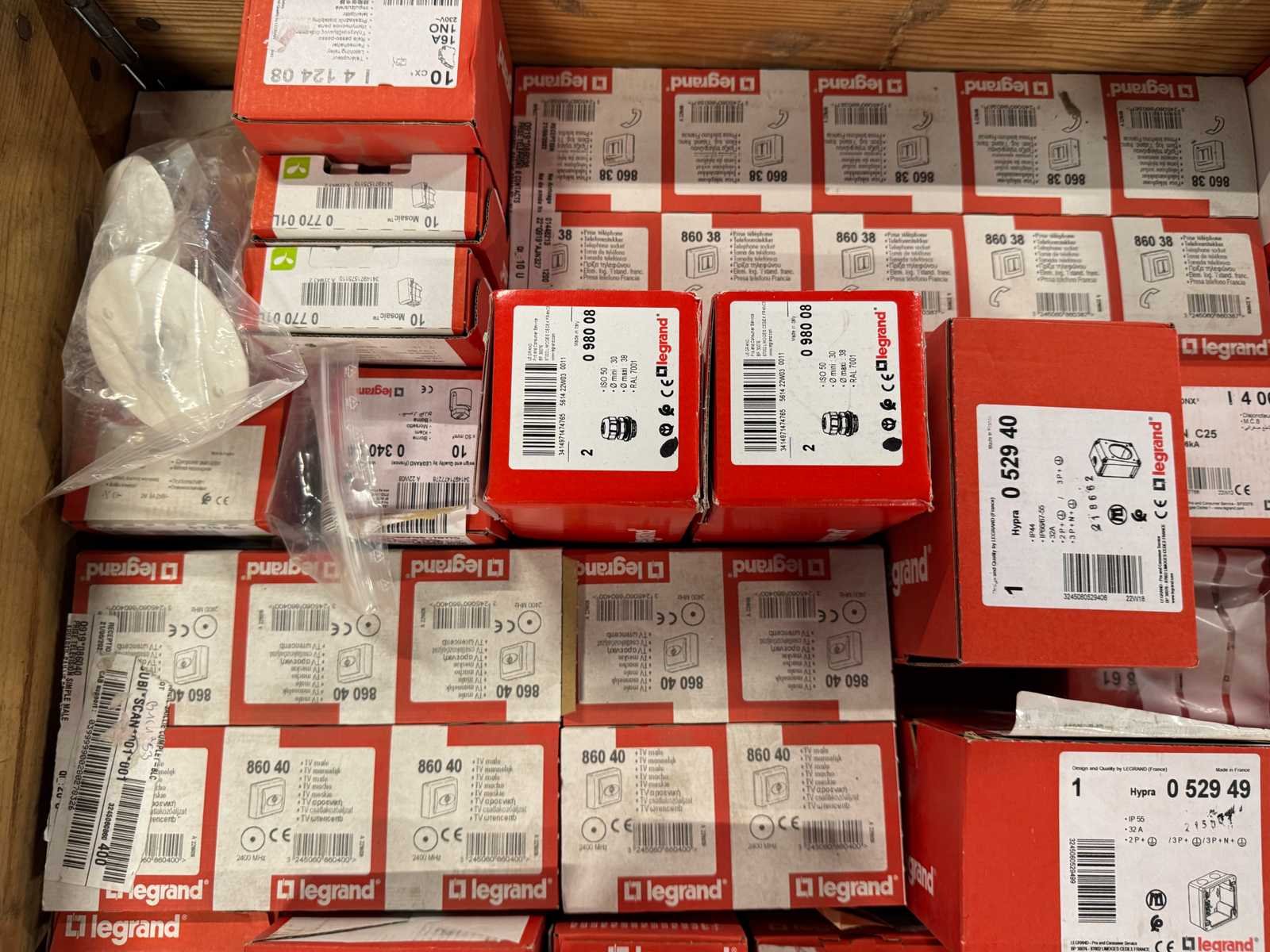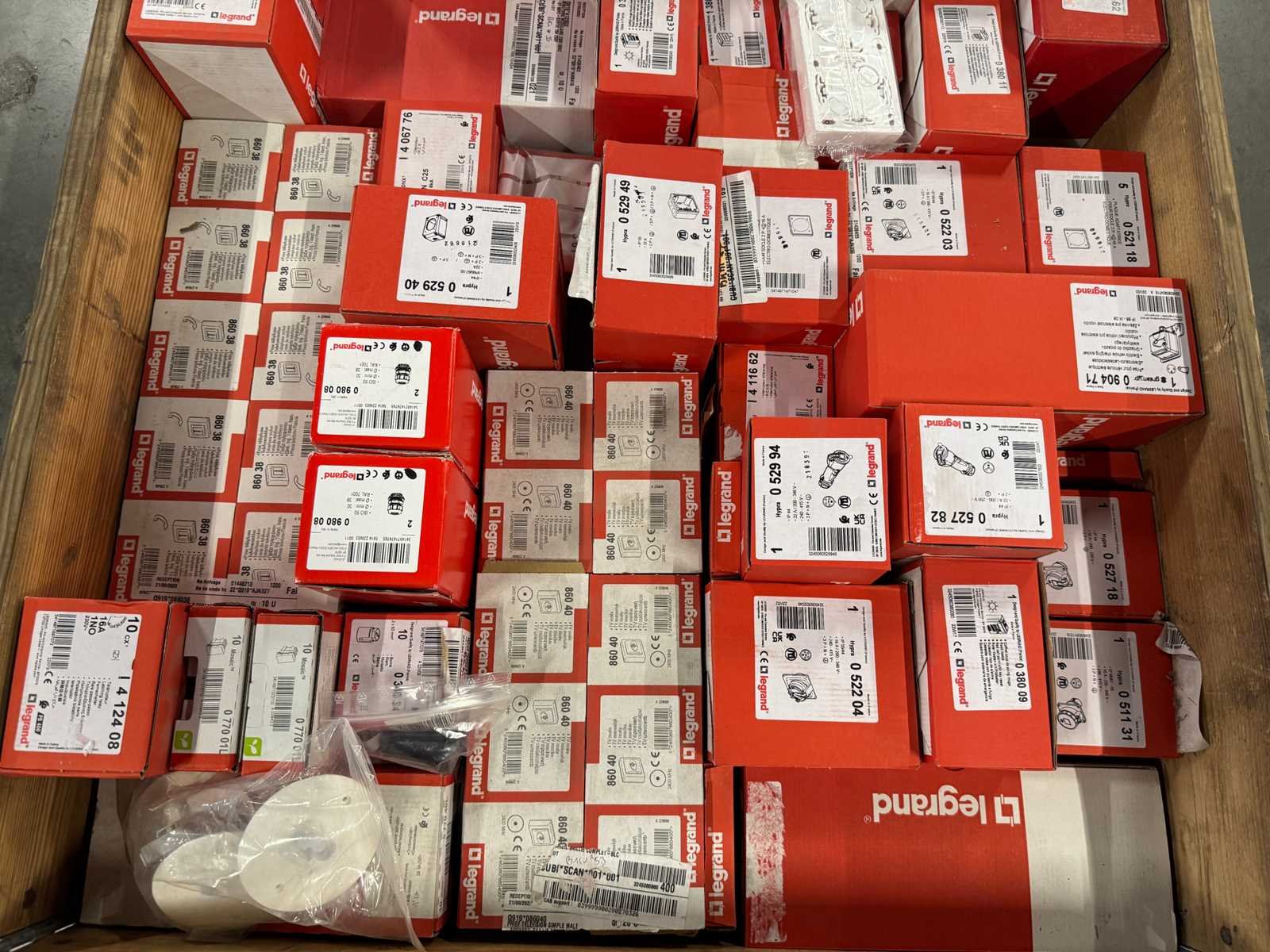 <li>Partij Legrand elektra installatiemateriaal </li> <li>Gewicht: 29KG net </li> <li>Opsomming hieronder bevat slechts voorbeelden van items die in deze partij aanwezig zijn.</li> <li>0 529 94 – 1x</li> <li>0 529 40 – 1x</li> <li>0 522 03 – 1x</li> <li>0 522 04 – 1x</li> <li>0 527 18 – 1x</li> <li>0 527 42 – 1x</li> <li>0 527 82 – min. 2x</li> <li>0 528 74 – 1x</li> <li>0 529 94 – 1x</li> <li>0 090 471 – 1x</li> <li>0 380 09 – 1x</li> <li>0 380 11 – 1x</li> <li>0 380 24 – 1x</li> <li>0 313 62 – 1x</li> <li>0 765 65 – 1x</li> <li>0 629 40 – 1x</li> <li>4 067 76 – 1x</li> <li>4 067 86 – 1x</li> <li>4 124 08 – 1x</li> <li>4 124 12 – 1x</li> <li>4 125 01 – 1x</li> No Merk: Legrand