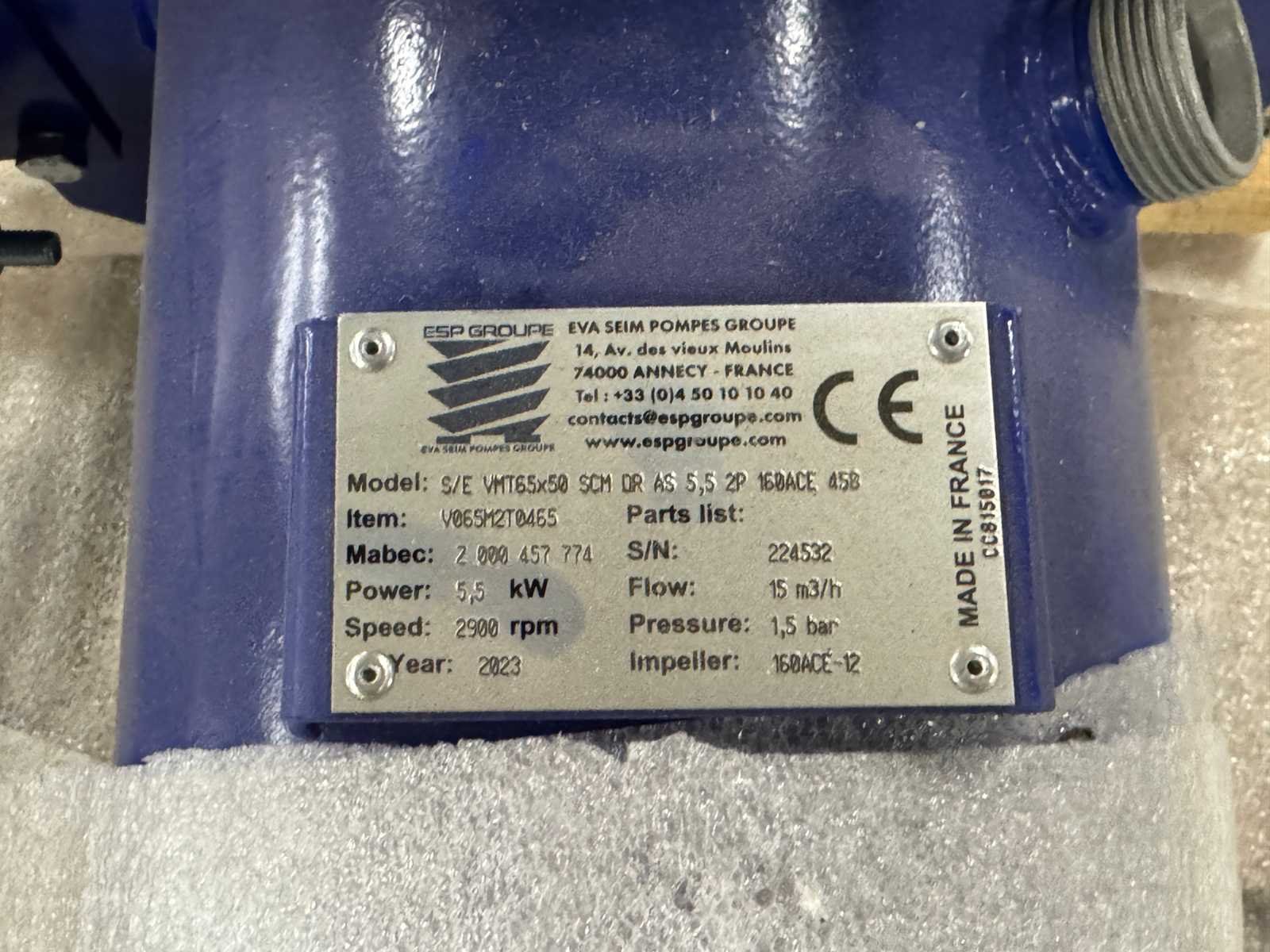 <li>1x EVA SEIM industriële centrifugaalpomp - type VMT65x50</li> <li> Gewicht: 36KG net </li> No Merk: EVA SEIM Type: VMT65x50